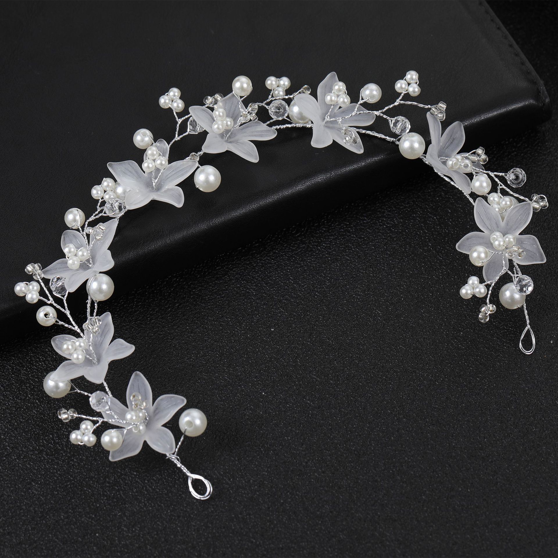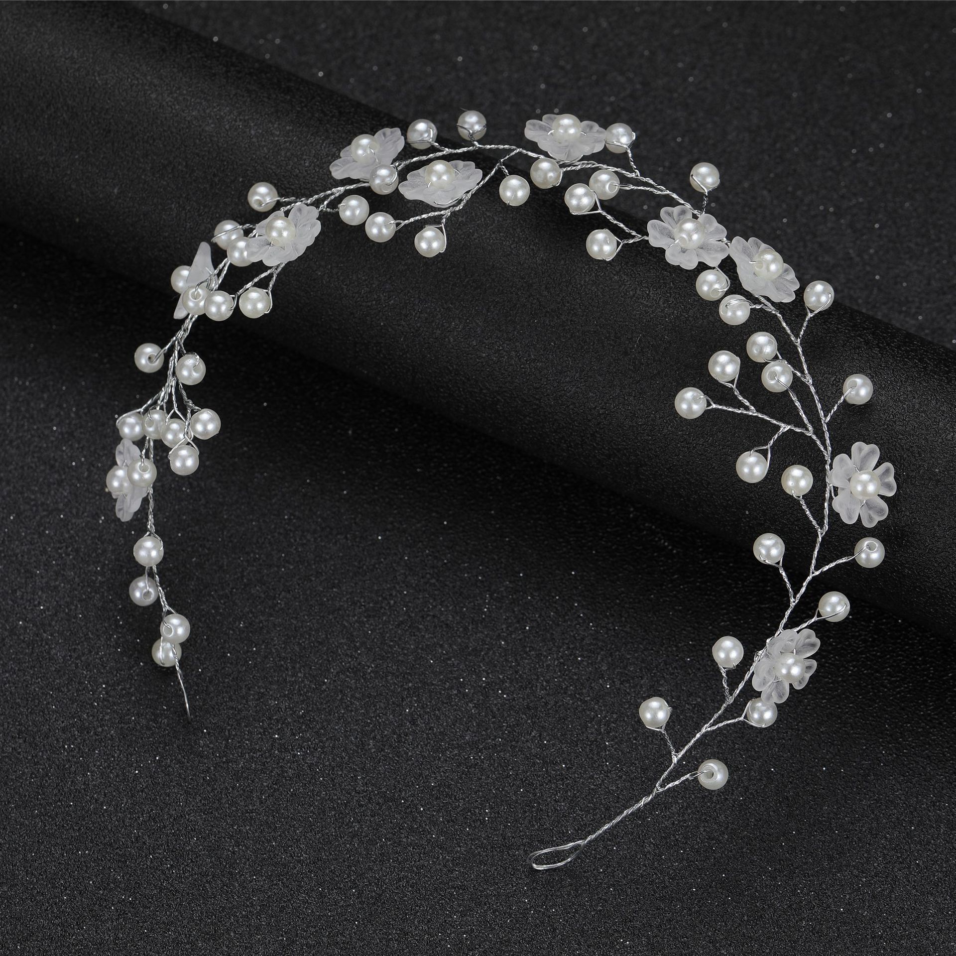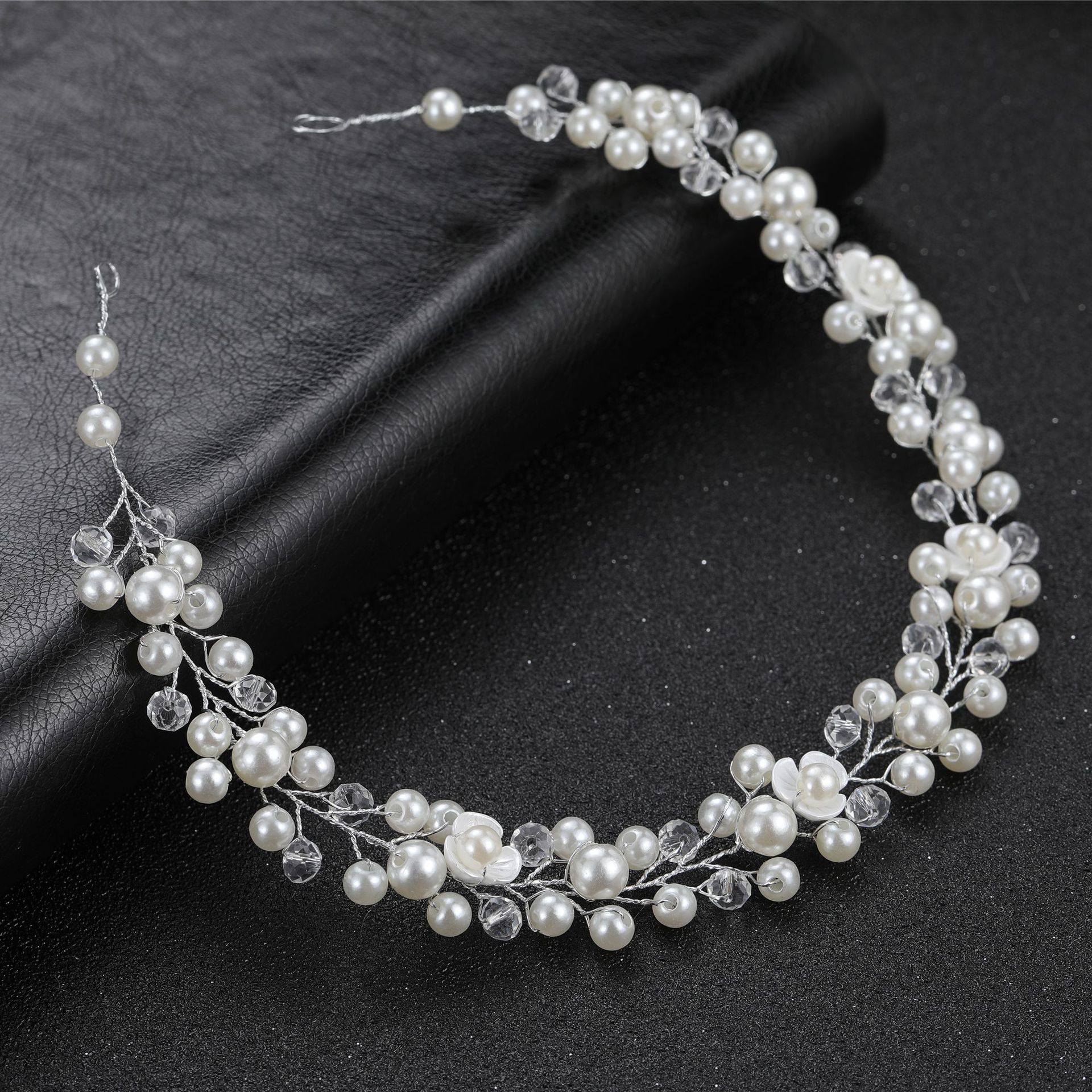 欧美跨境 透明塑料花珍珠手工软链发带发链 新娘婚礼头饰