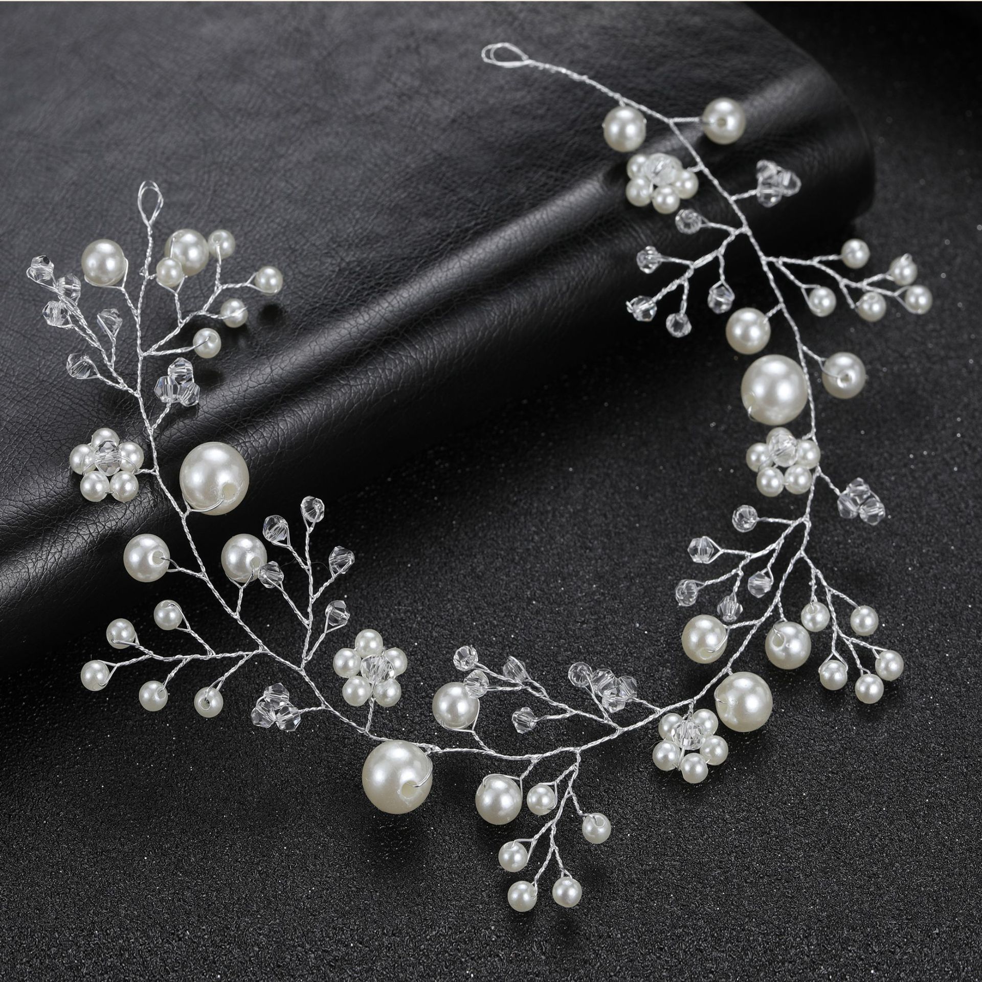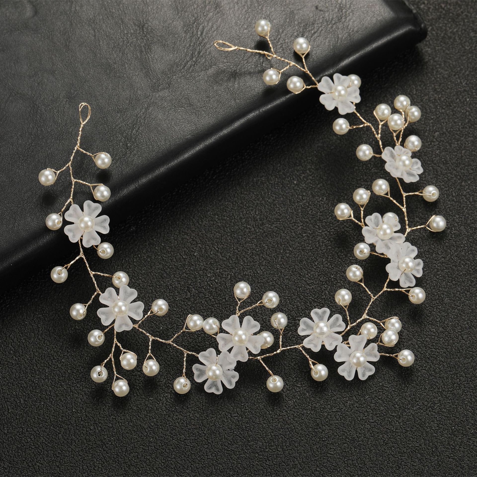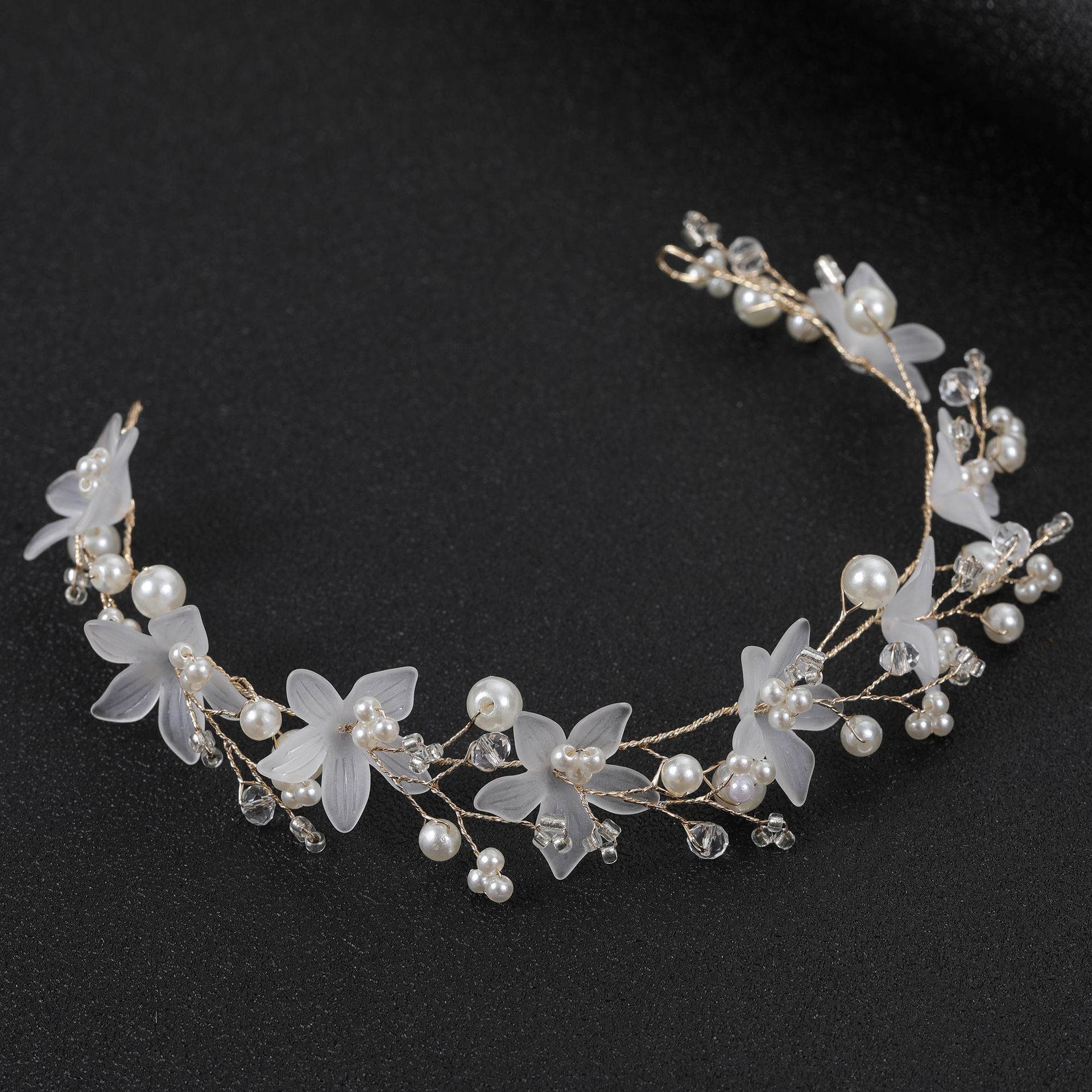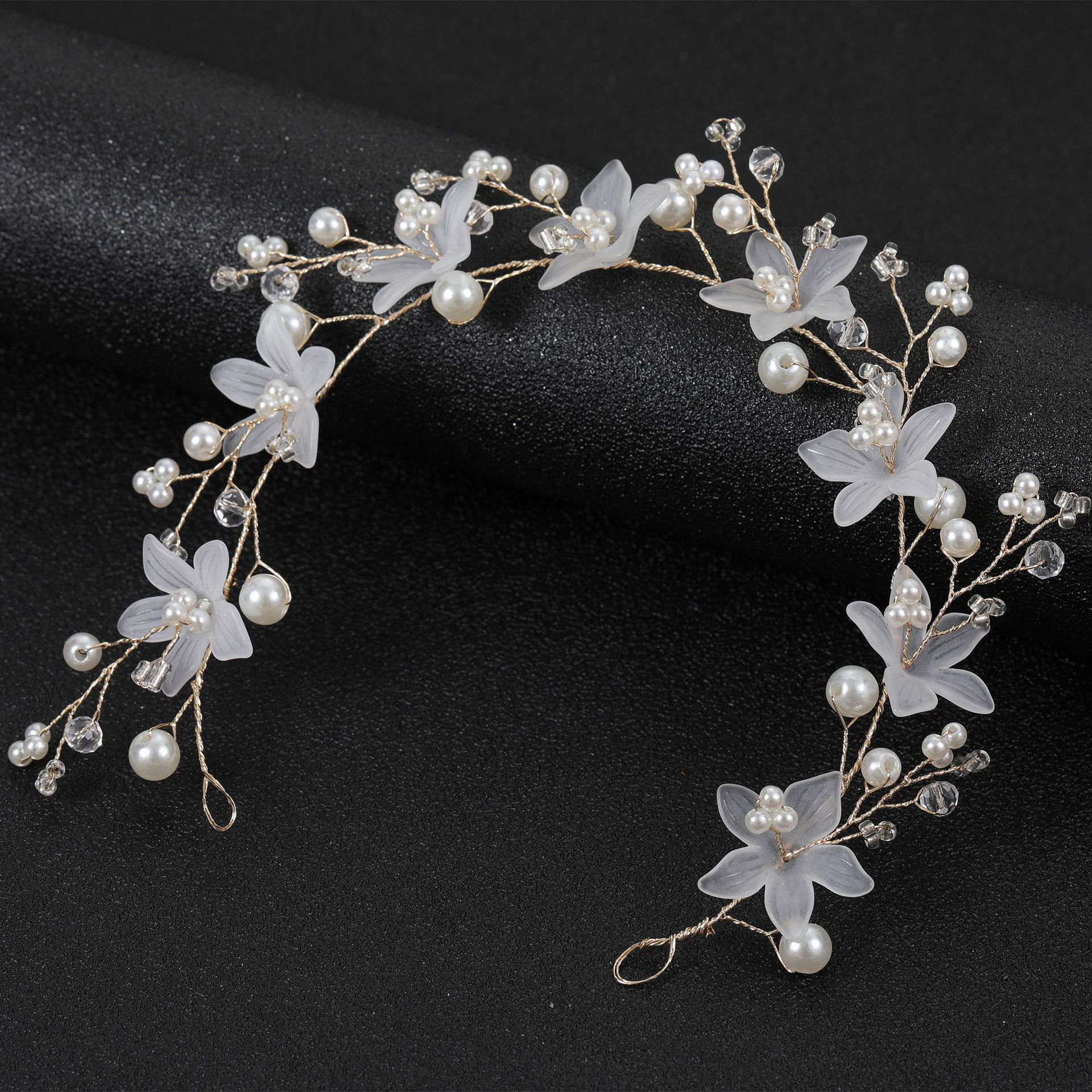 欧美跨境 透明塑料花珍珠手工软链发带发链 新娘婚礼头饰