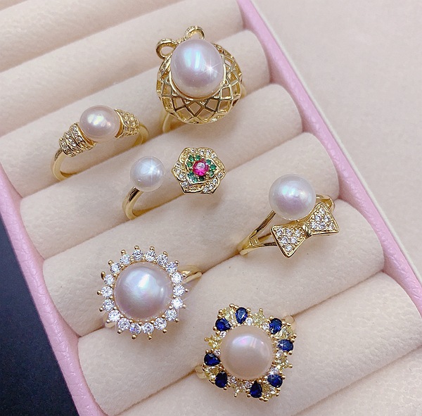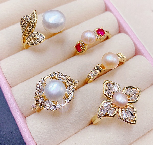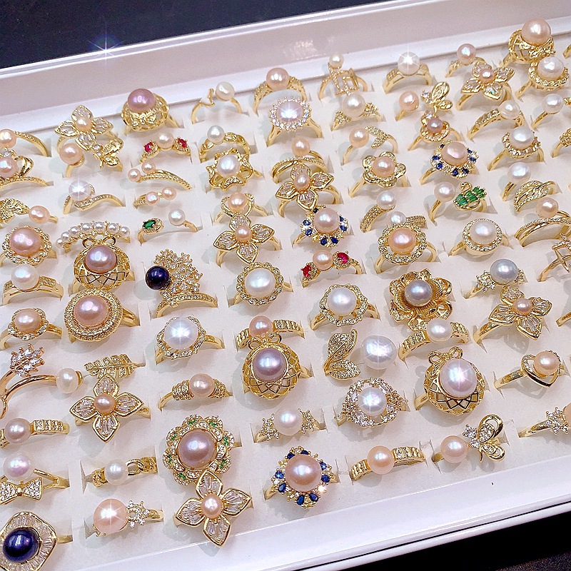 天然淡水珍珠开口可调戒指真金保色电镀微镶锆石轻奢高级感指环戒