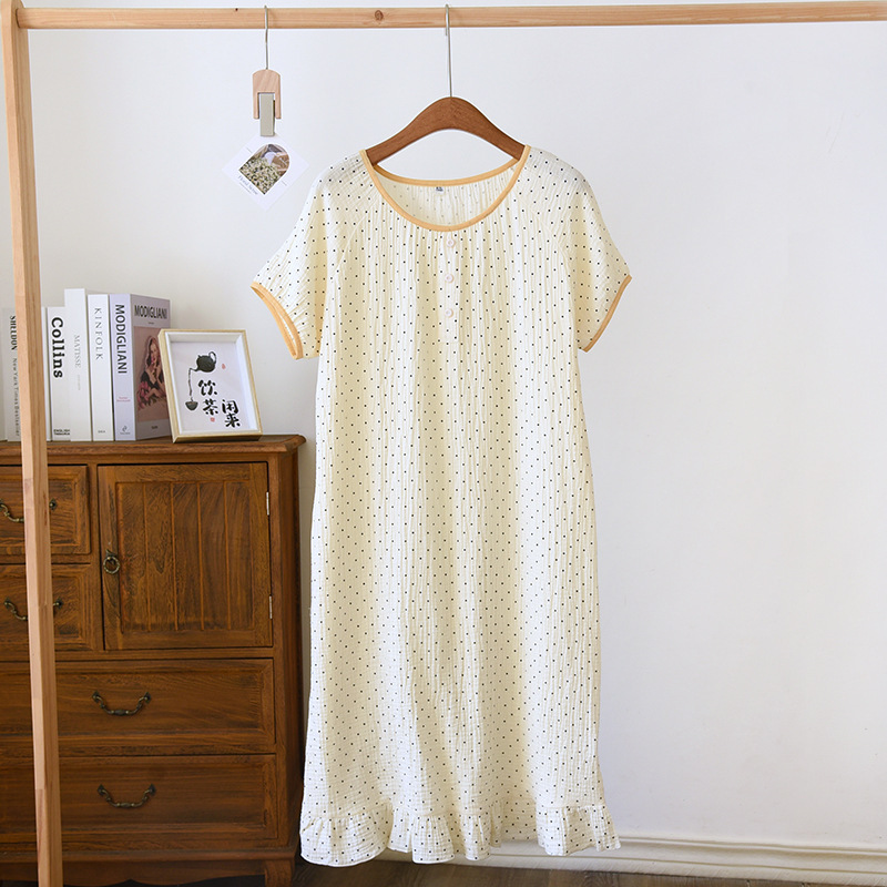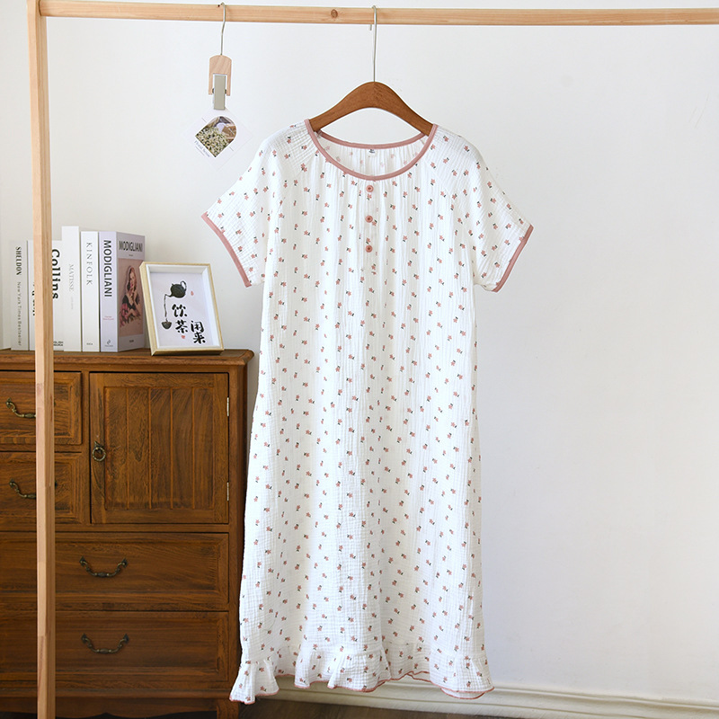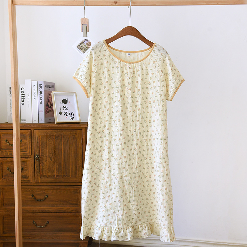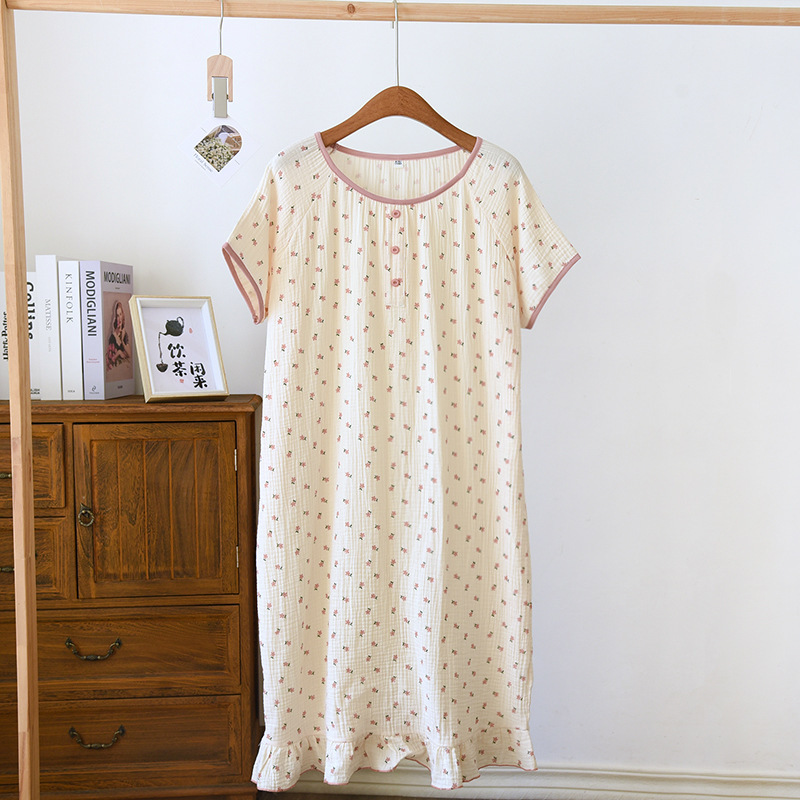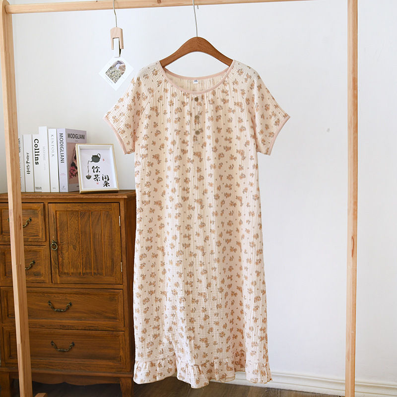 纯棉睡裙春夏长裤双层纱布婴儿棉柔软舒适棉纱薄款短袖家居服睡衣