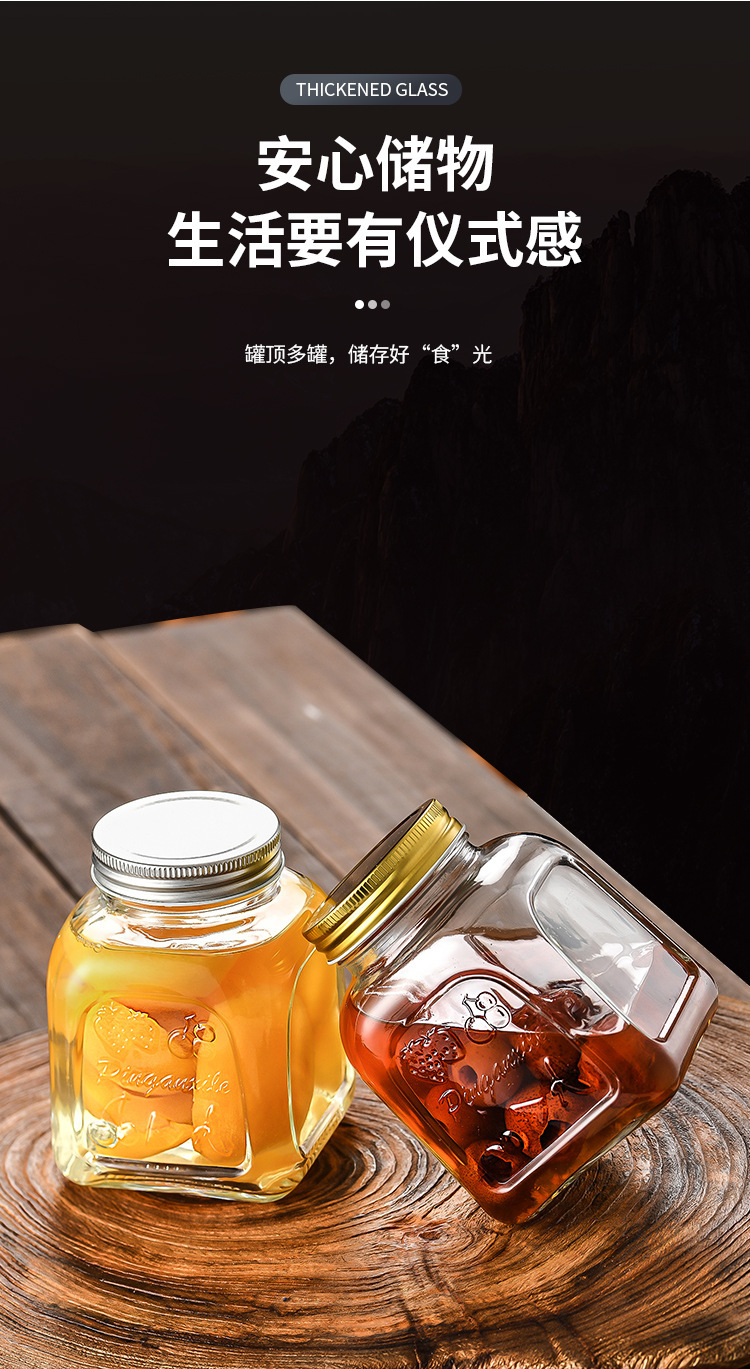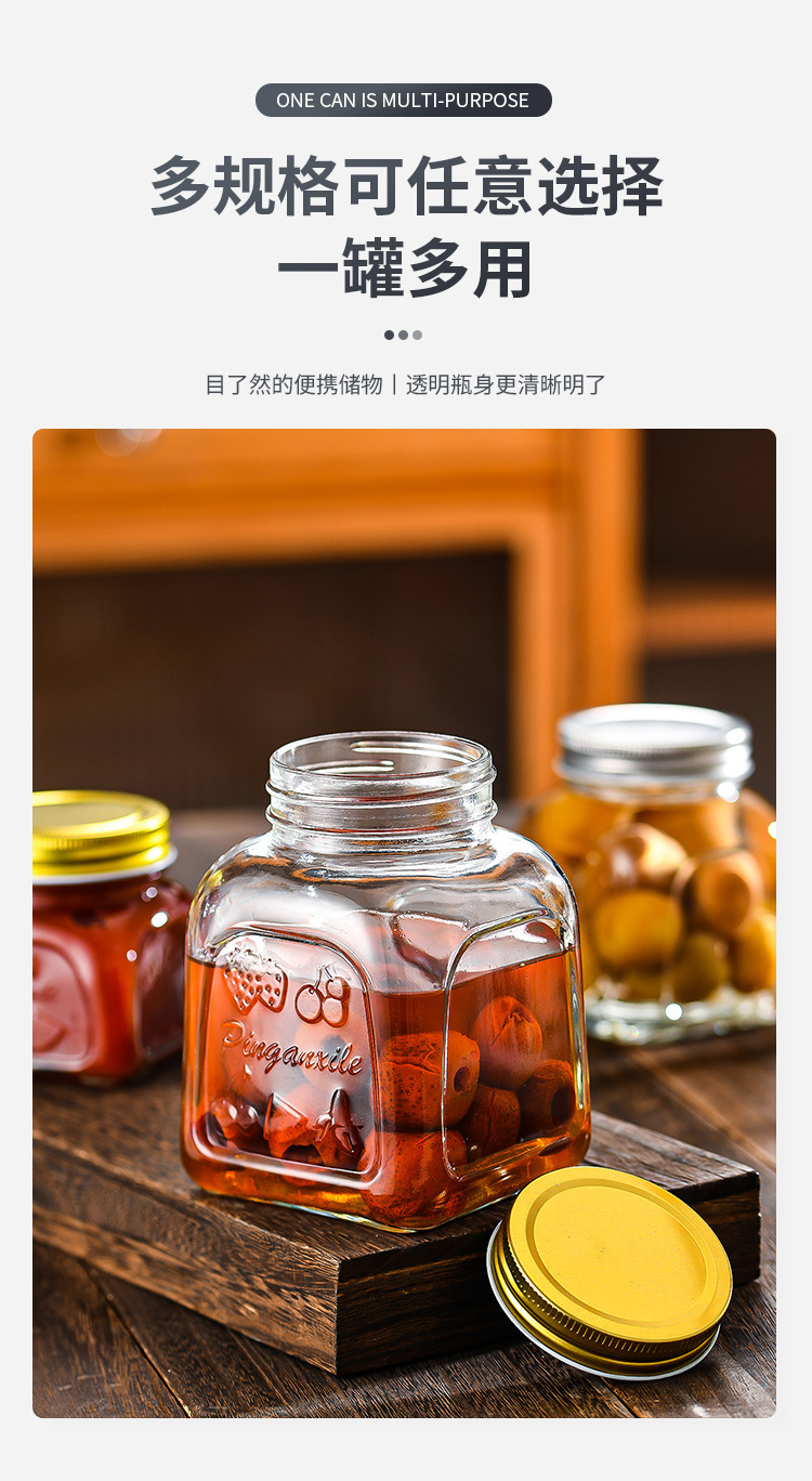 批发透明玻璃密封罐加厚储物罐罐头瓶沙拉酱瓶零食杂粮储存罐