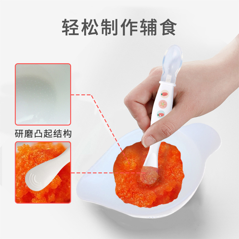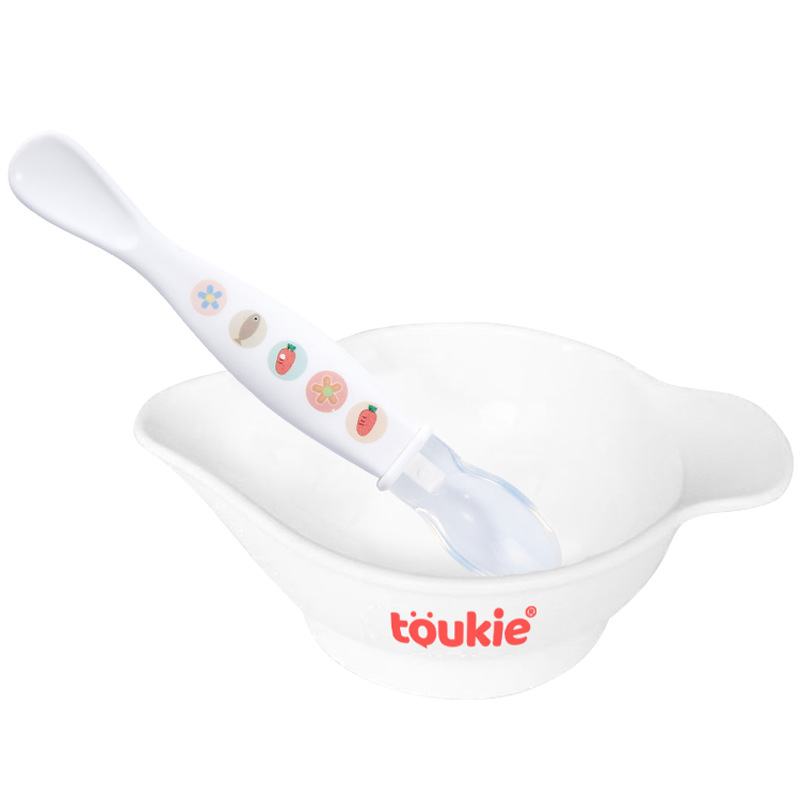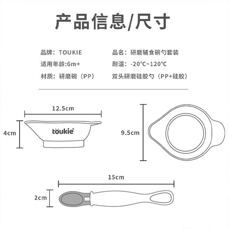 toukie 小淘气宝宝喂养辅食餐具套装 新生婴幼儿硅胶勺子研磨碗