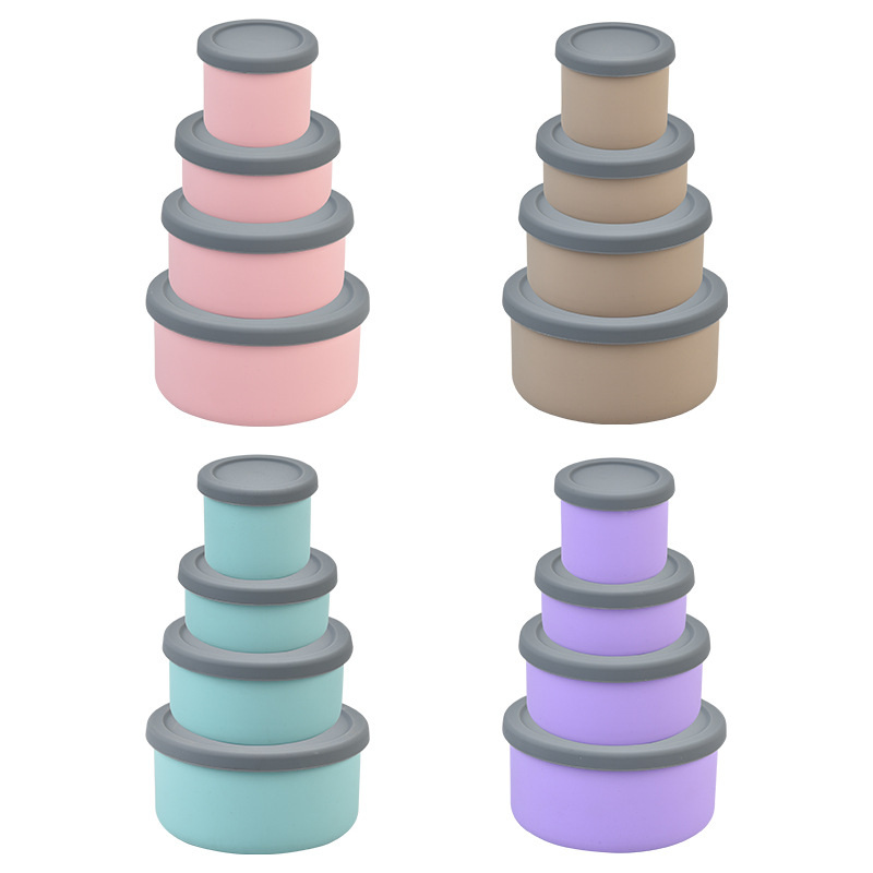 日用 餐盒 硅胶饭盒 4件套保鲜盒 微波炉冰箱锁鲜便携野餐便当盒