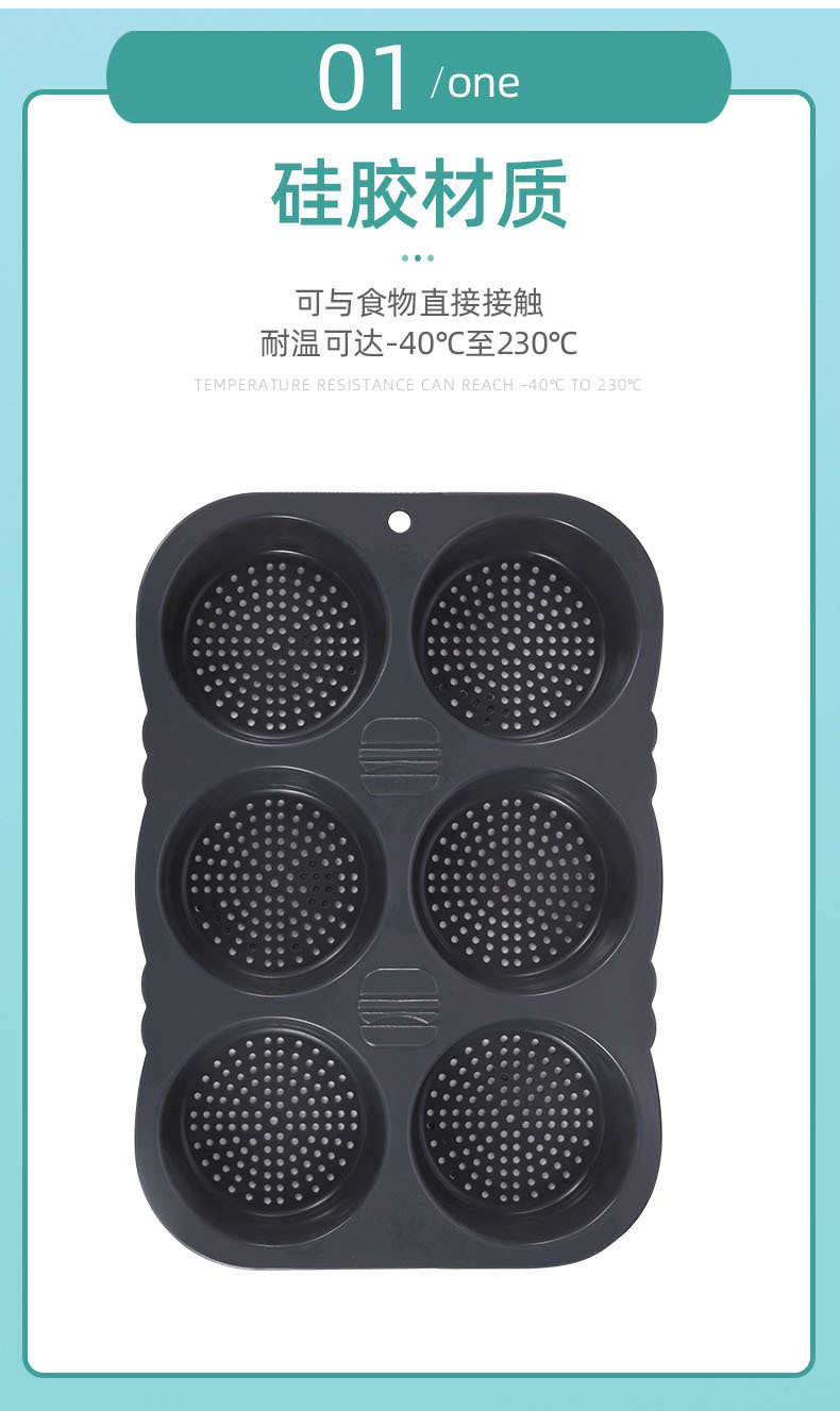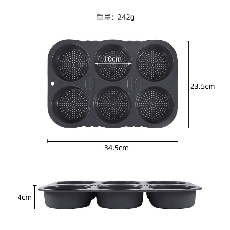新款6孔汉堡模 硅胶面包烤盘 家用烘焙工具食品级不沾汉