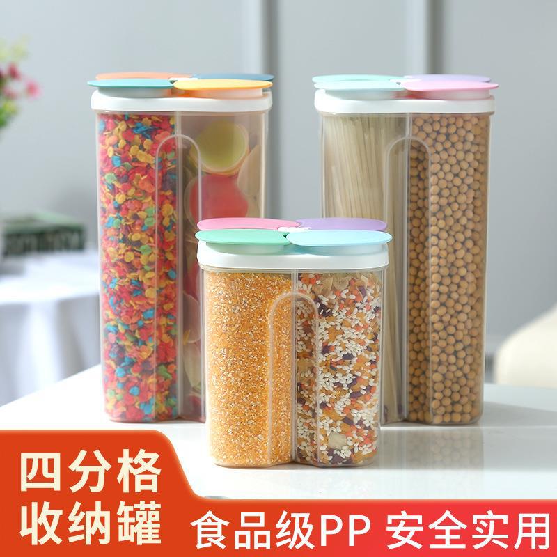 五谷杂粮密封罐四分格收纳盒塑料家用厨房食品级防潮豆子类储物罐