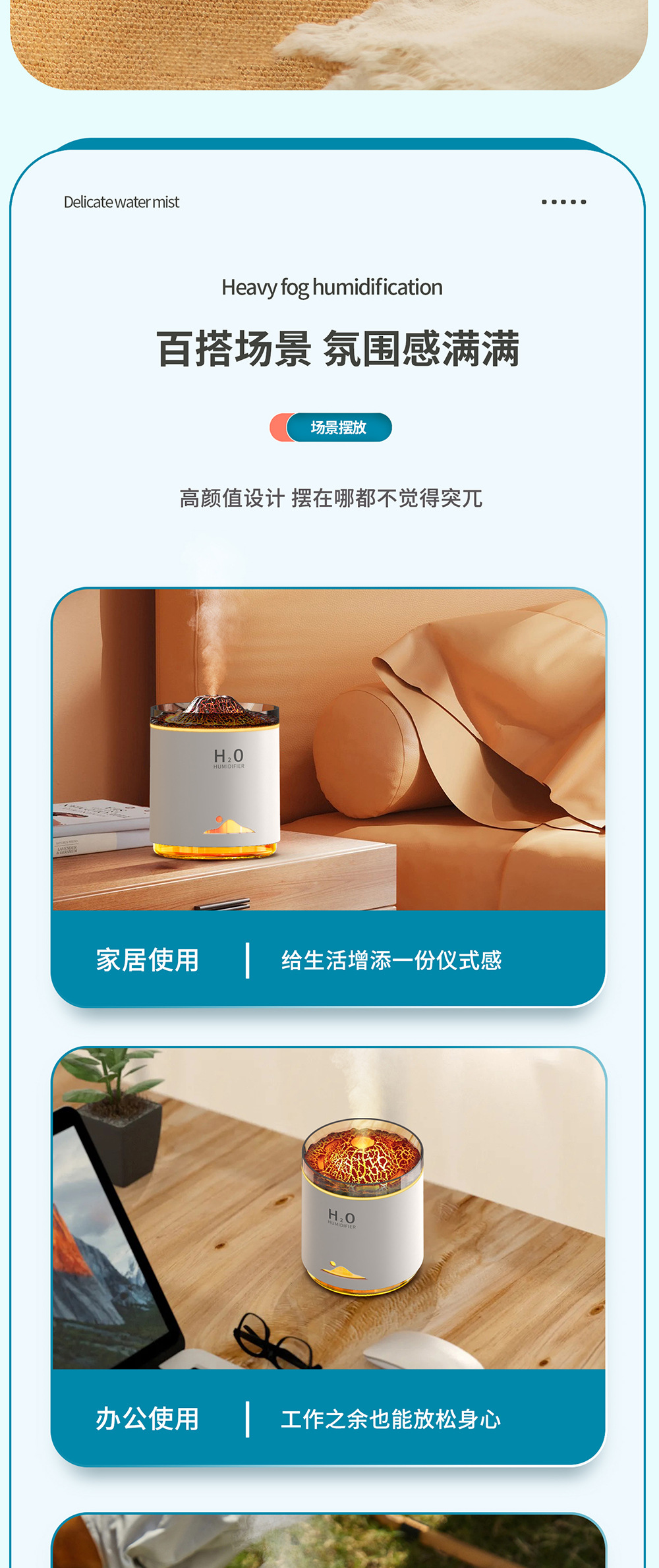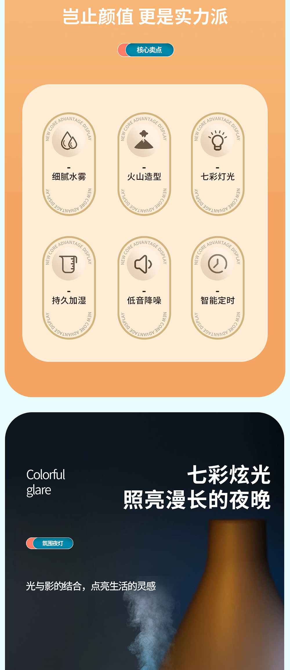 外贸专供火山香薰机七彩火焰小夜灯大容量喷雾香氛机火焰加湿器