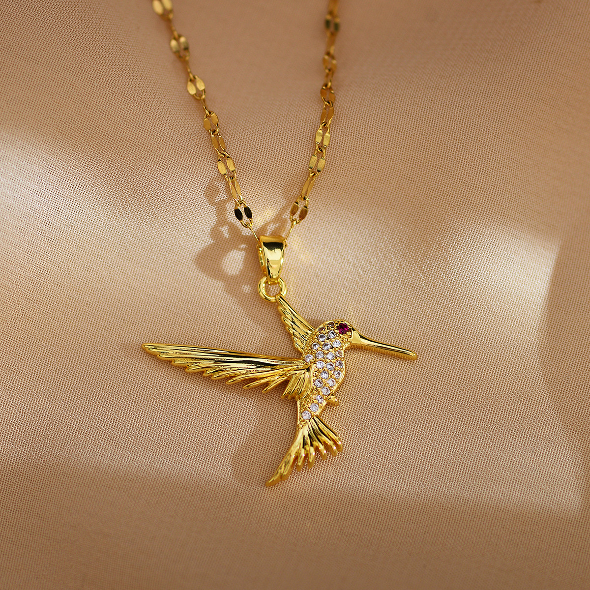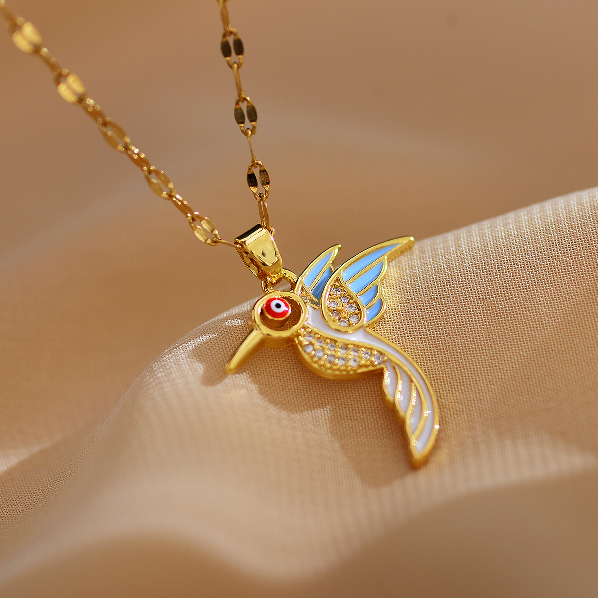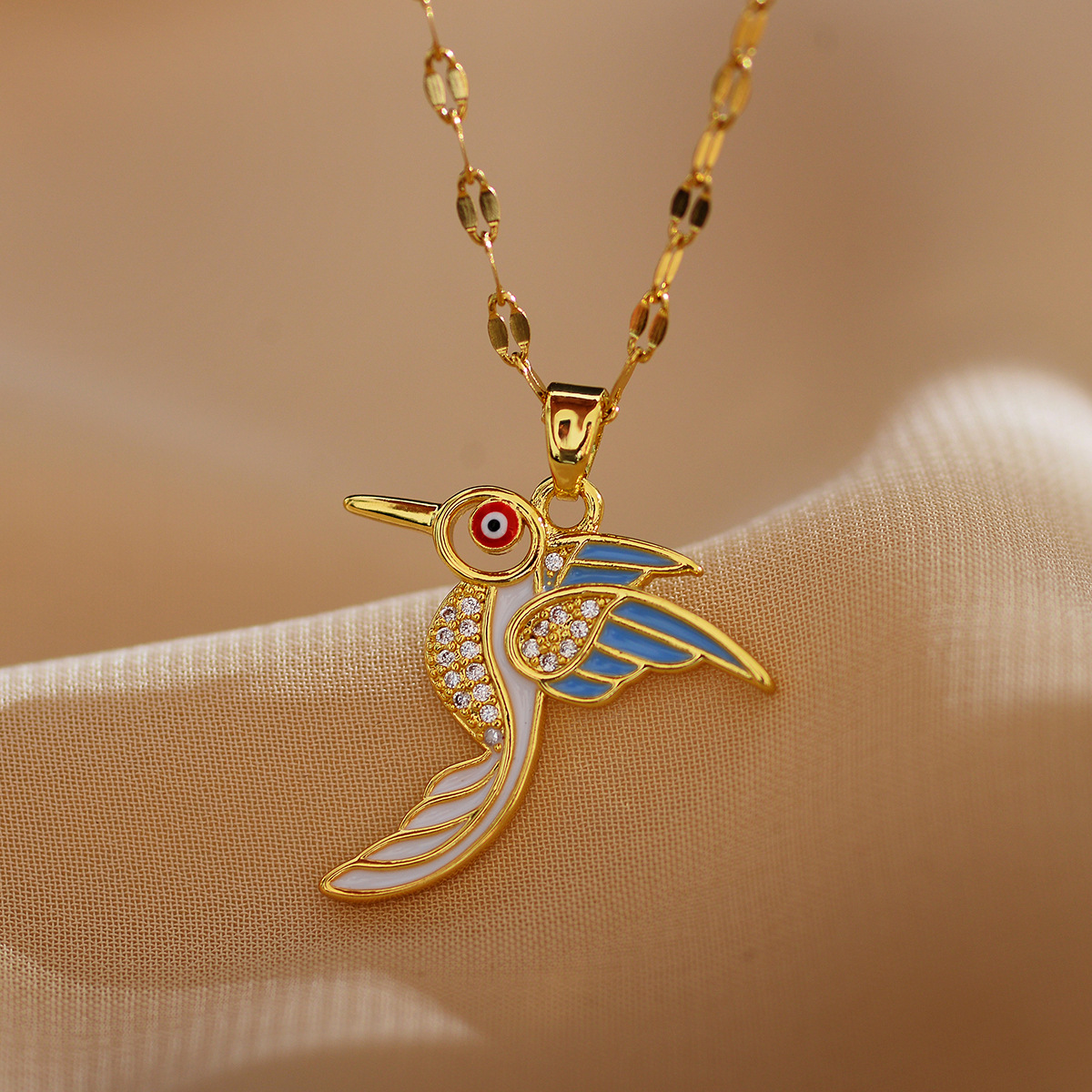 时尚简约啄木鸟轻奢跨境宴会婚庆项链女网红百搭锁骨链钛钢链条