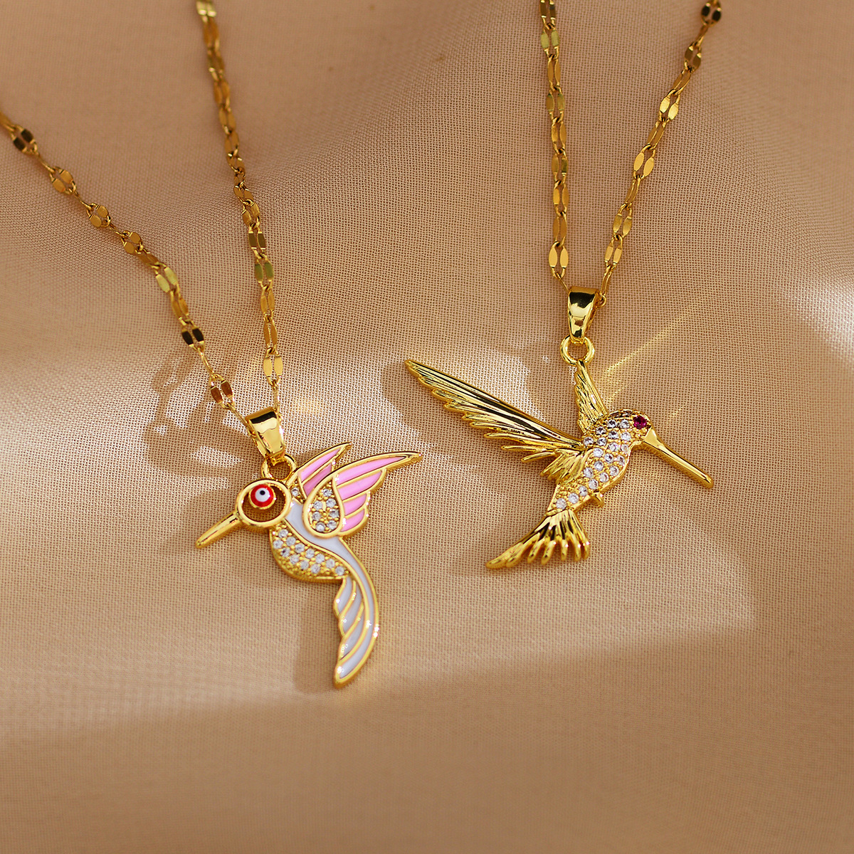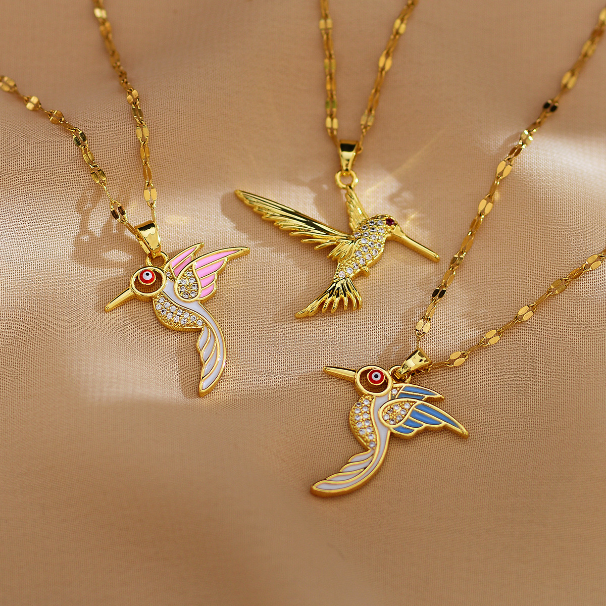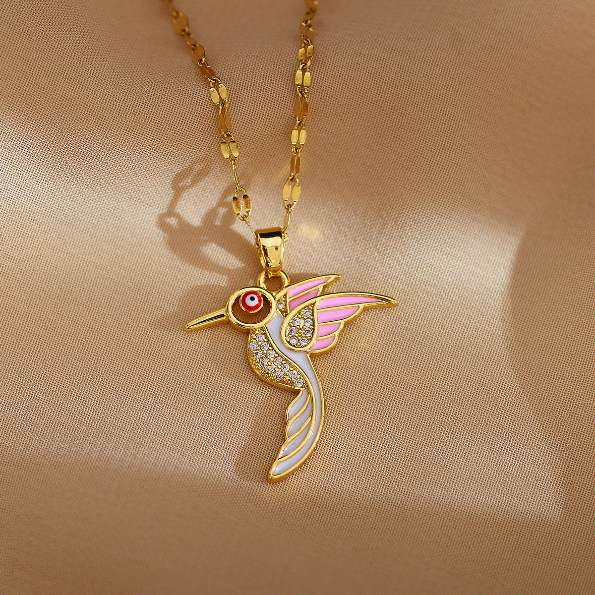 时尚简约啄木鸟轻奢跨境宴会婚庆项链女网红百搭锁骨链钛钢链条