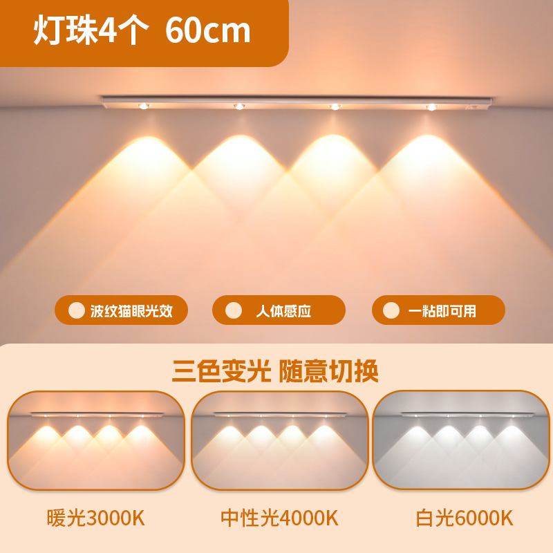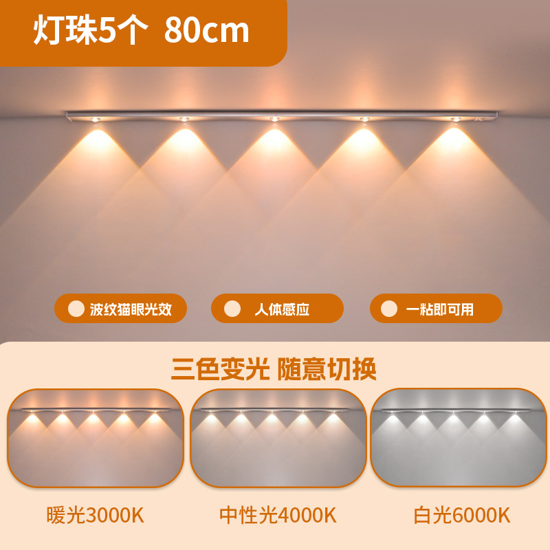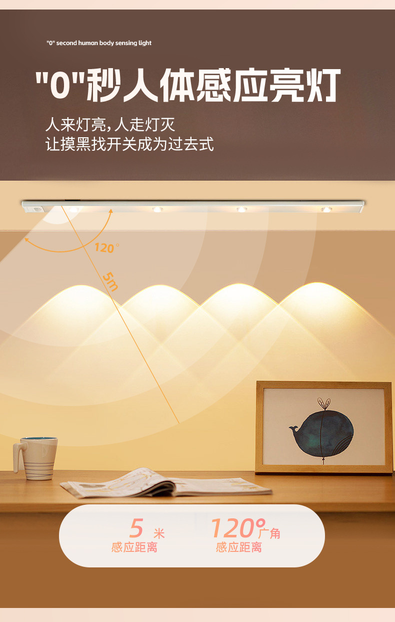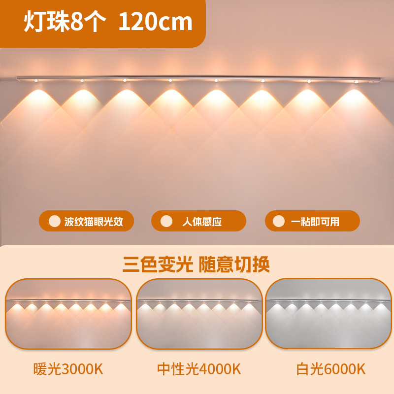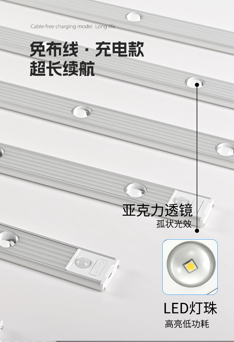 外贸专供智能充电led人体感应灯猫眼山丘灯带酒柜橱柜玄关灯条
