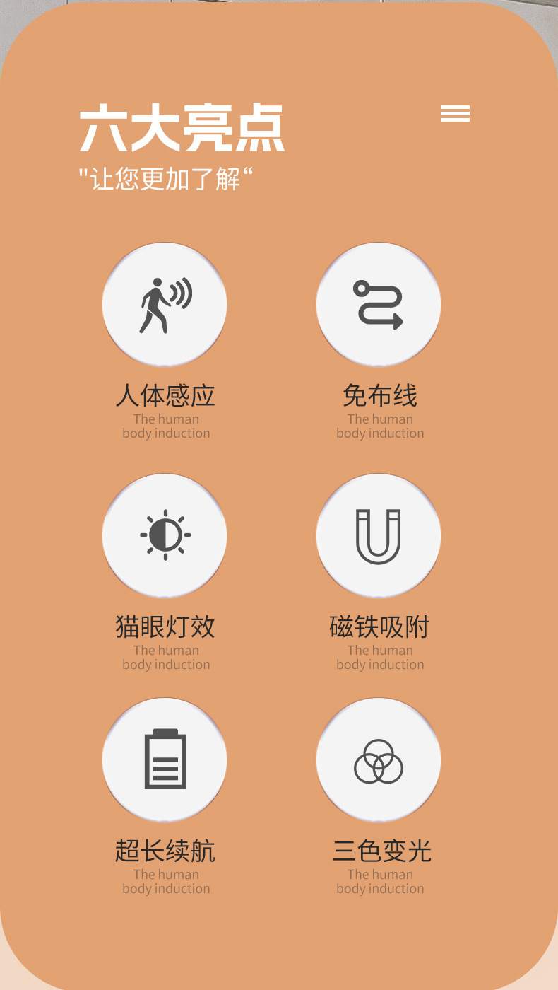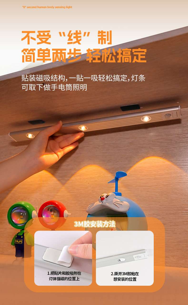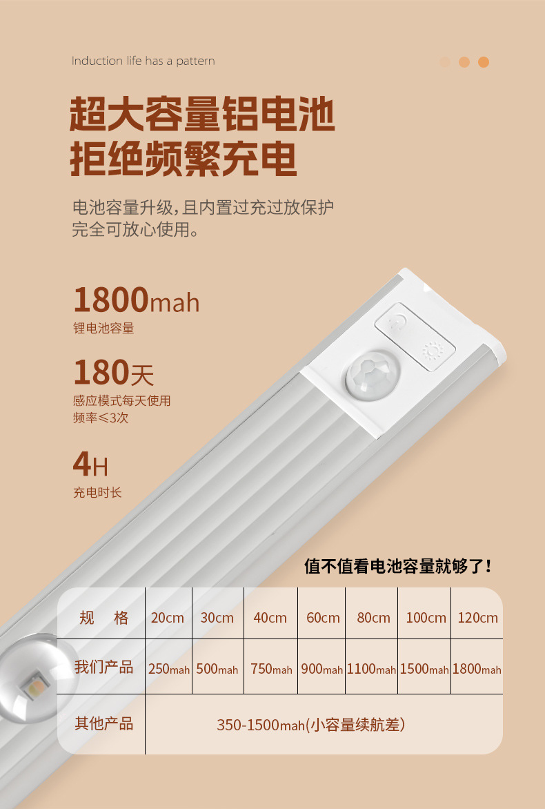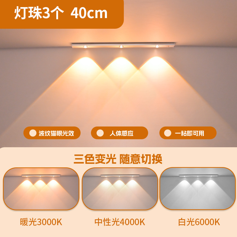 外贸专供智能充电led人体感应灯猫眼山丘灯带酒柜橱柜玄关灯条