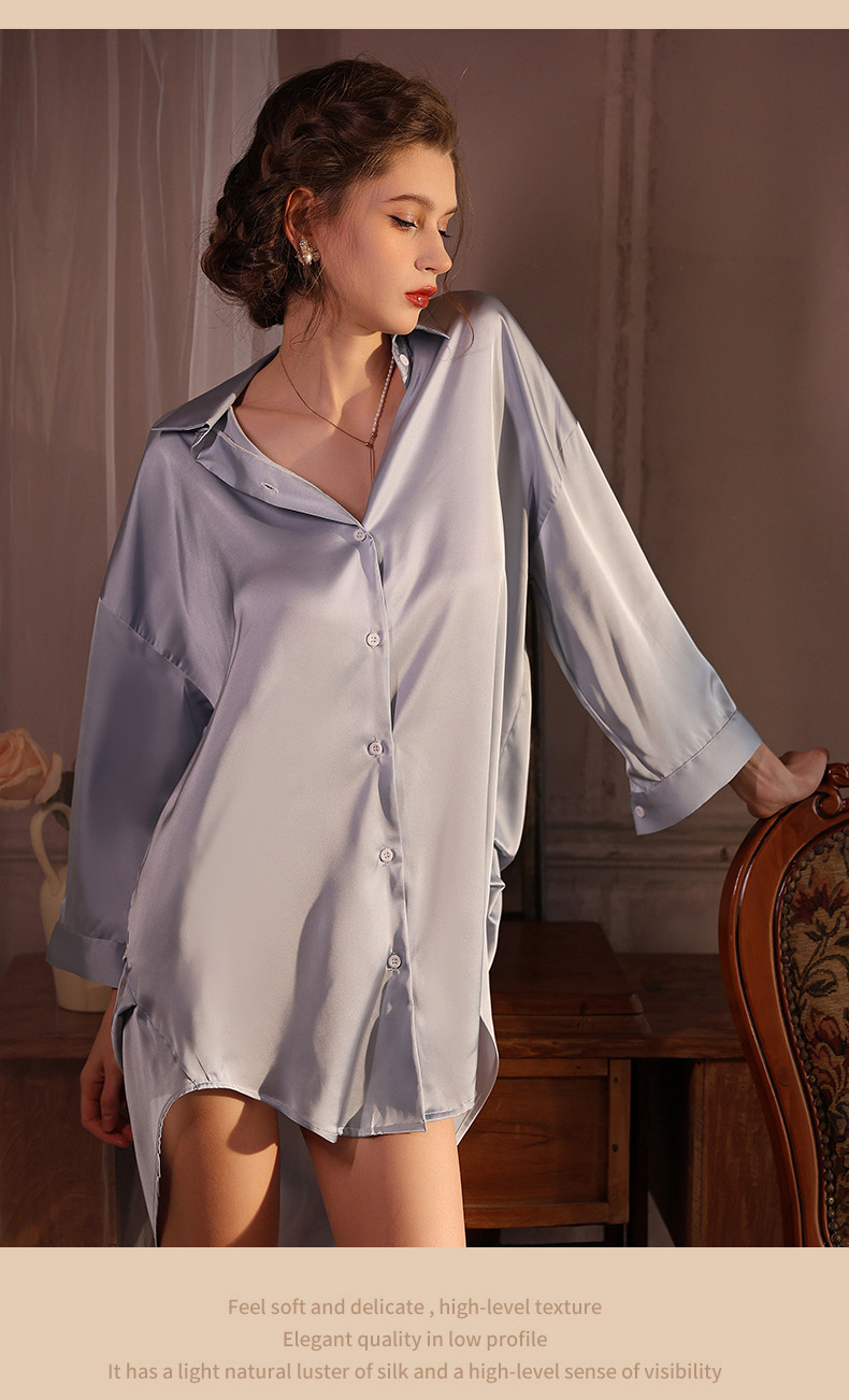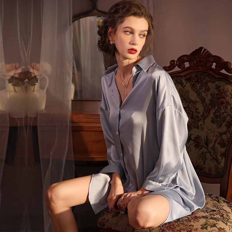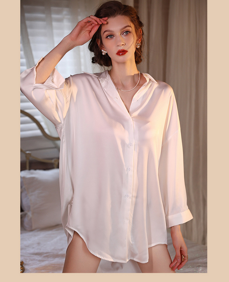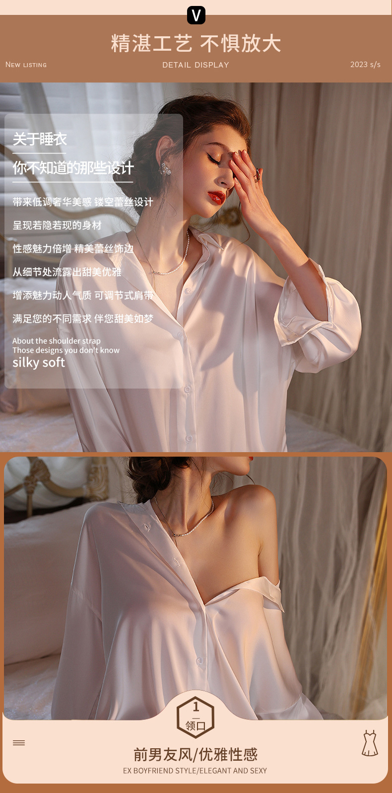 男友风性感白衬衫女高级感冰丝睡裙宽松大码纯欲诱惑性感情趣睡衣