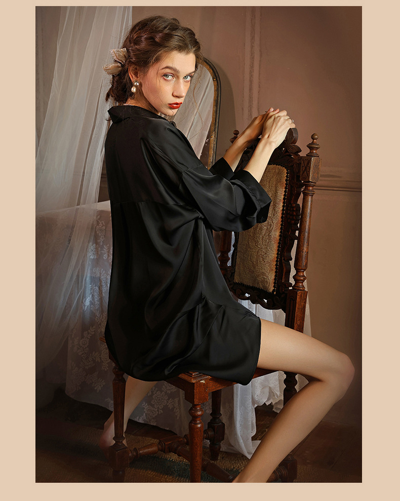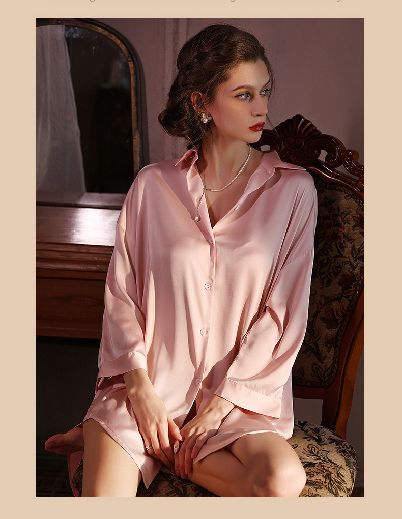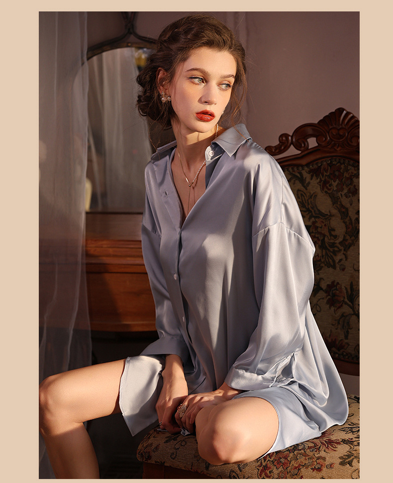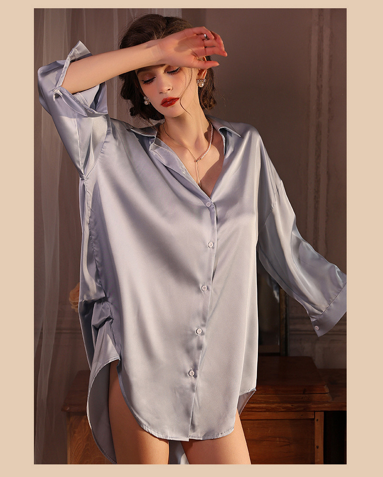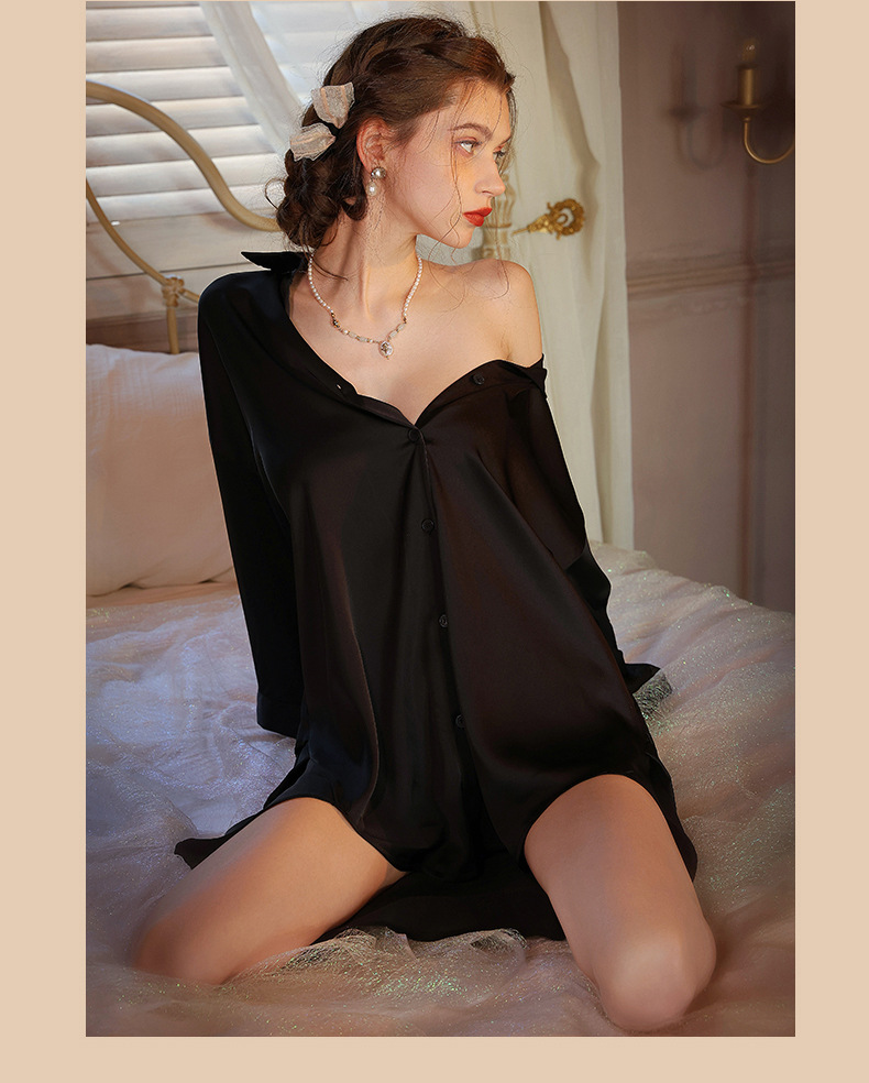 男友风性感白衬衫女高级感冰丝睡裙宽松大码纯欲诱惑性感情趣睡衣
