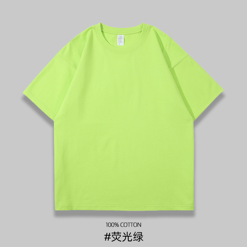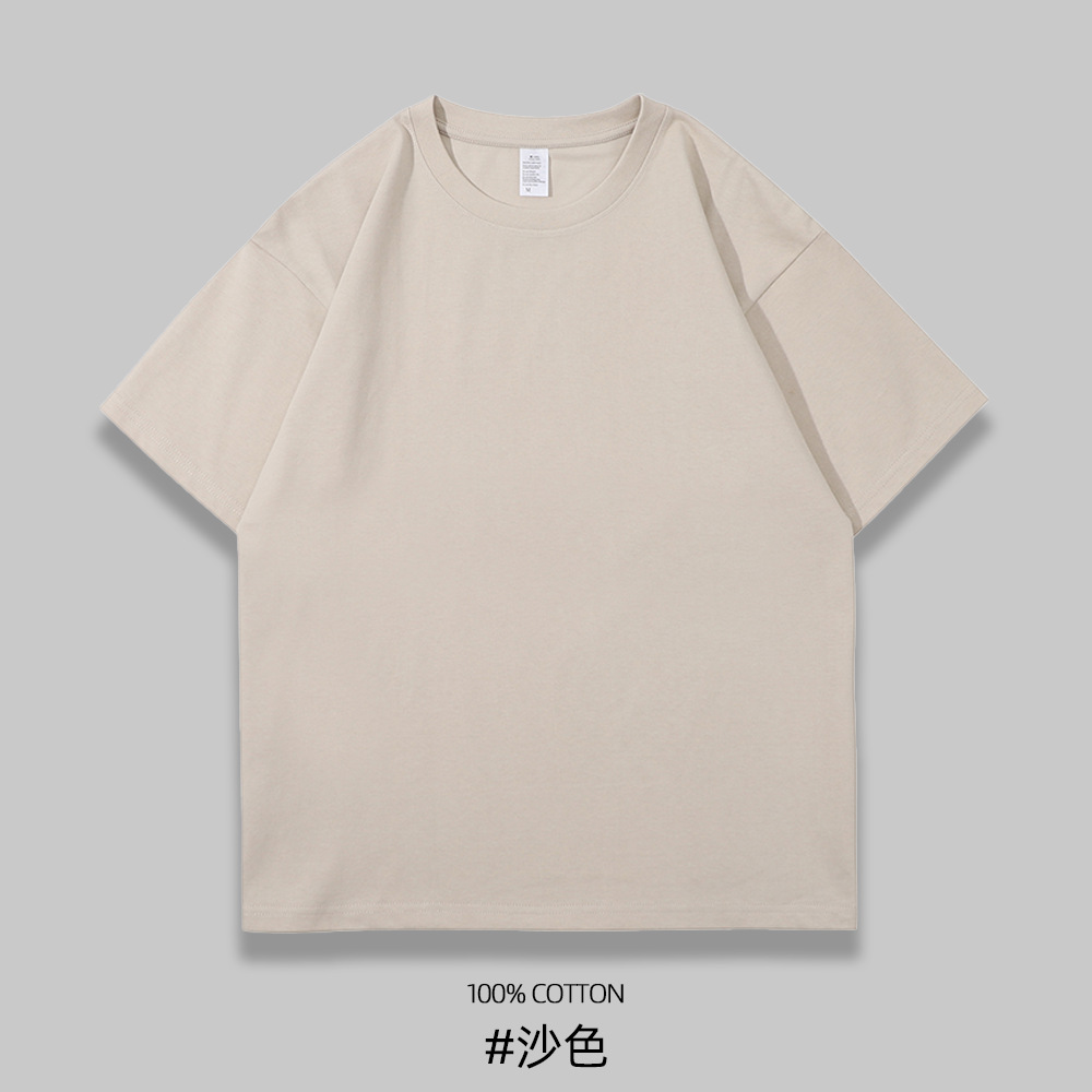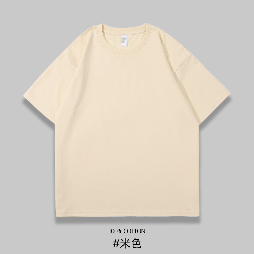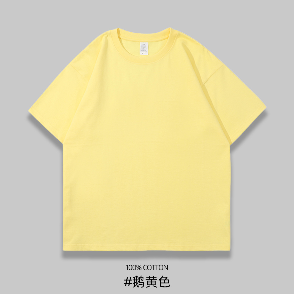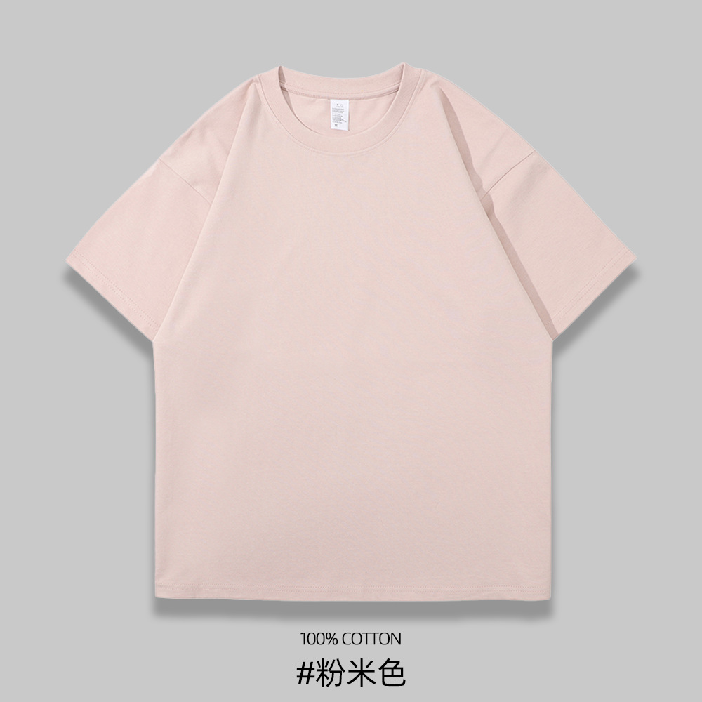 纯棉t恤男女款280克全棉重磅纯色短袖t恤休闲落肩宽松圆领t恤衫