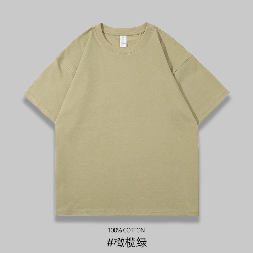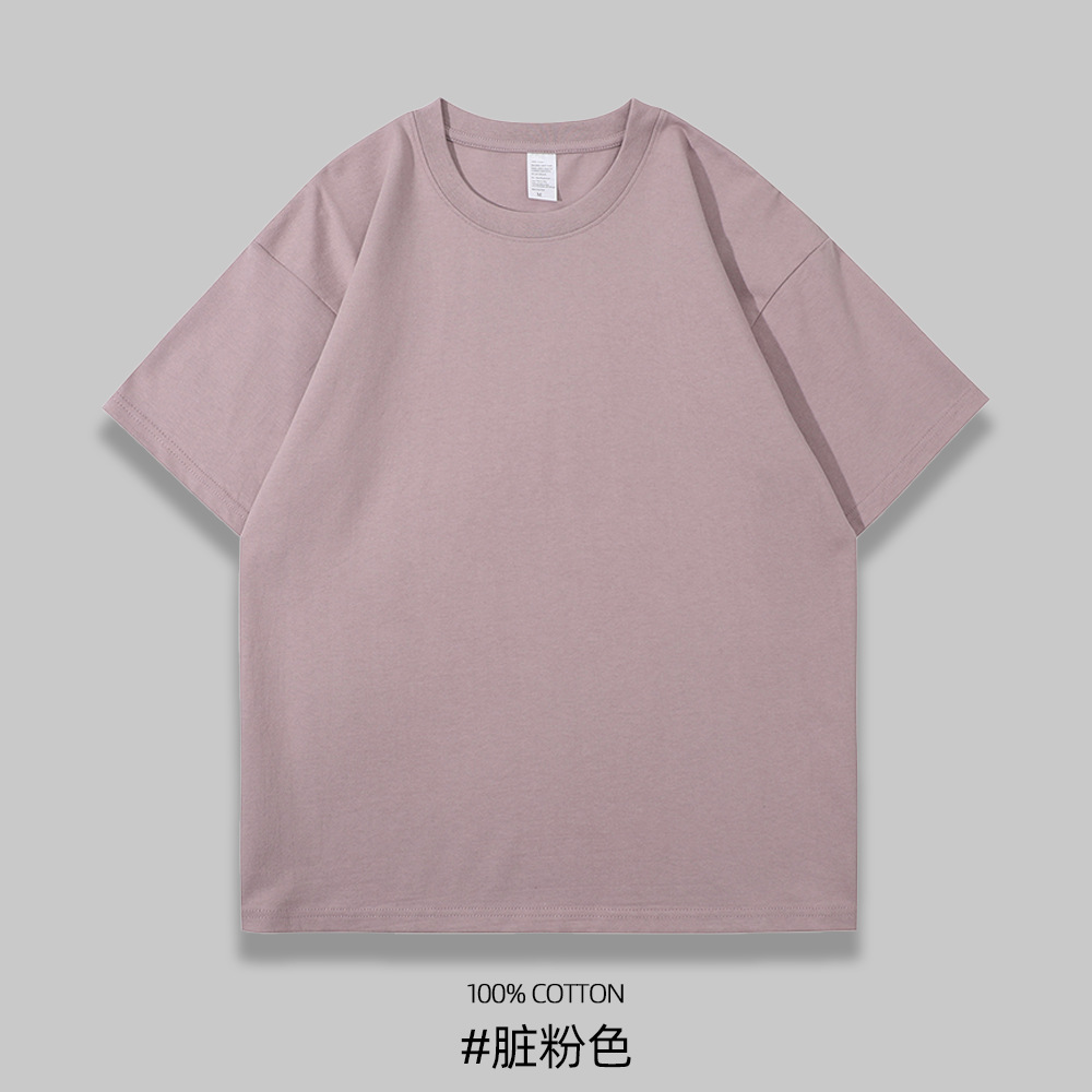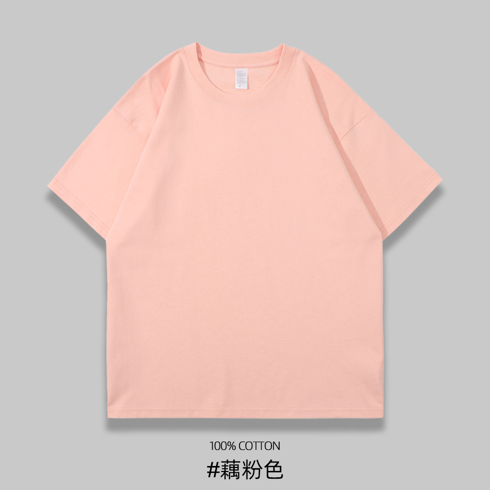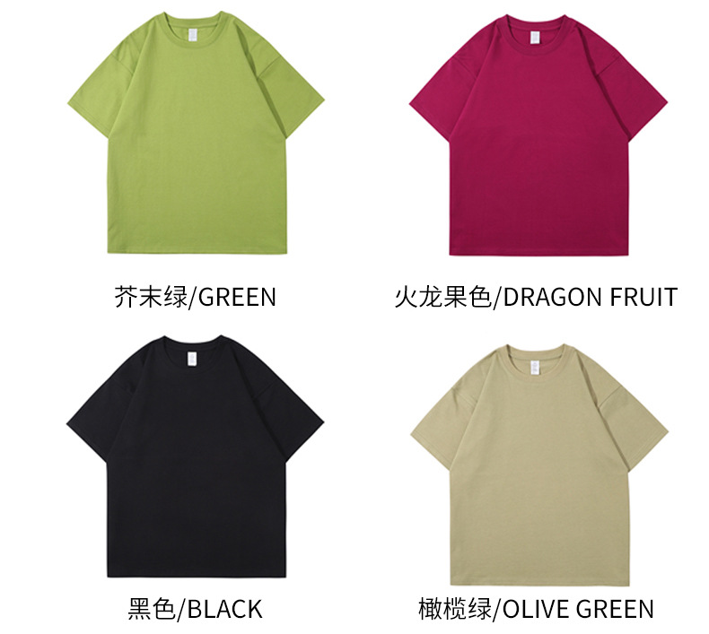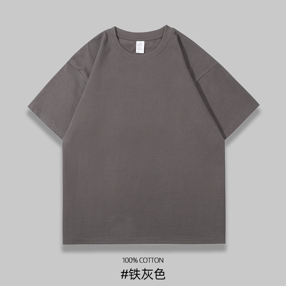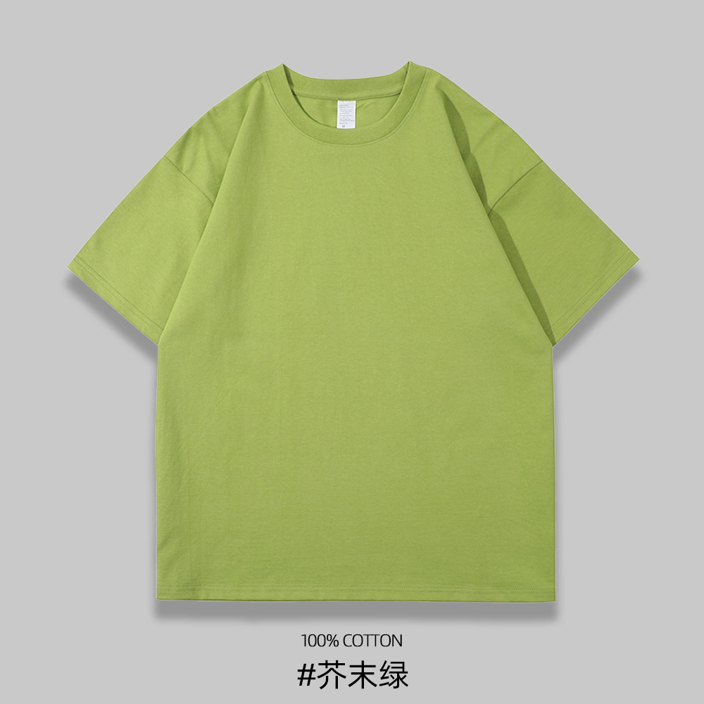 纯棉t恤男女款280克全棉重磅纯色短袖t恤休闲落肩宽松圆领t恤衫