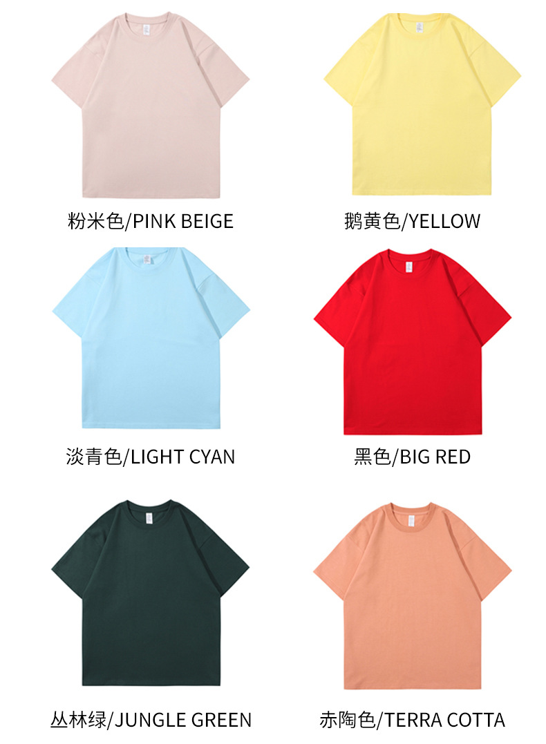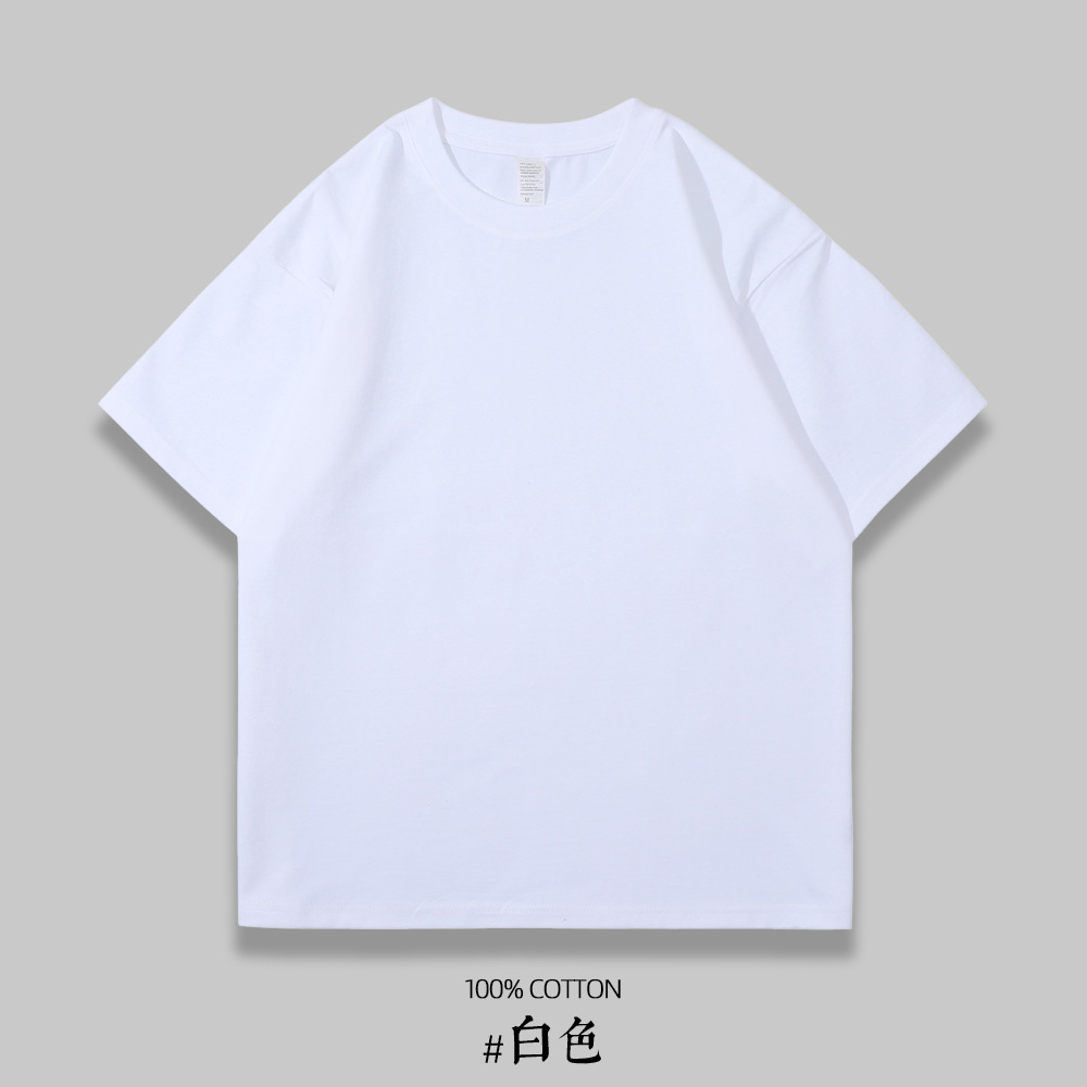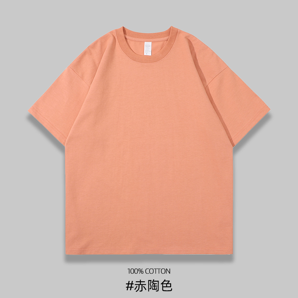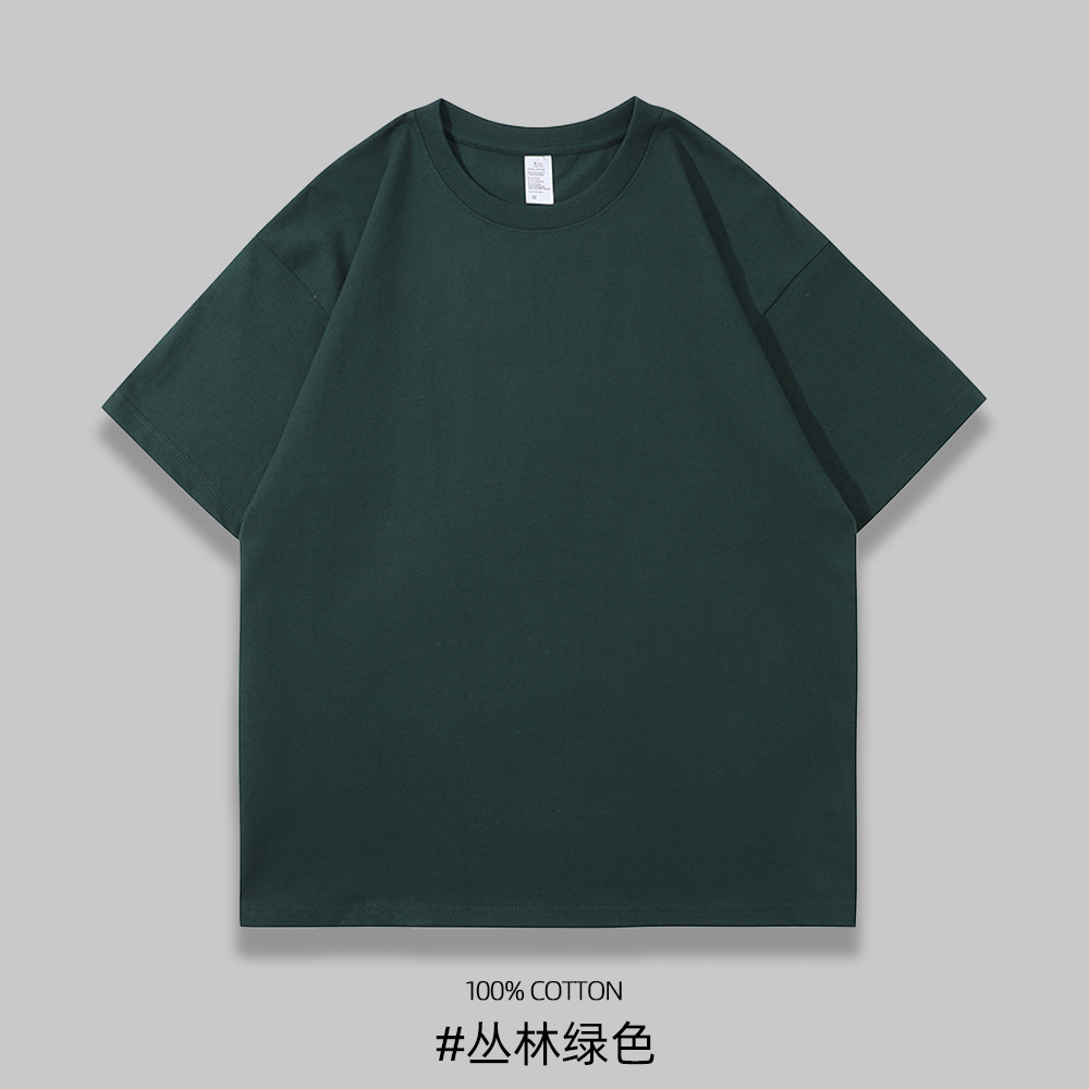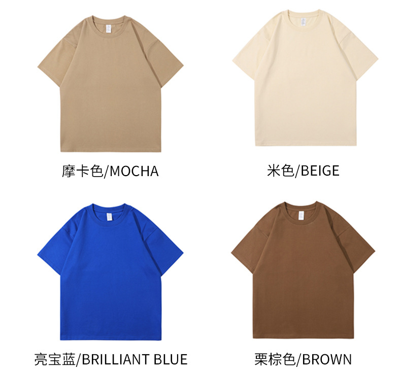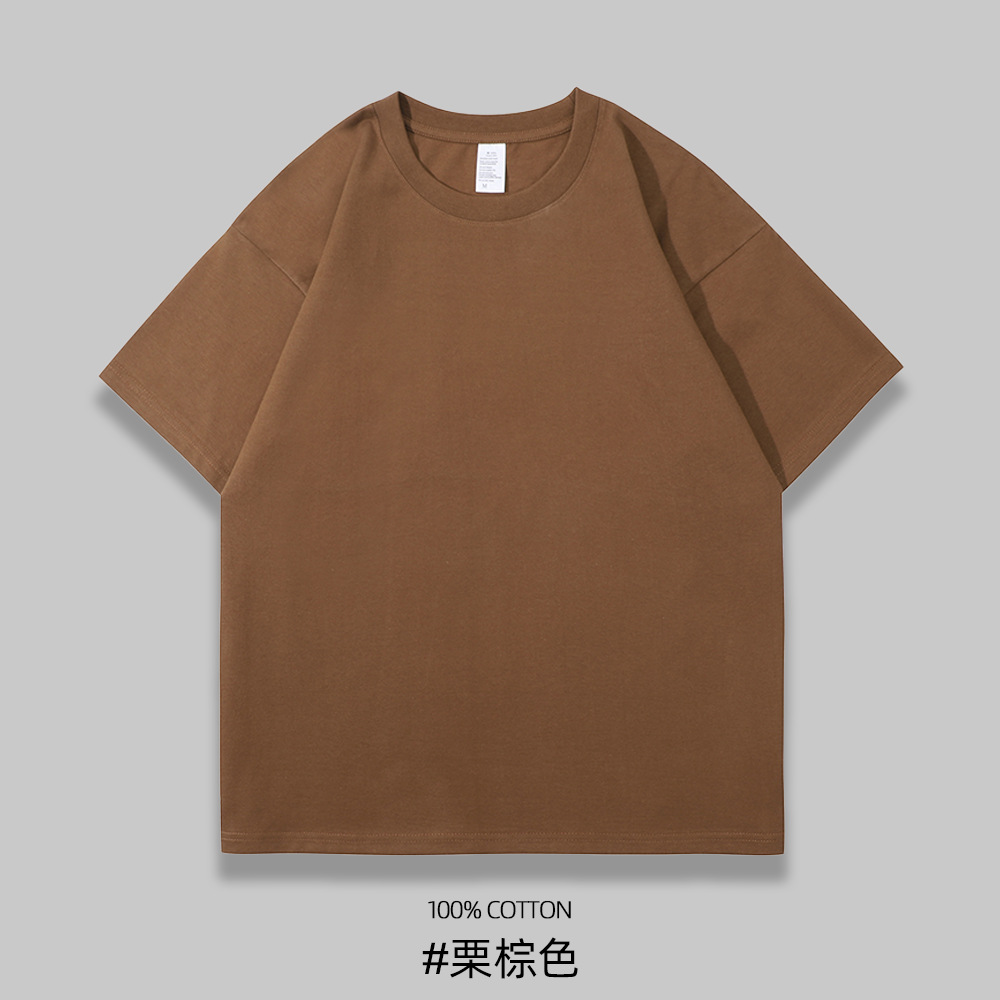 纯棉t恤男女款280克全棉重磅纯色短袖t恤休闲落肩宽松圆领t恤衫