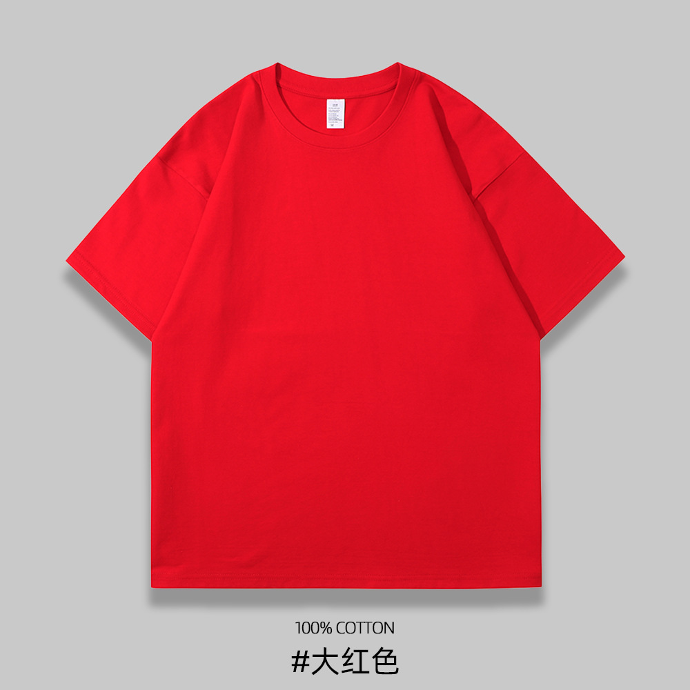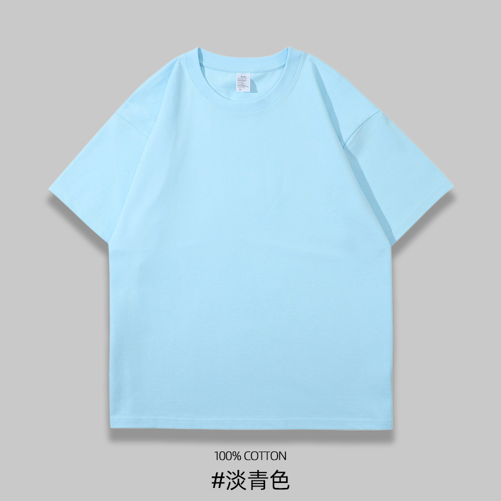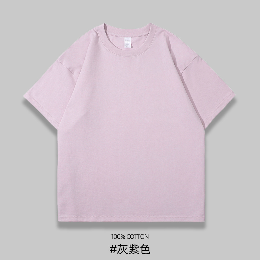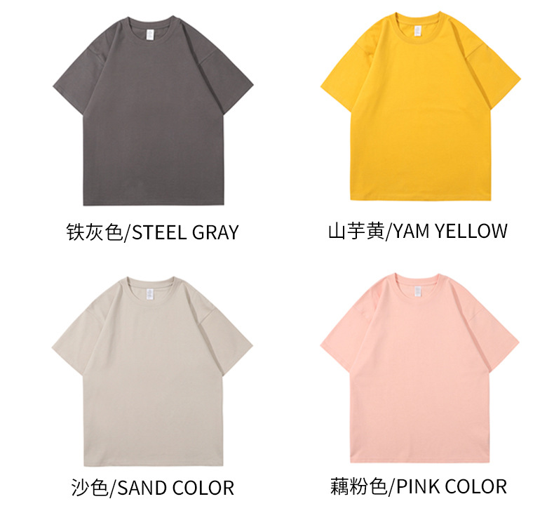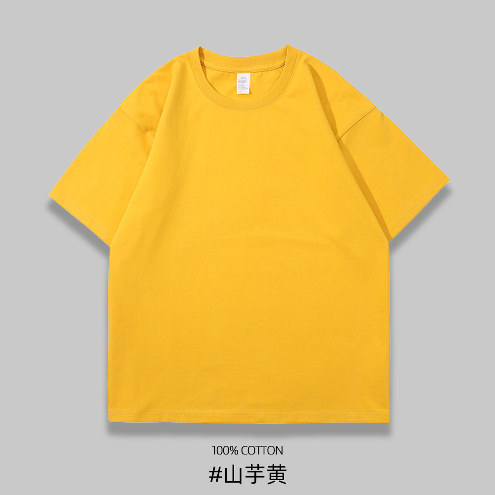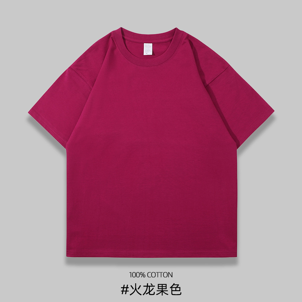 纯棉t恤男女款280克全棉重磅纯色短袖t恤休闲落肩宽松圆领t恤衫