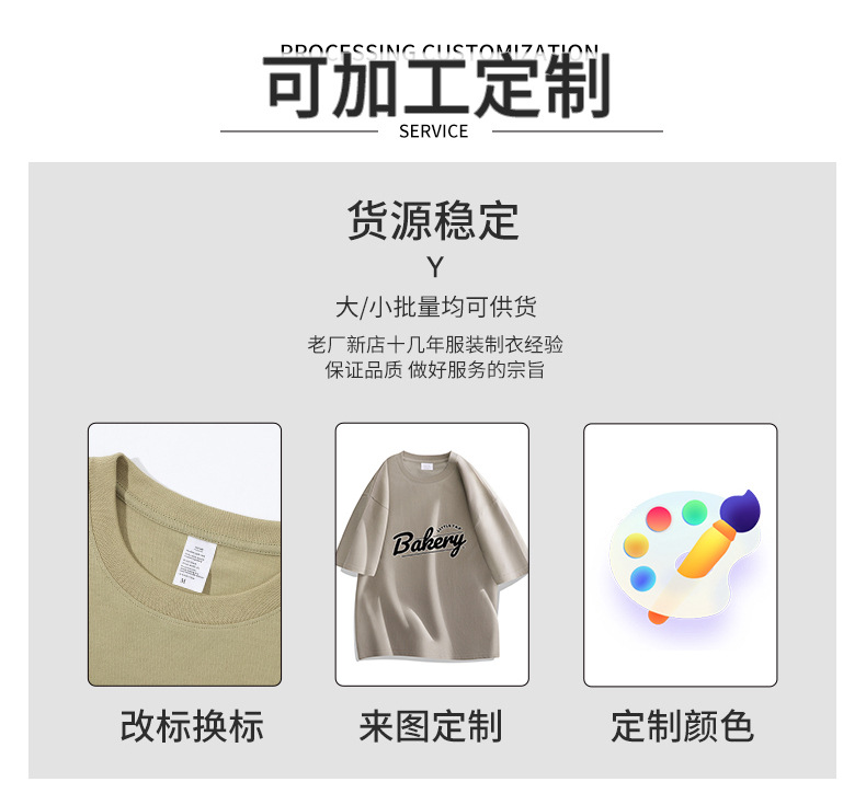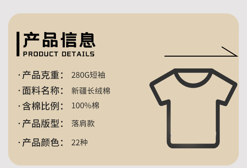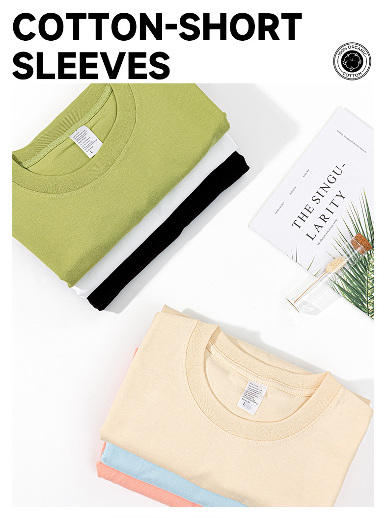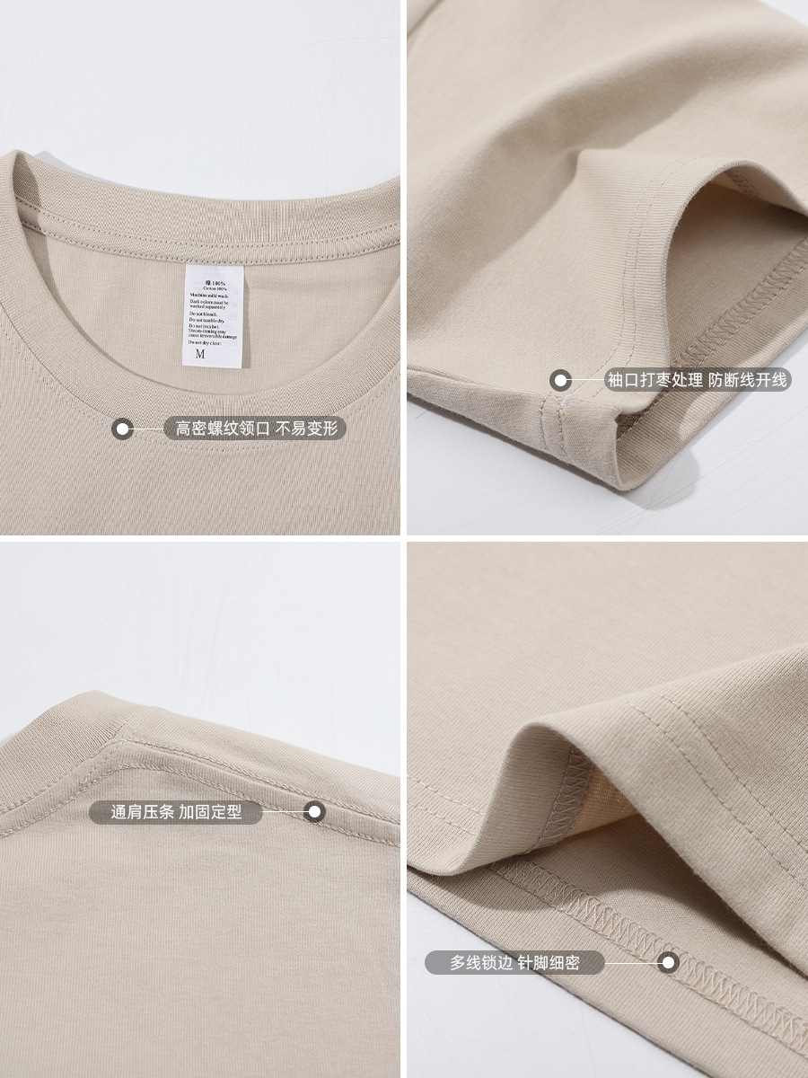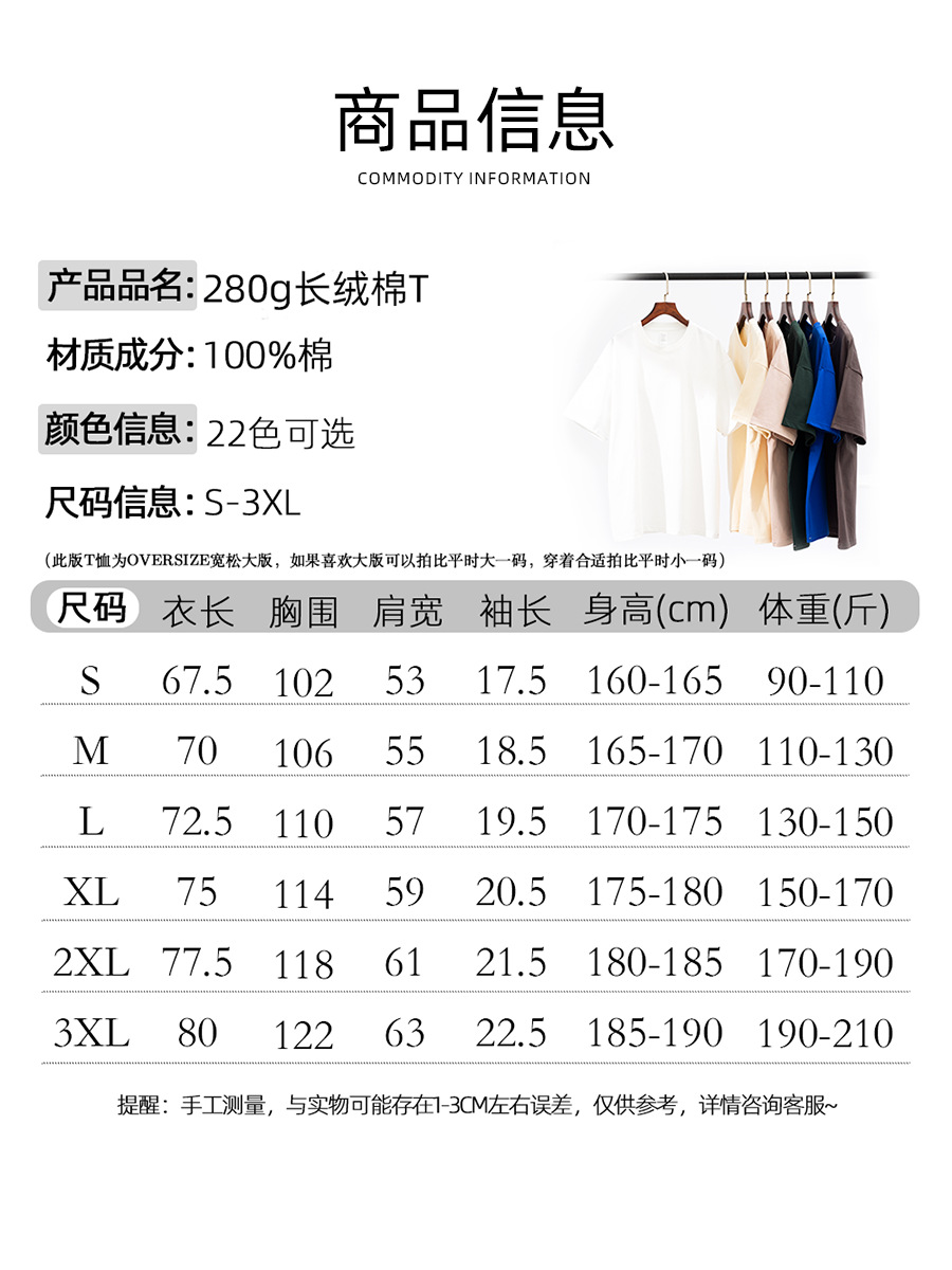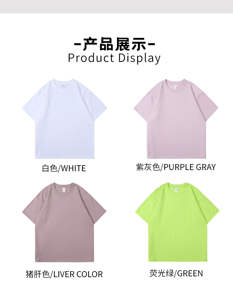 纯棉t恤男女款280克全棉重磅纯色短袖t恤休闲落肩宽松圆领t恤衫