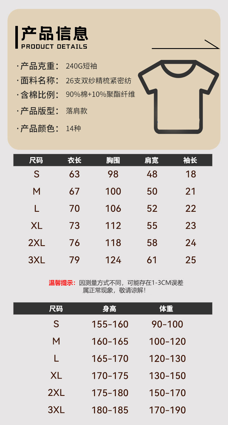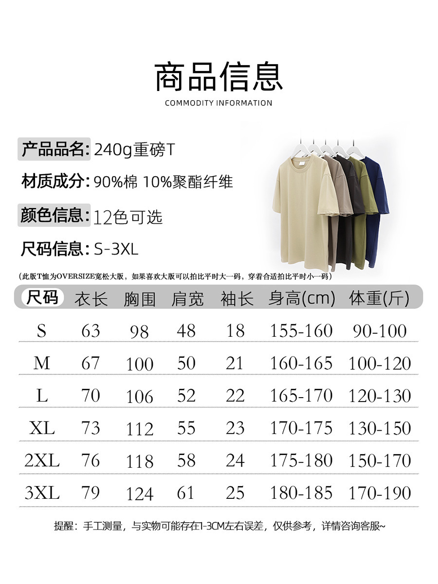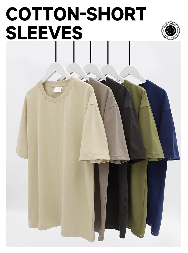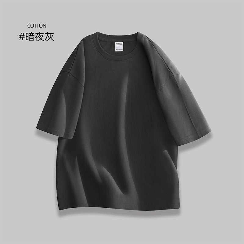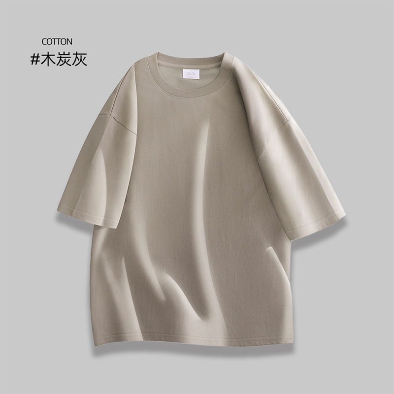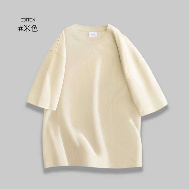240g短袖重磅T恤男女纯色宽松短袖情侣oversize高街精梳棉落肩T恤