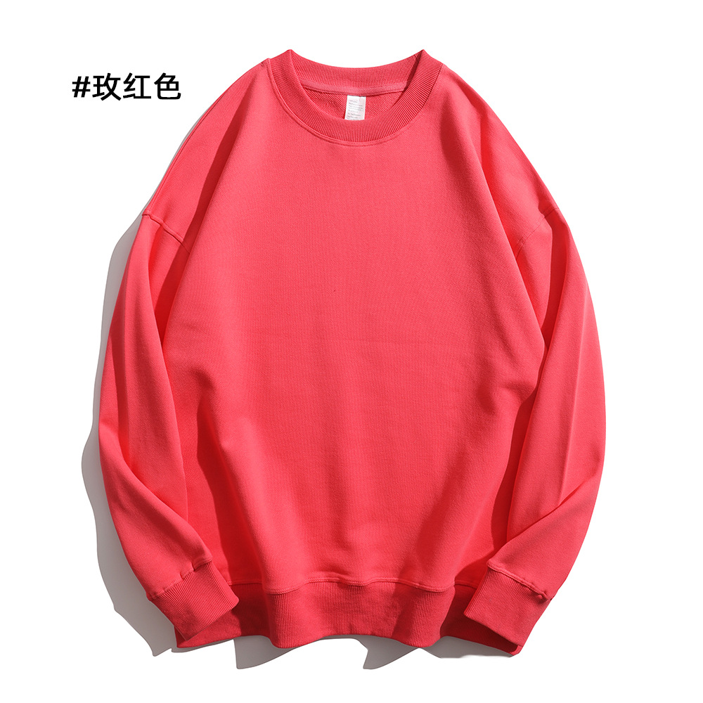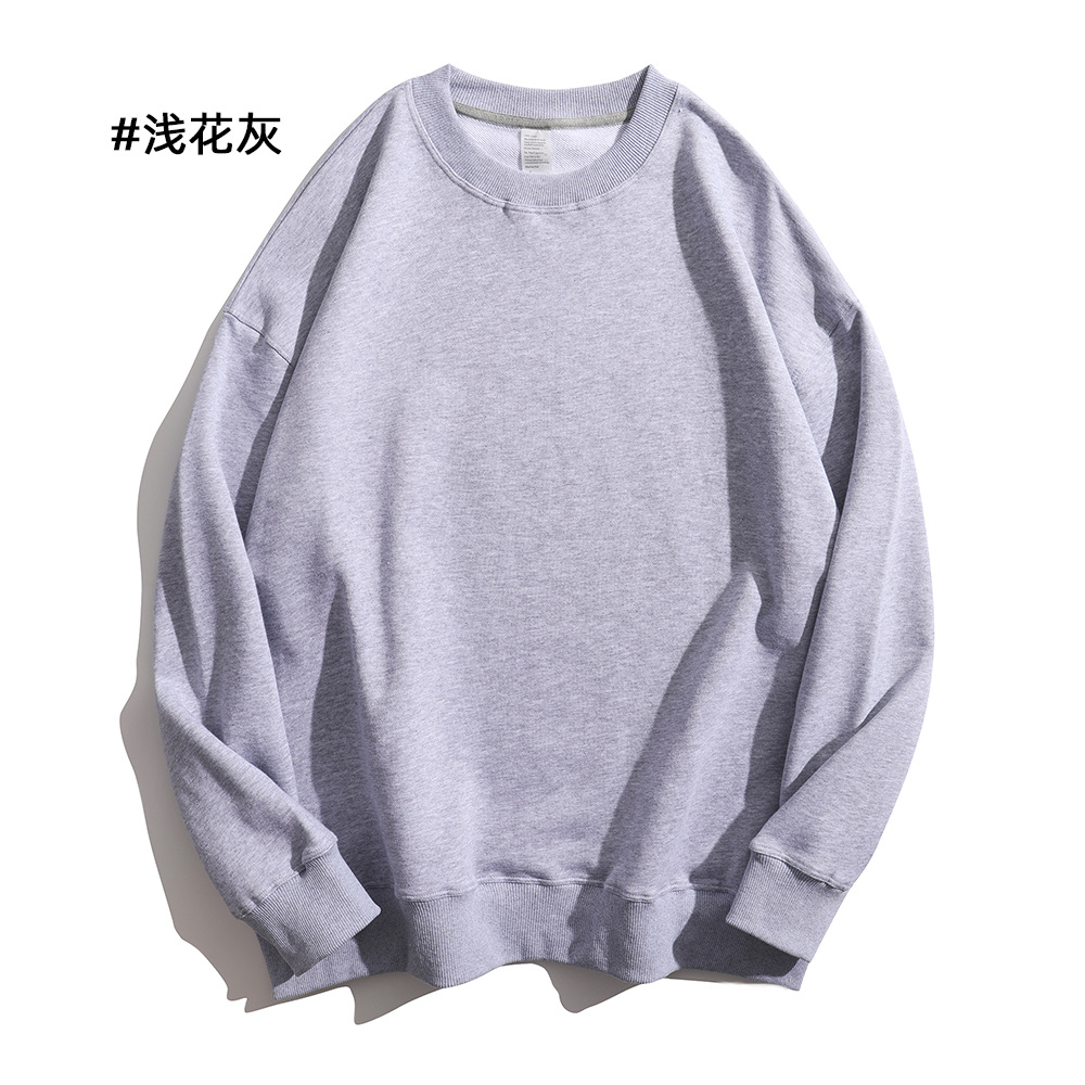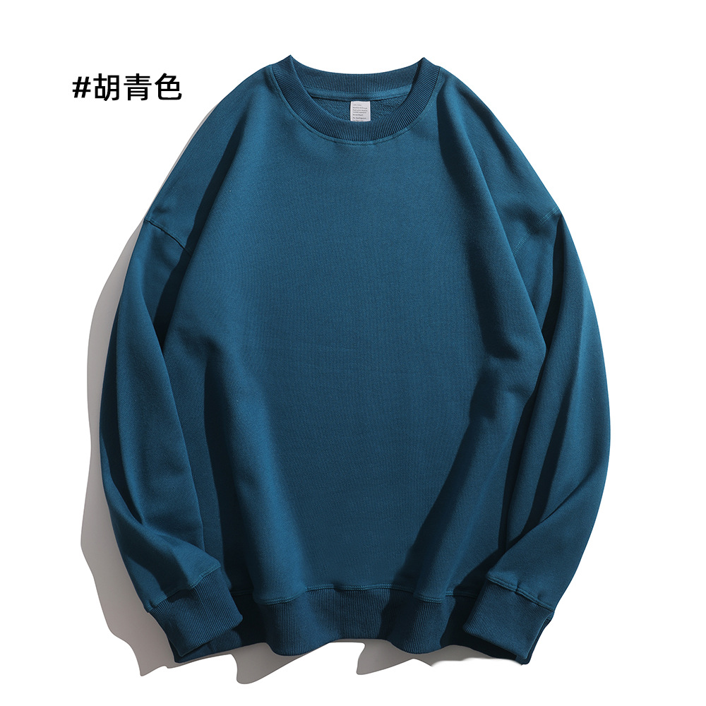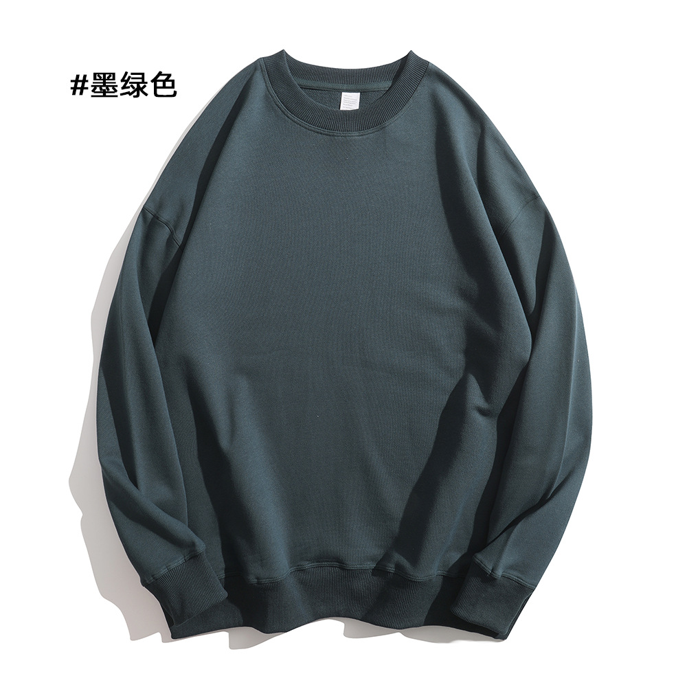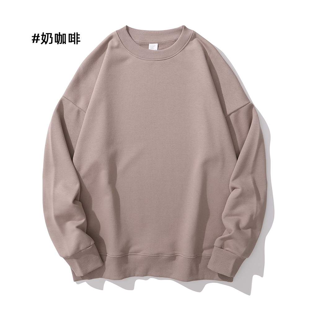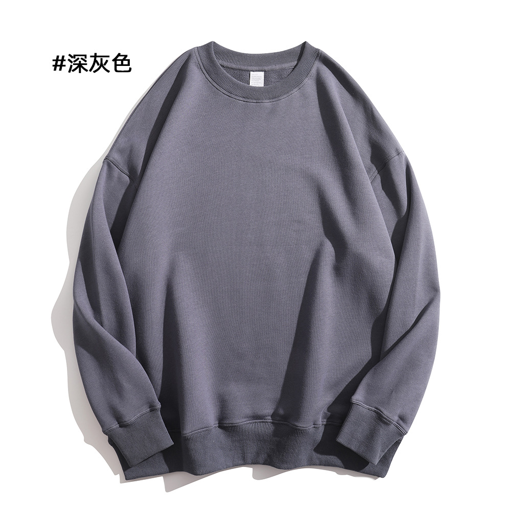 重磅圆领卫衣男女大毛圈落肩款380克纯色港风宽松套头卫衣外套