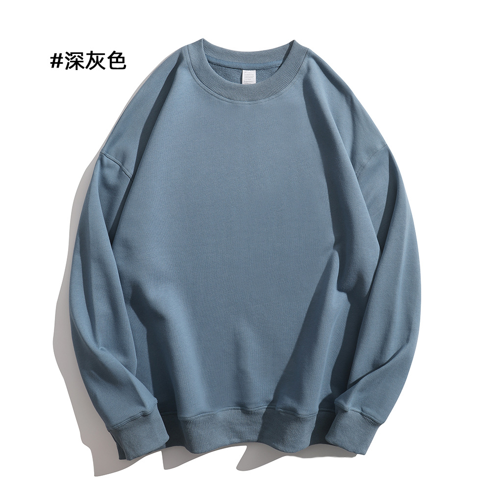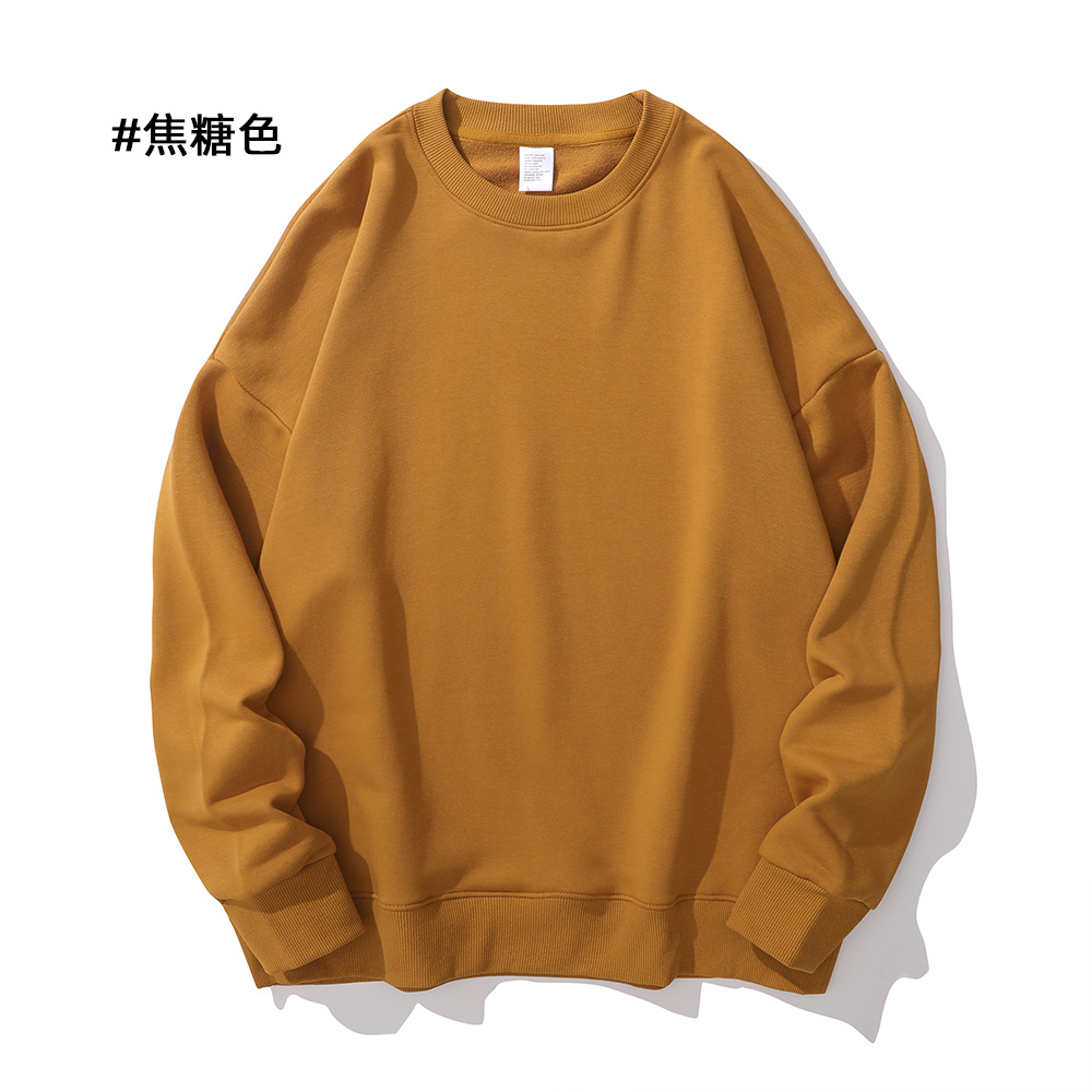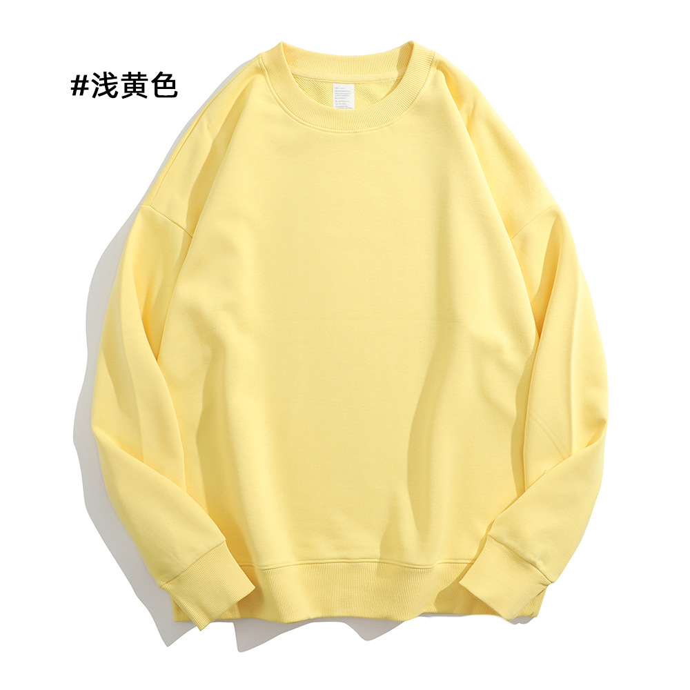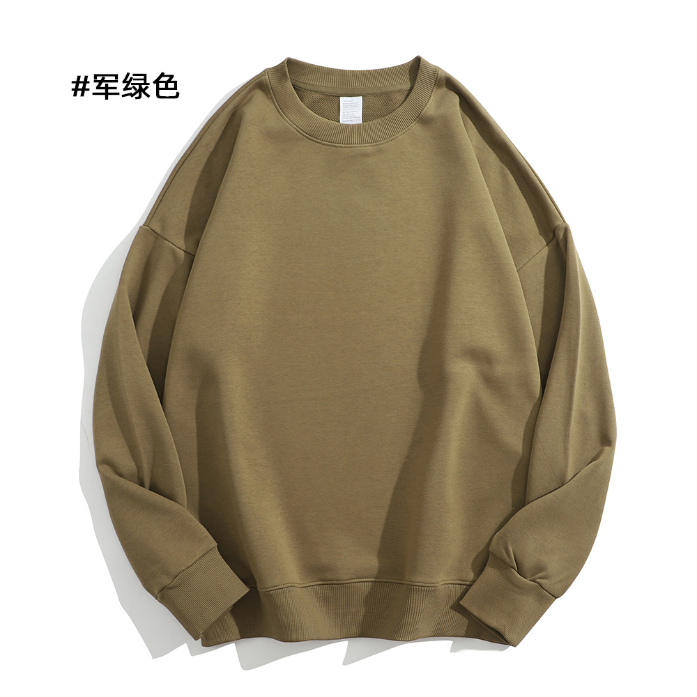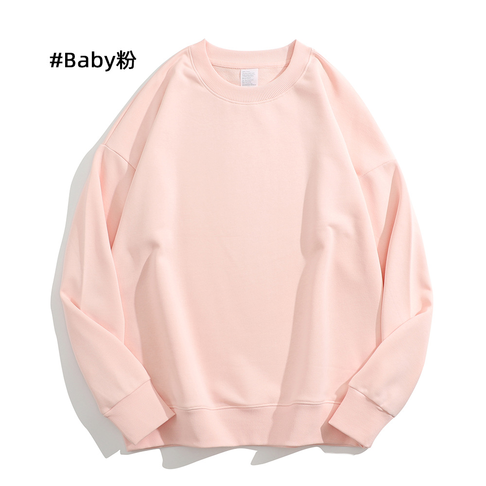 重磅圆领卫衣男女大毛圈落肩款380克纯色港风宽松套头卫衣外套