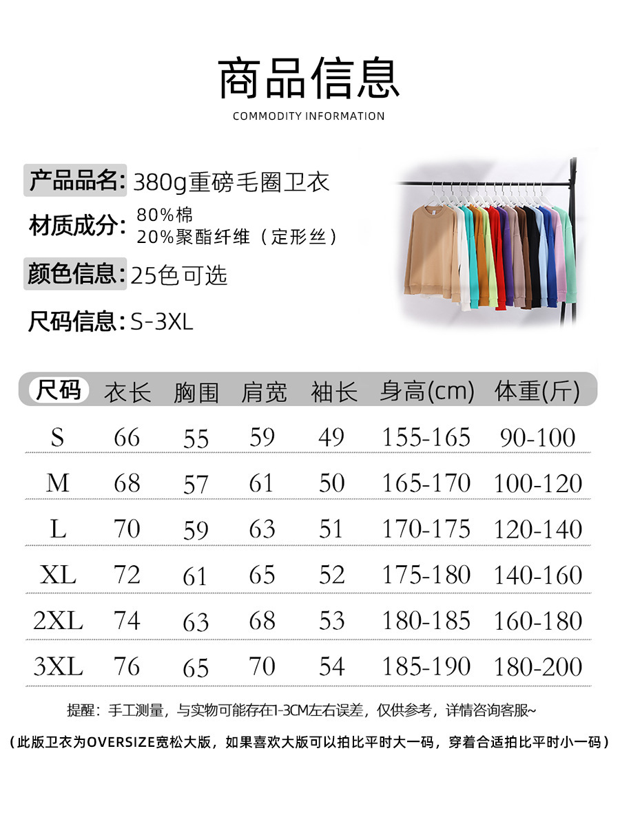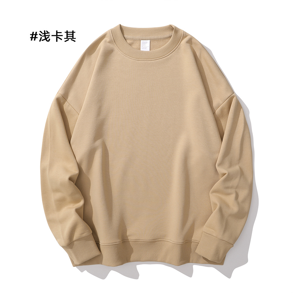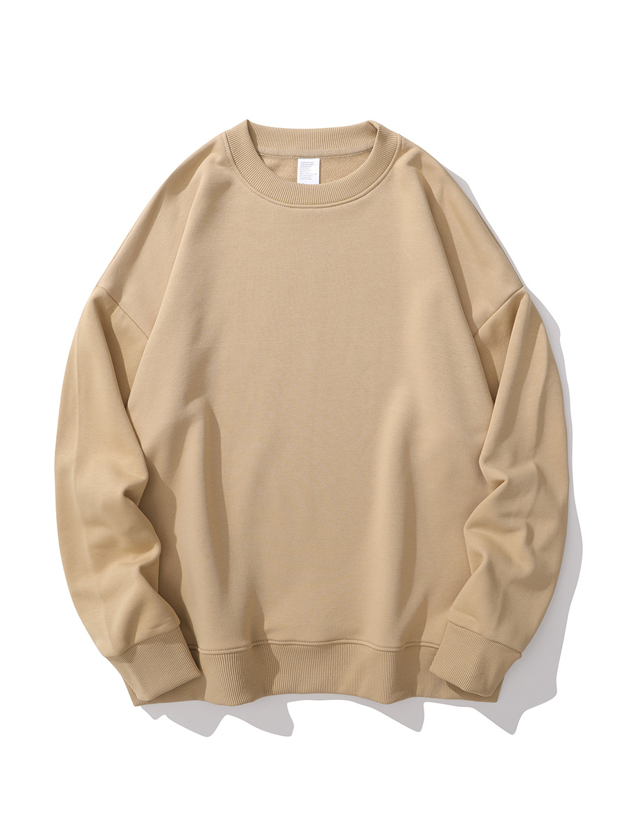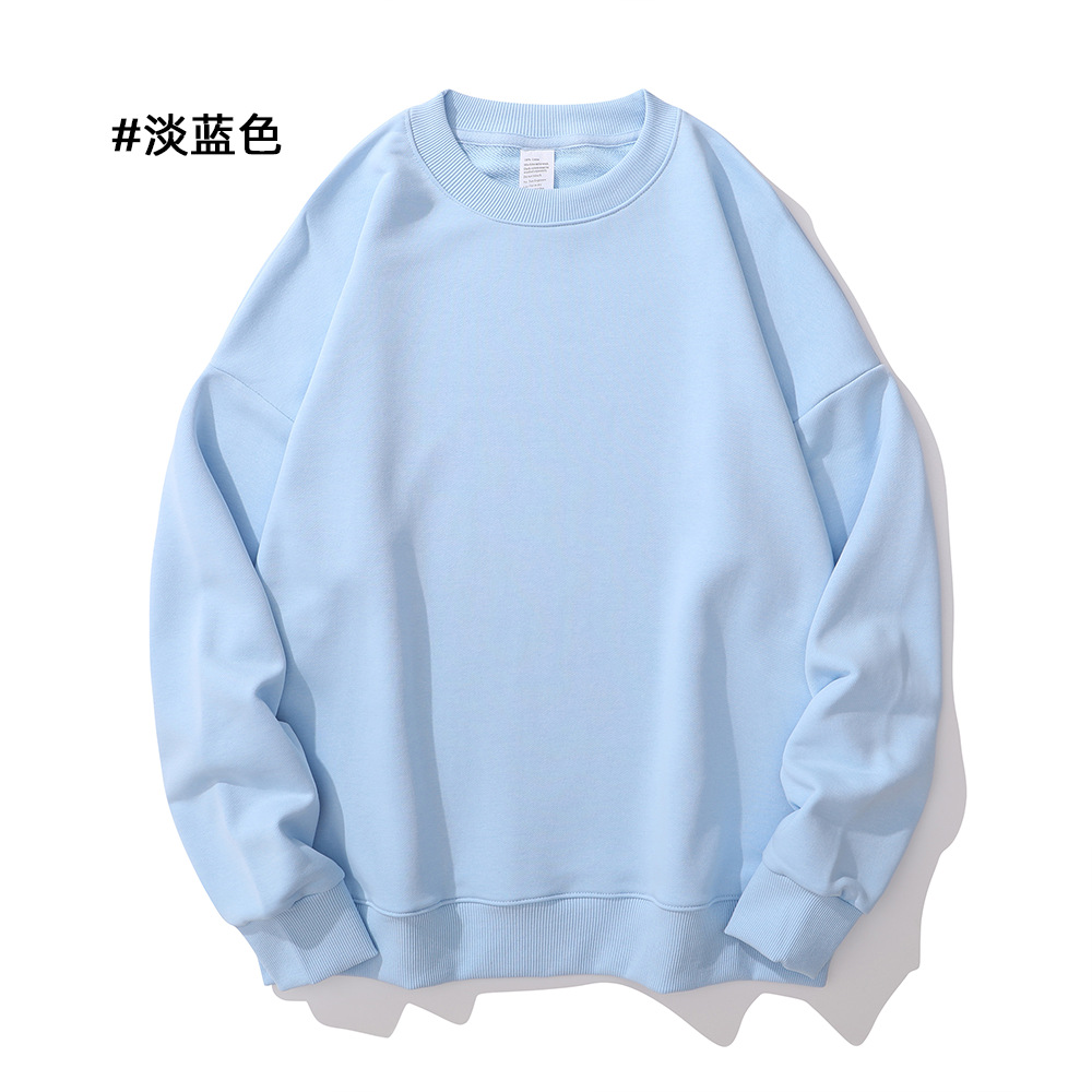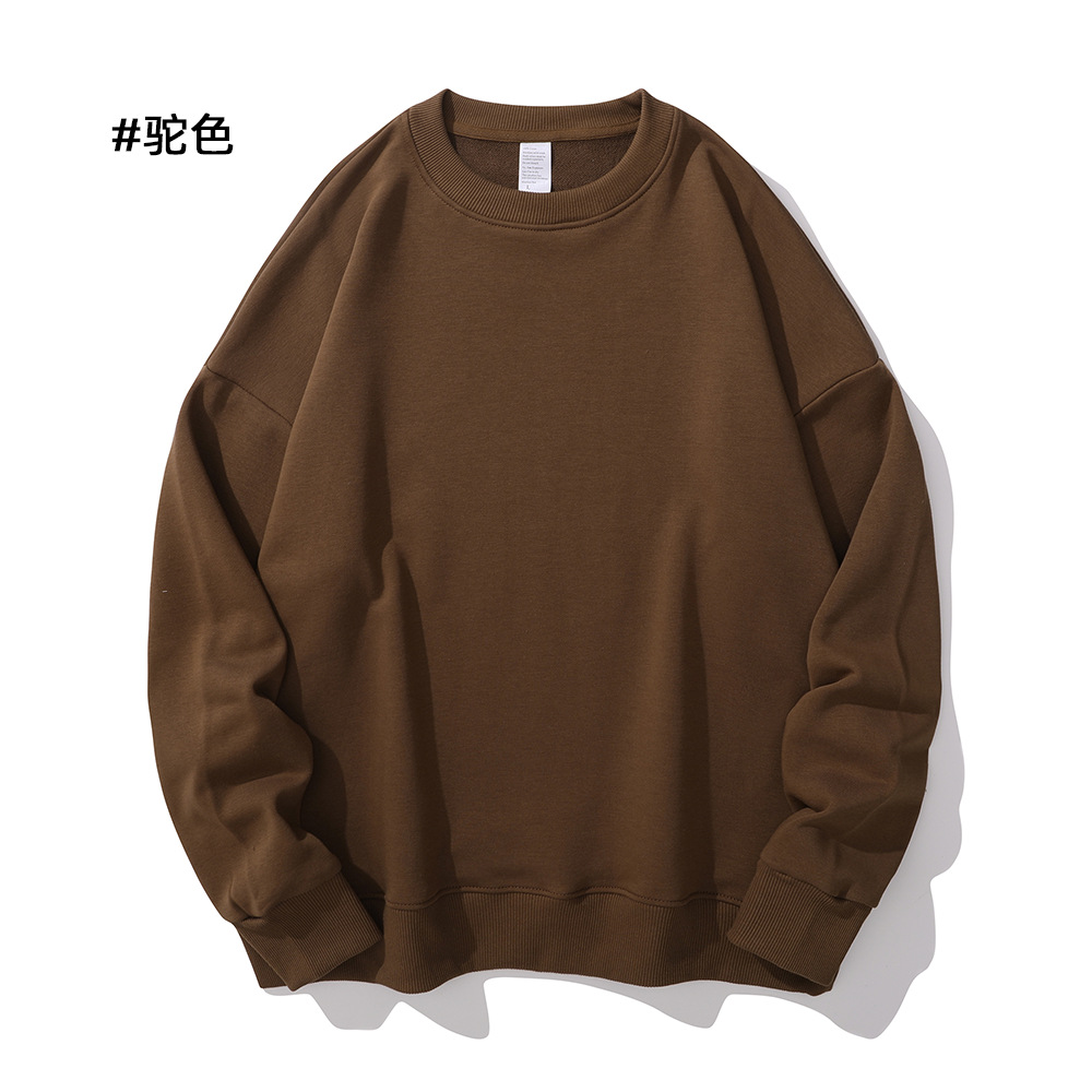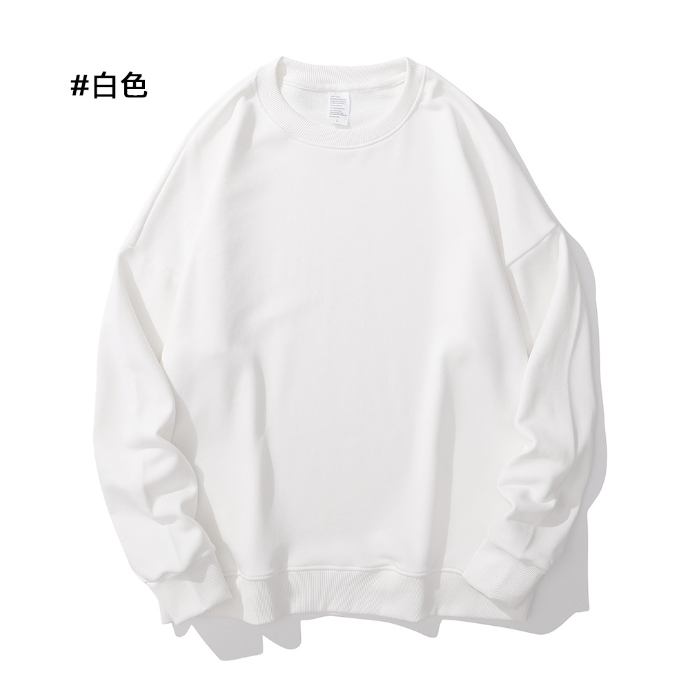 重磅圆领卫衣男女大毛圈落肩款380克纯色港风宽松套头卫衣外套