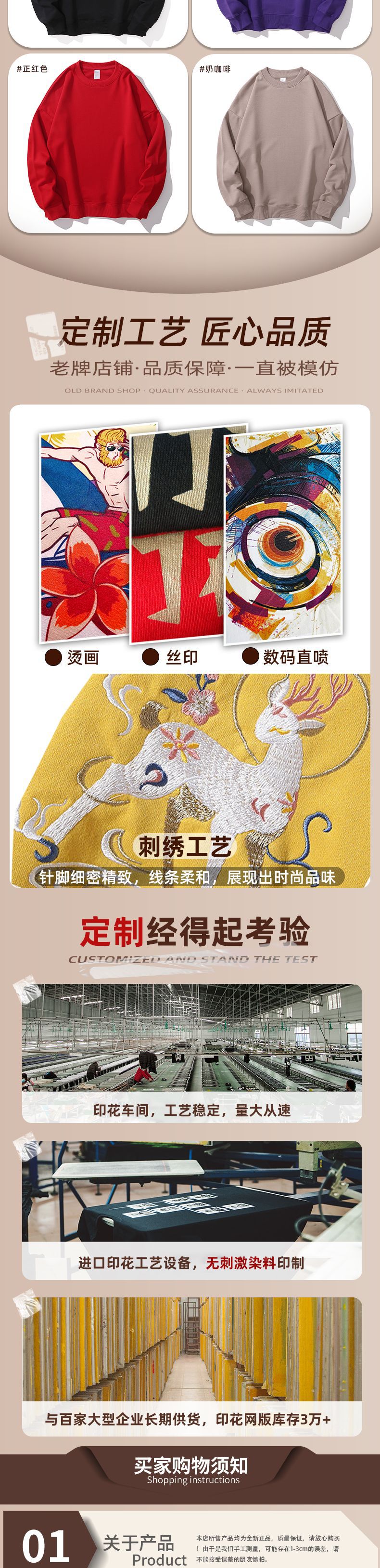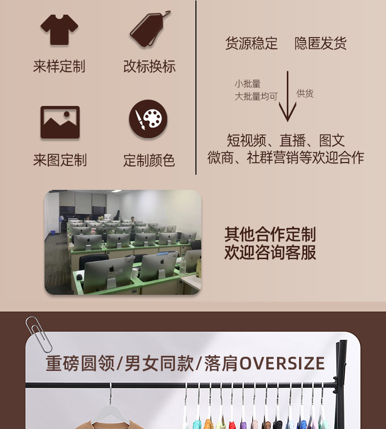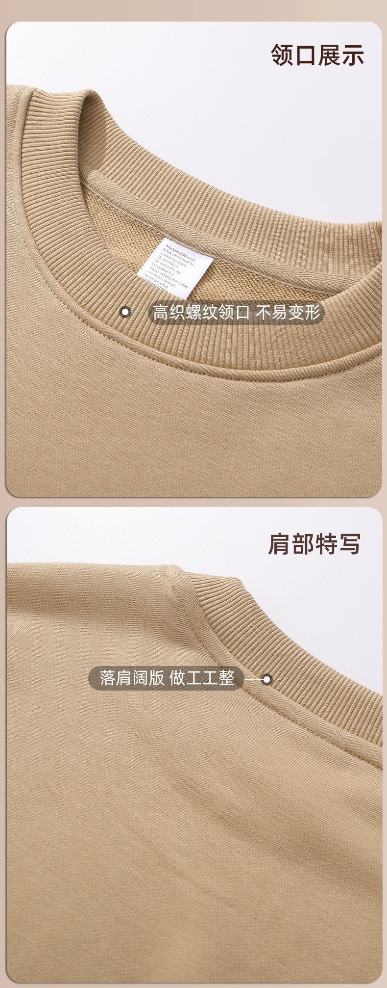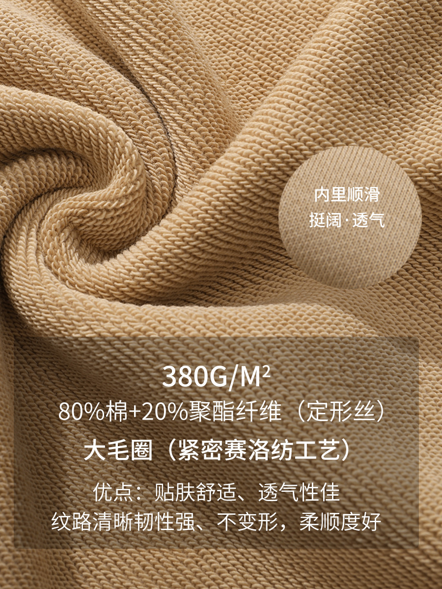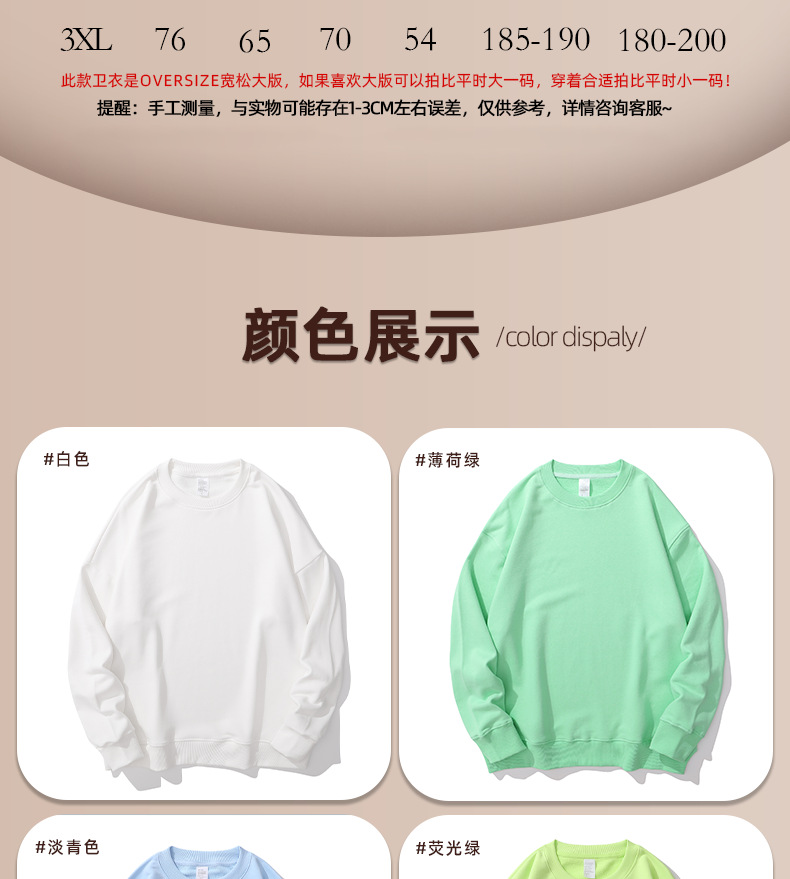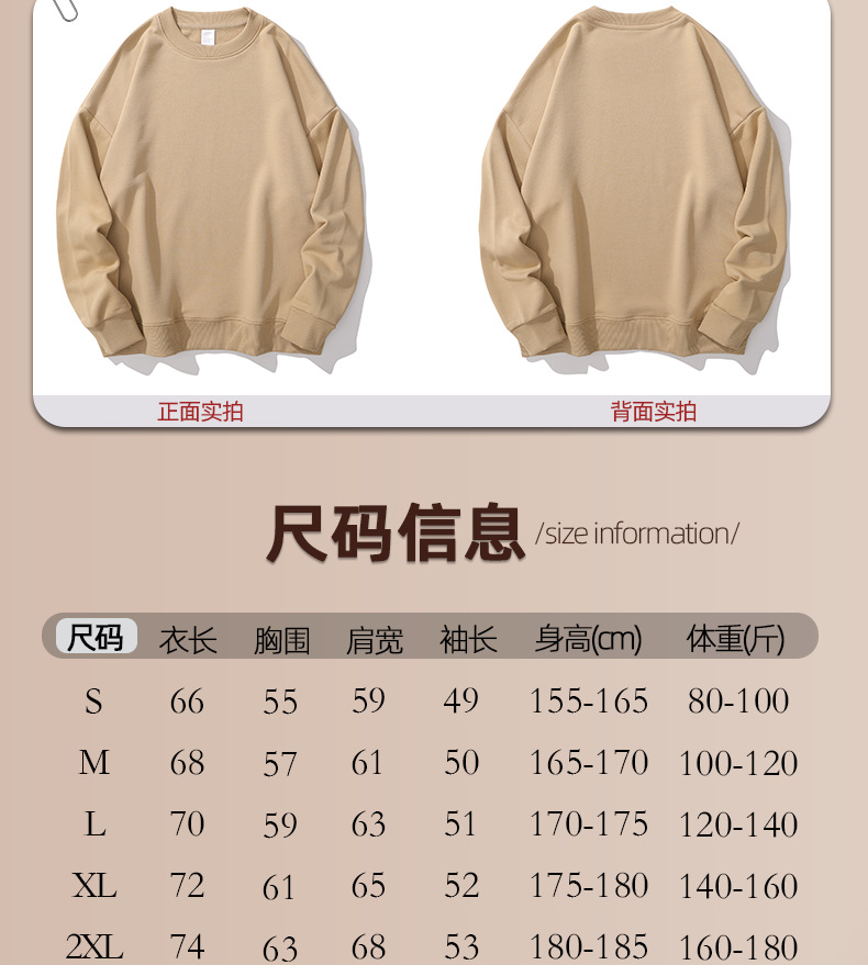 重磅圆领卫衣男女大毛圈落肩款380克纯色港风宽松套头卫衣外套
