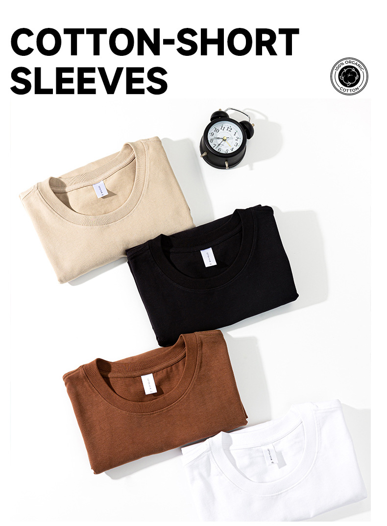 纯棉t恤200g精梳棉短袖男女款纯色短袖t恤圆领休闲宽松纯棉短袖