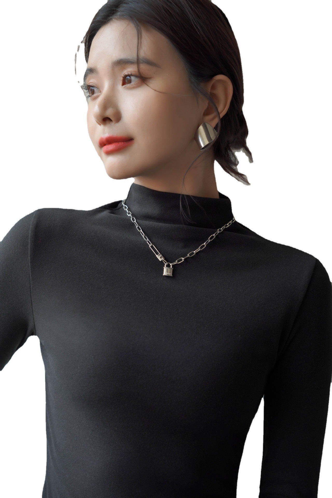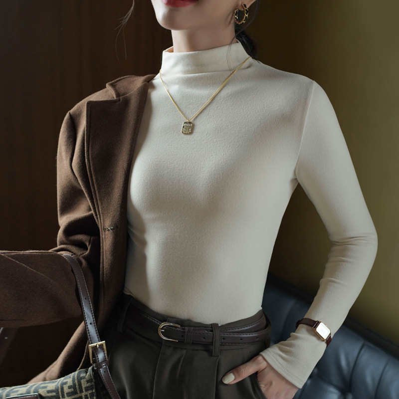 半高领中领德绒加绒打底衫女内搭秋冬修身纯色打底衣黑色紧身长袖