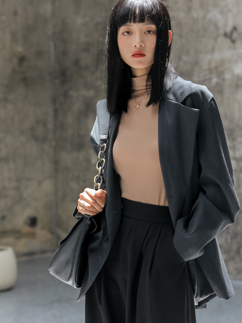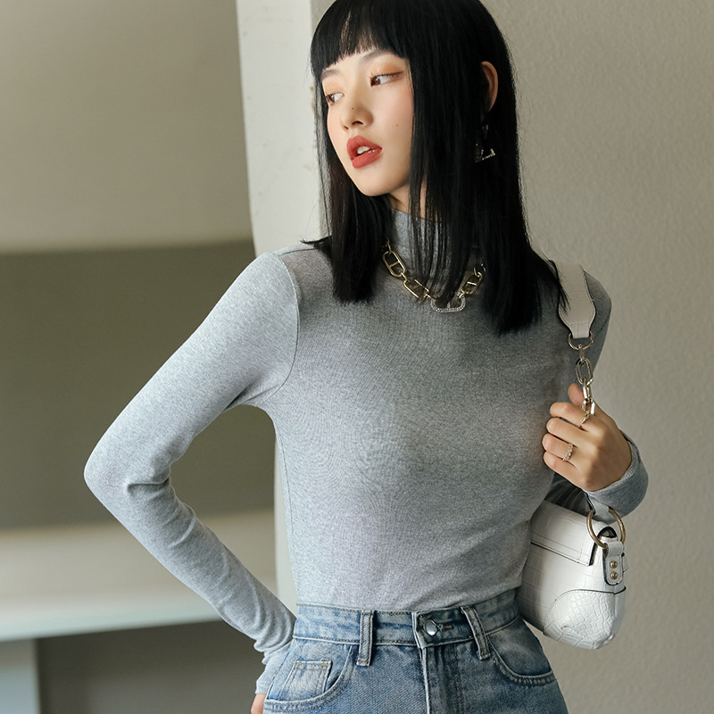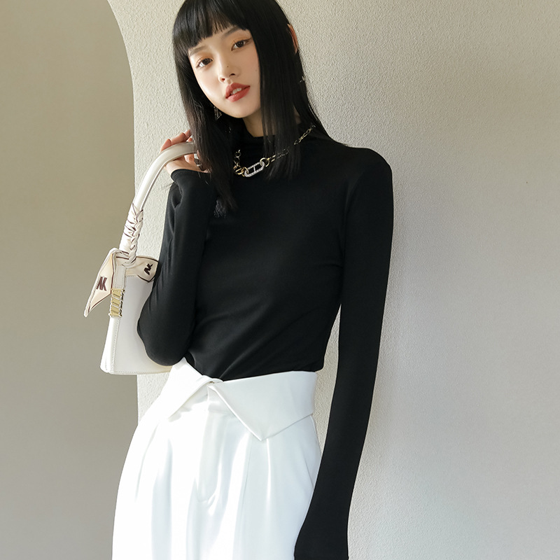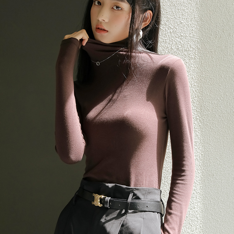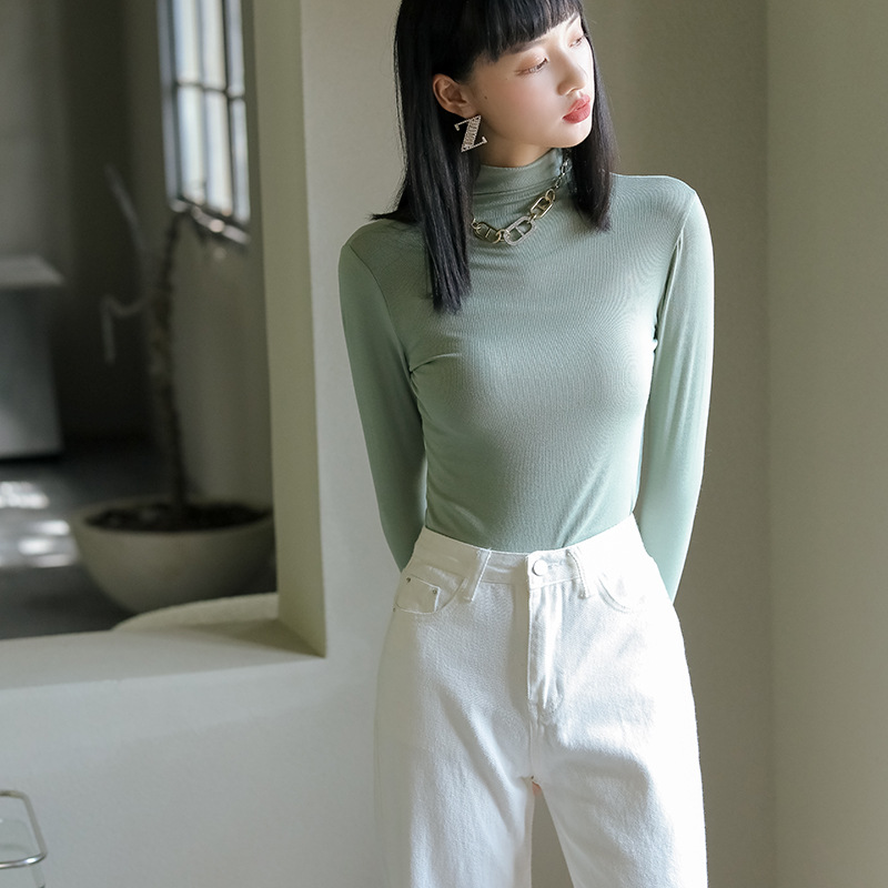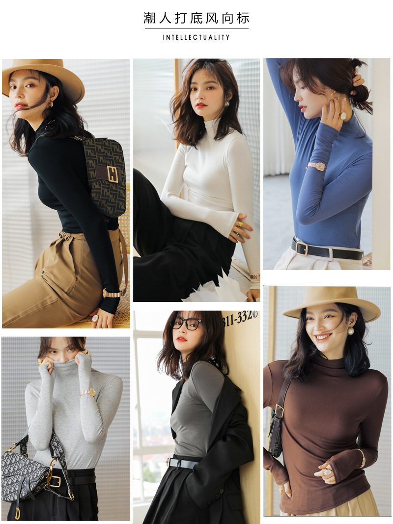 莫代尔棉修身半高领中领长袖打底衫女内搭春秋冬紧身纯色上衣t恤
