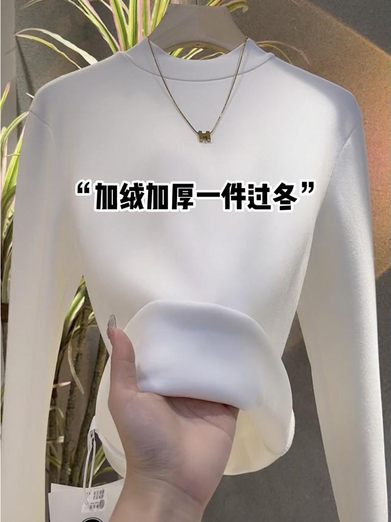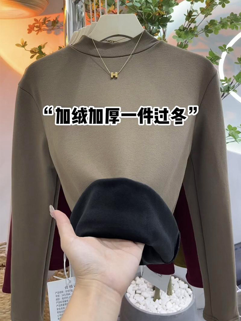 银狐绒加绒加厚莫代尔半高领打底衫女士内搭长袖紧身秋冬中领上衣