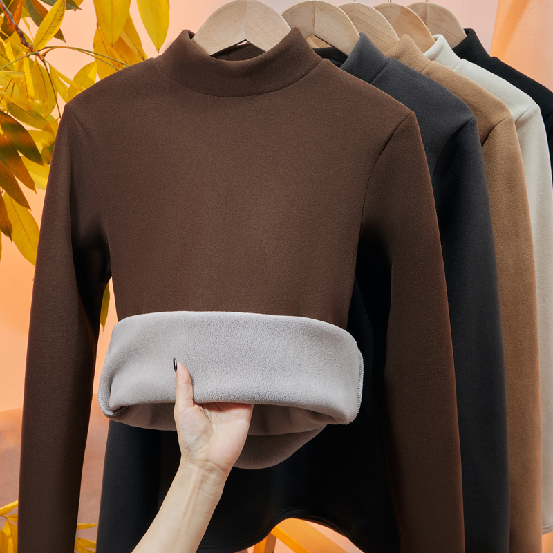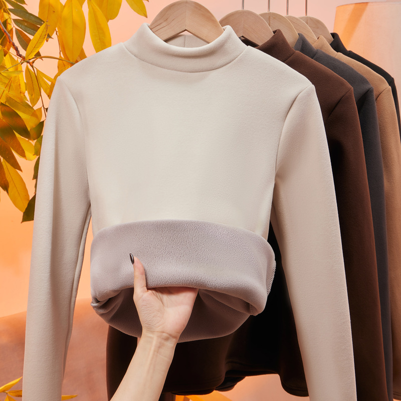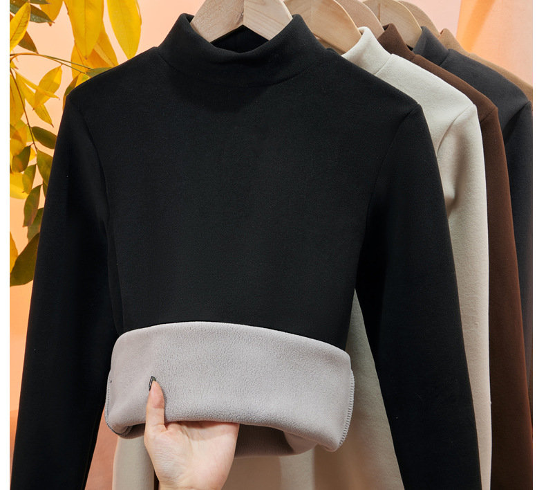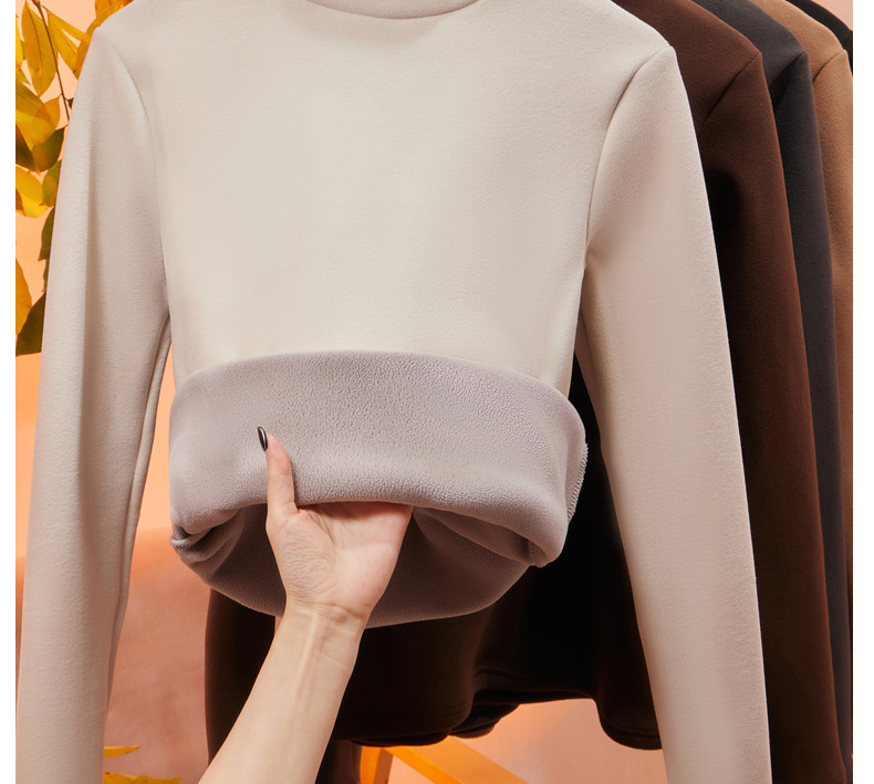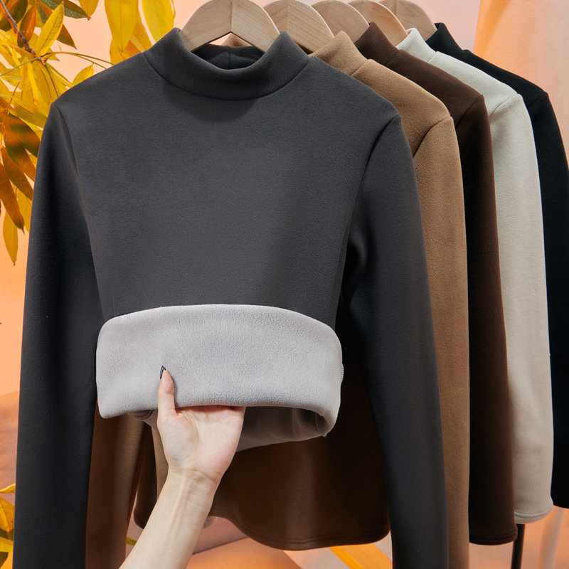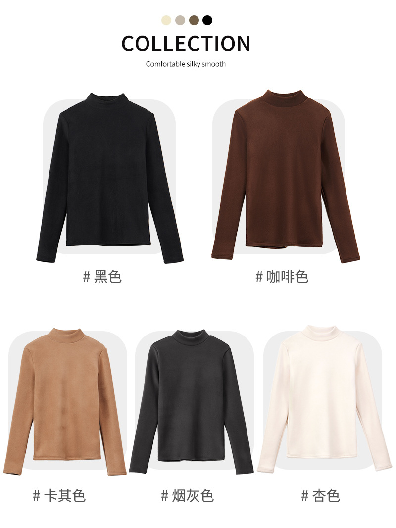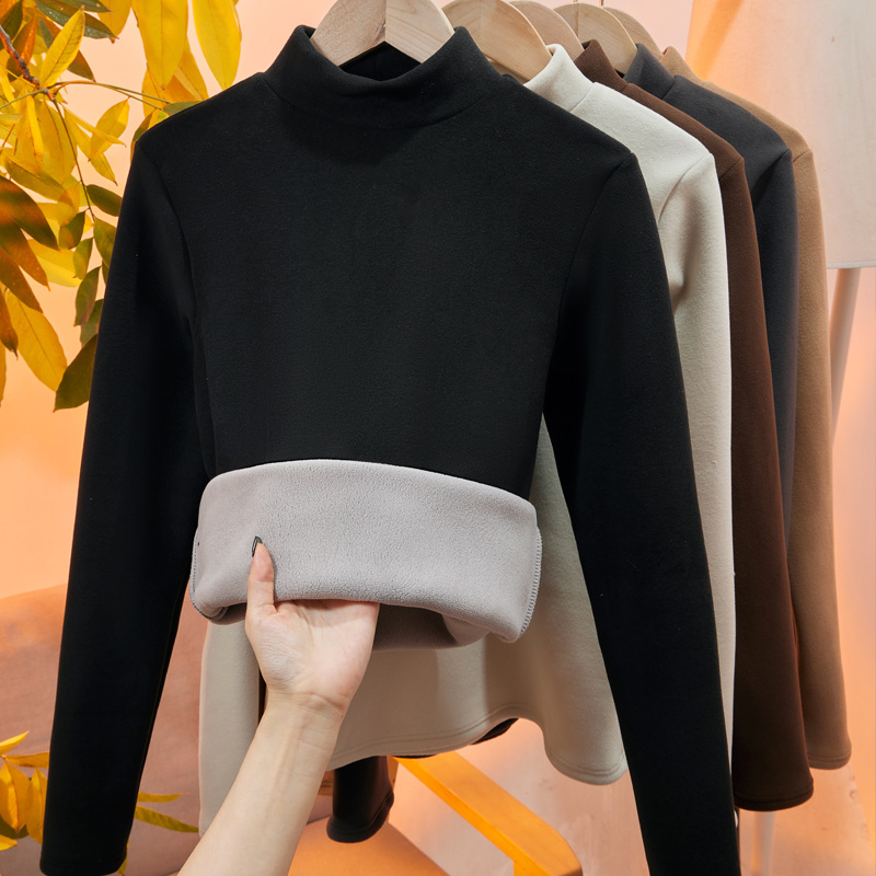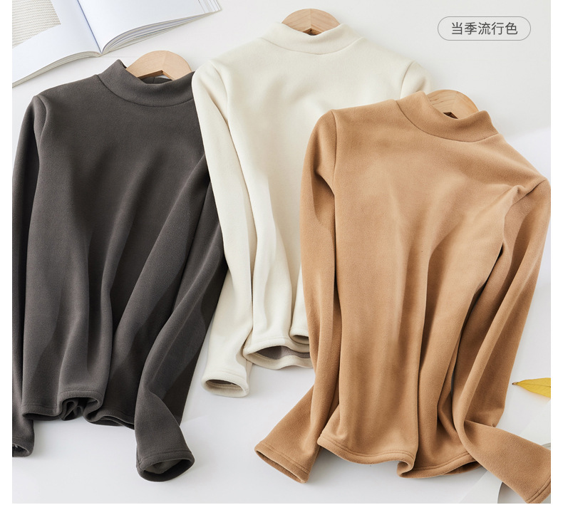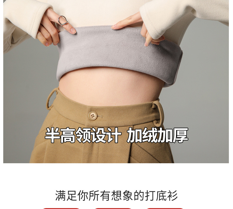 冬季加绒加厚德绒保暖半高领打底衫女内搭修身中领长袖高级感上衣
