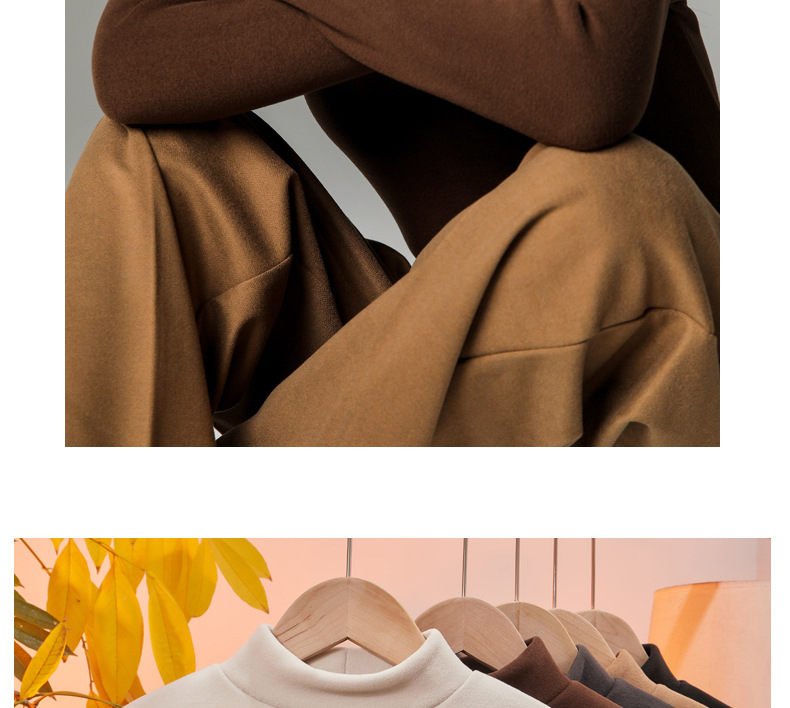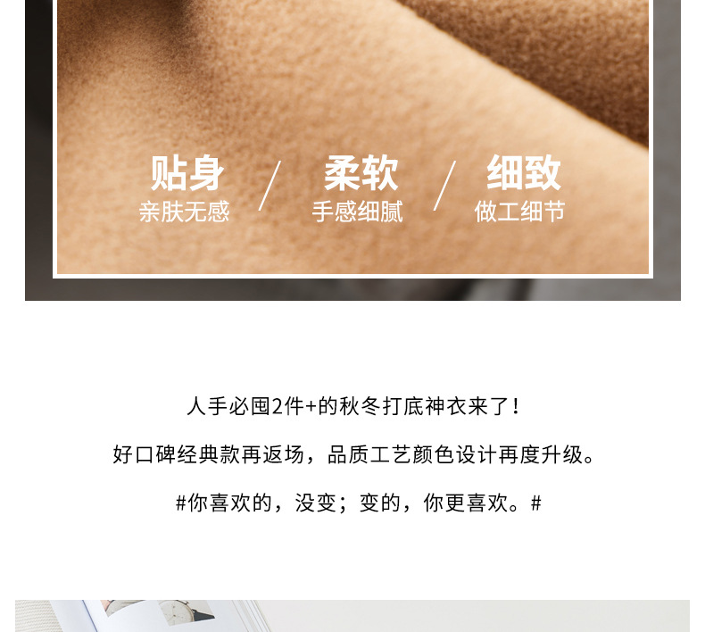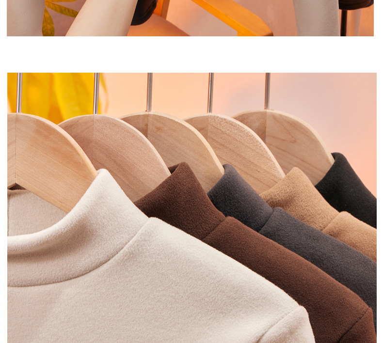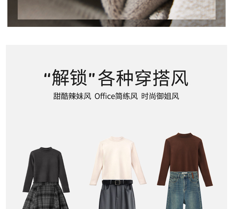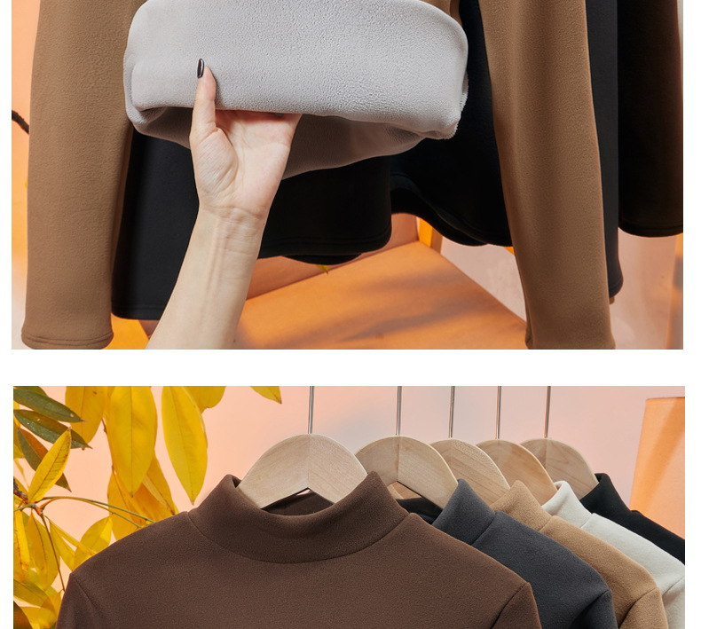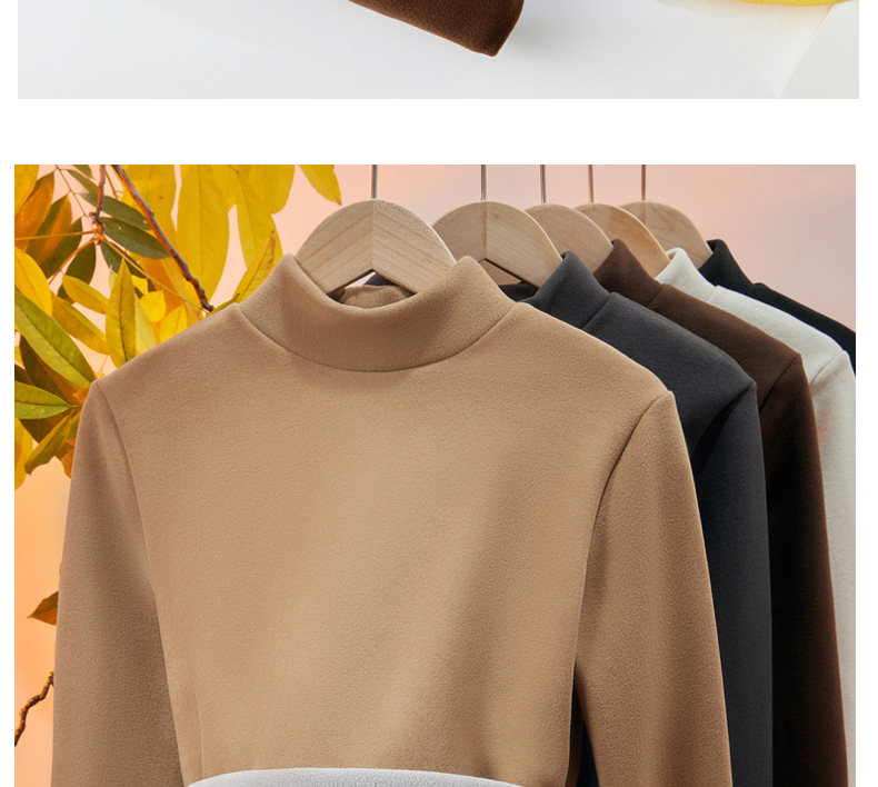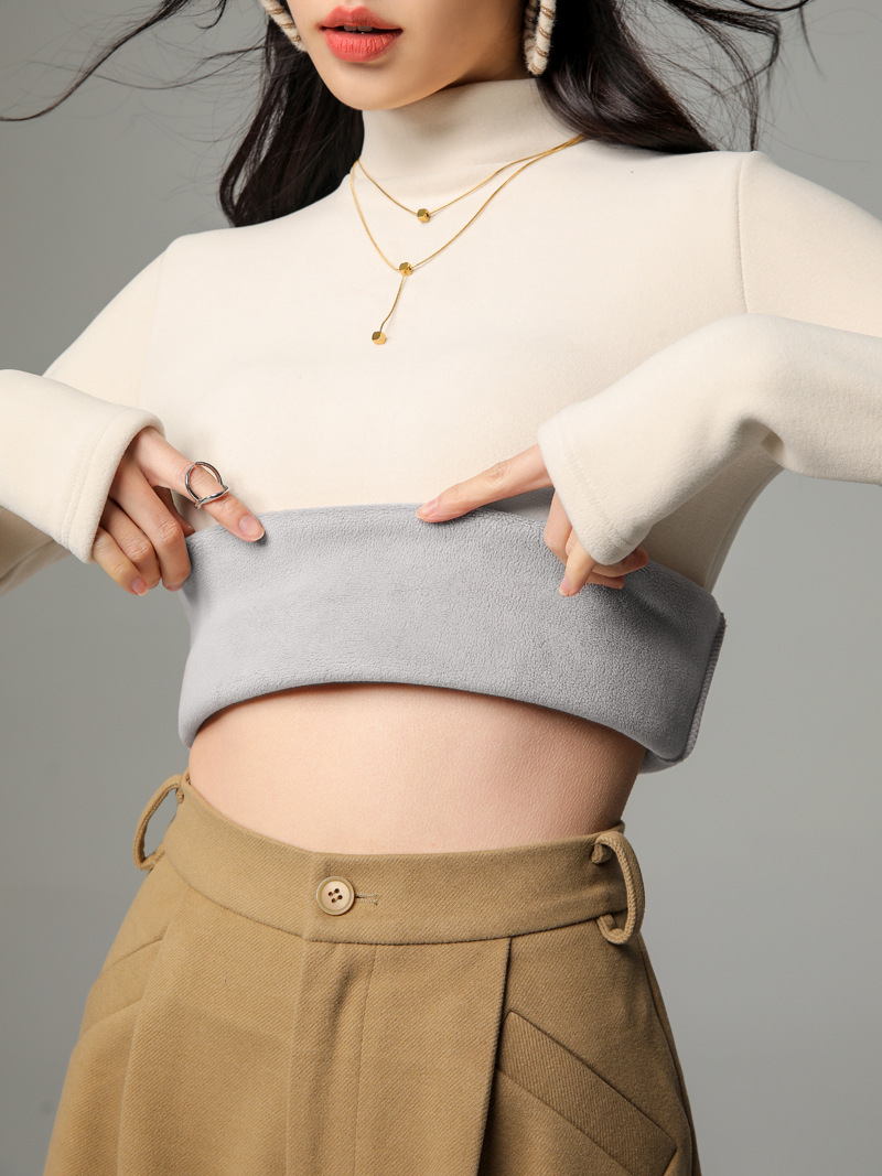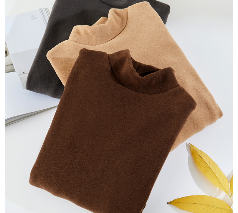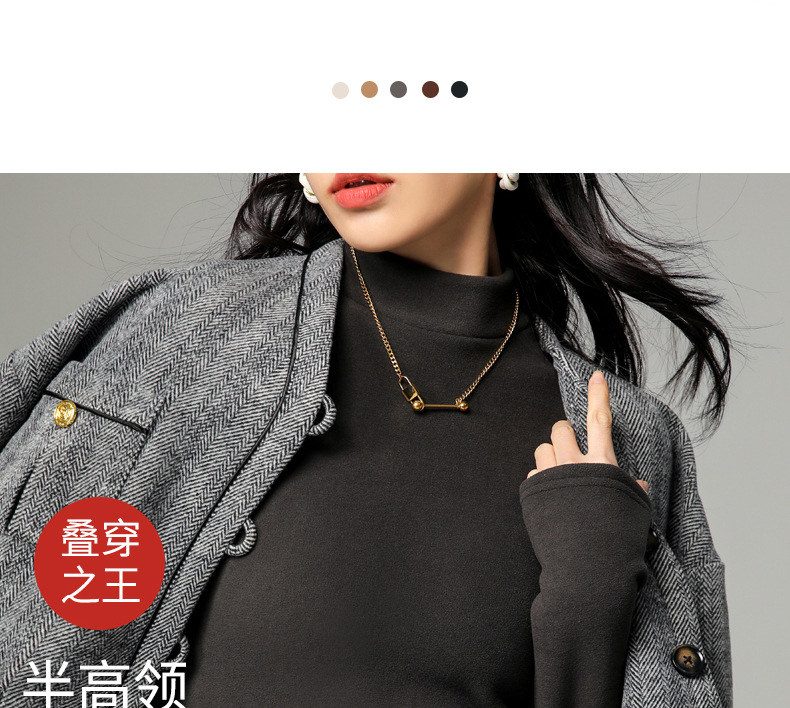 冬季加绒加厚德绒保暖半高领打底衫女内搭修身中领长袖高级感上衣