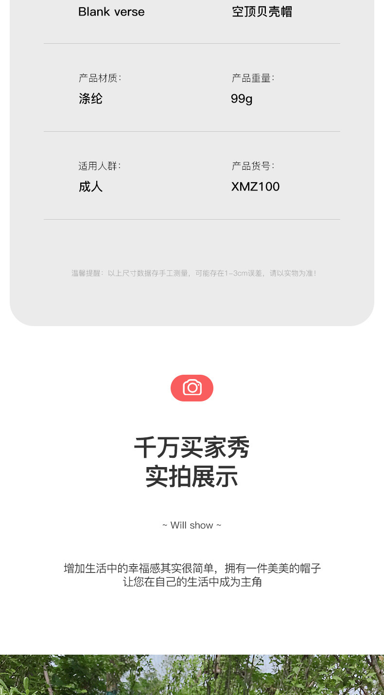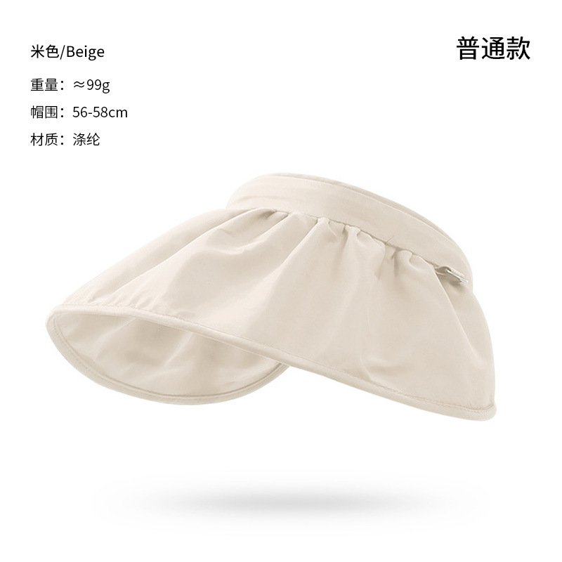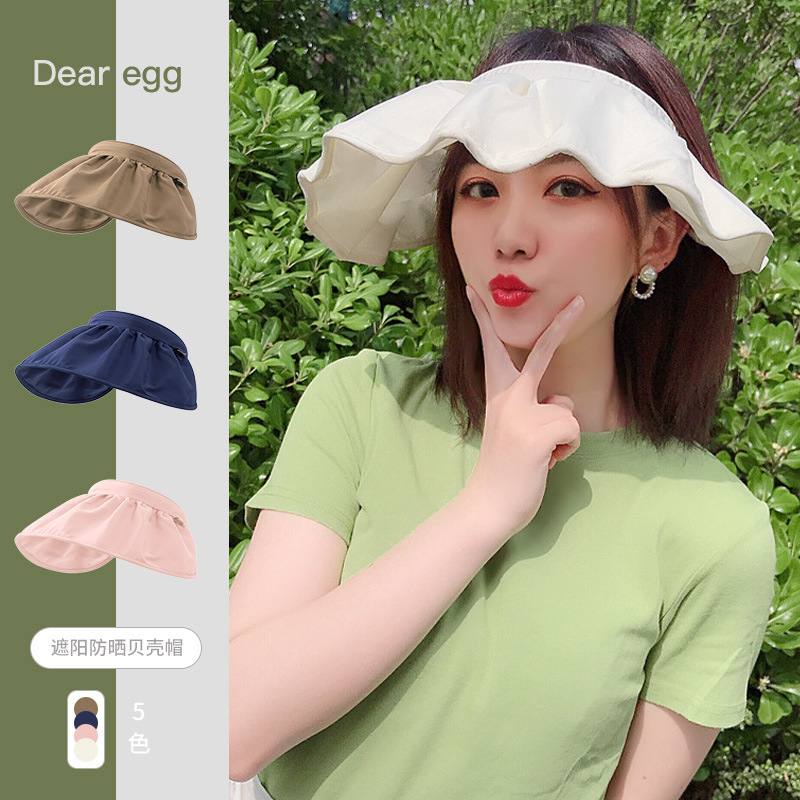 2024春夏季遮阳防晒纯色涤纶空顶帽子女成人户外跑步大檐贝壳帽子
