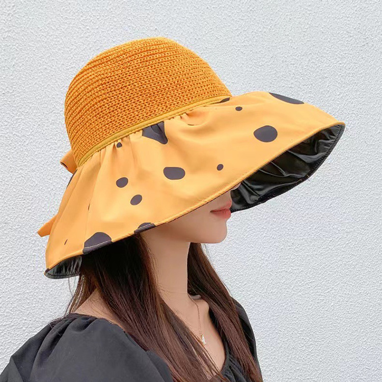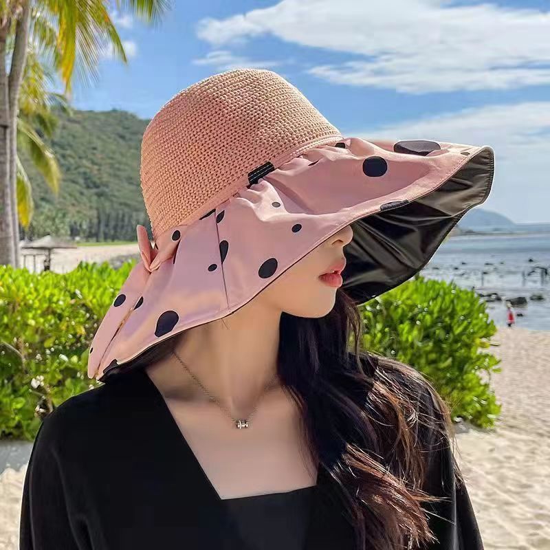 渔夫帽女夏季黑胶防晒防紫外线大帽檐镂空波点遮脸太阳帽遮阳帽子
