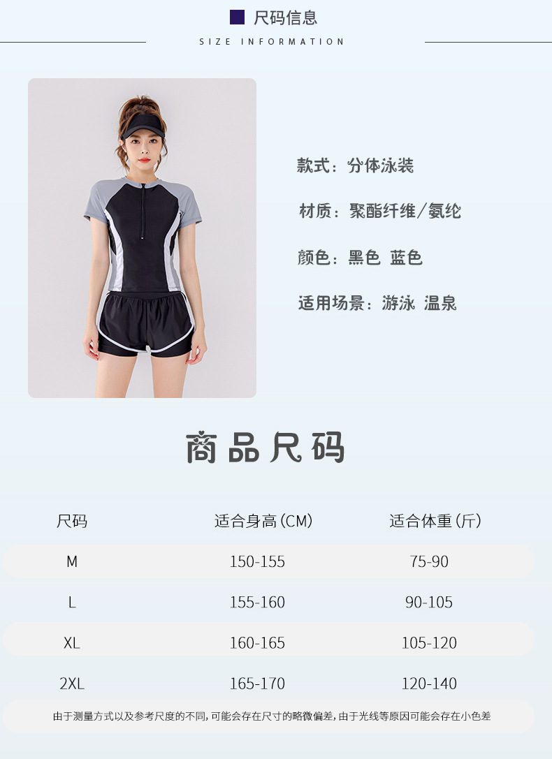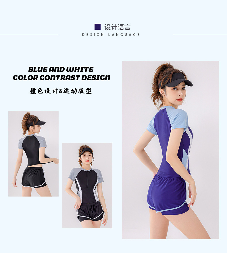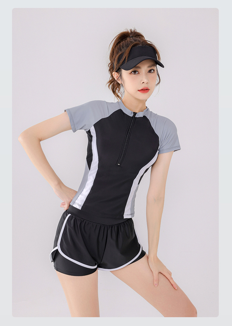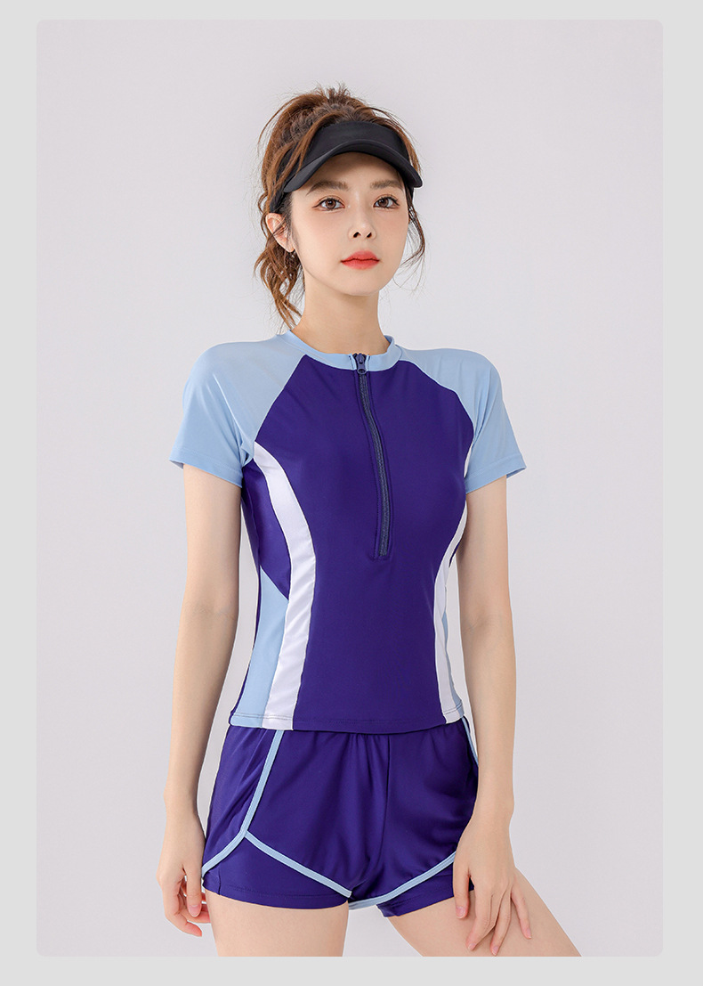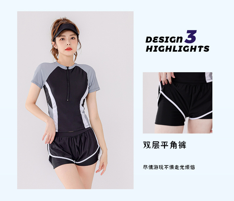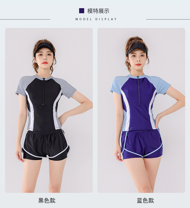 分体游泳衣女运动保守遮肚显瘦短袖平角学生时尚新款批发温泉泳装