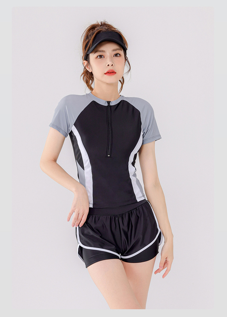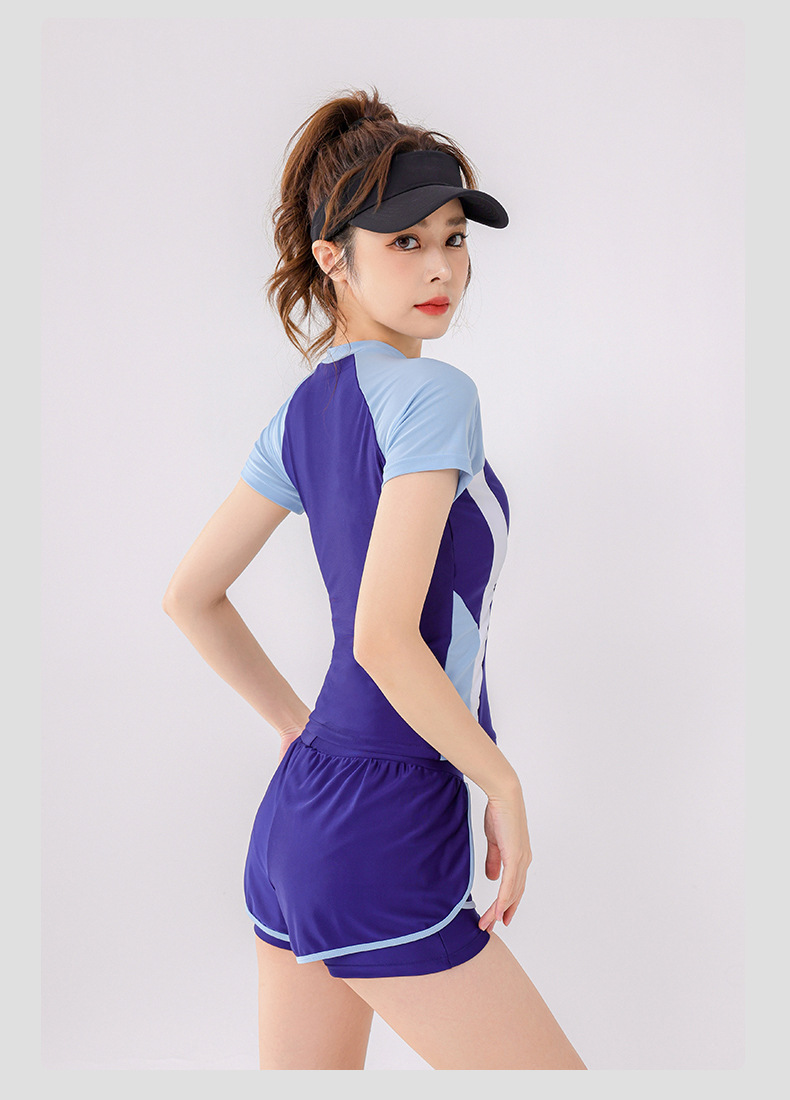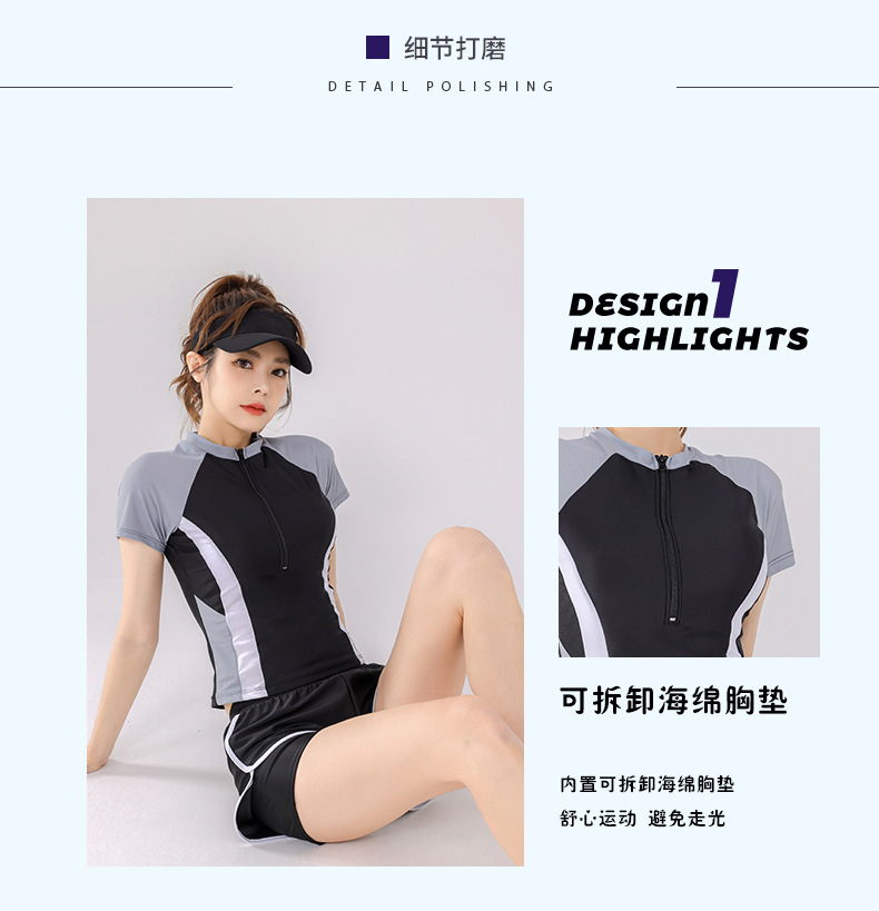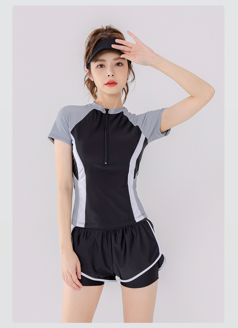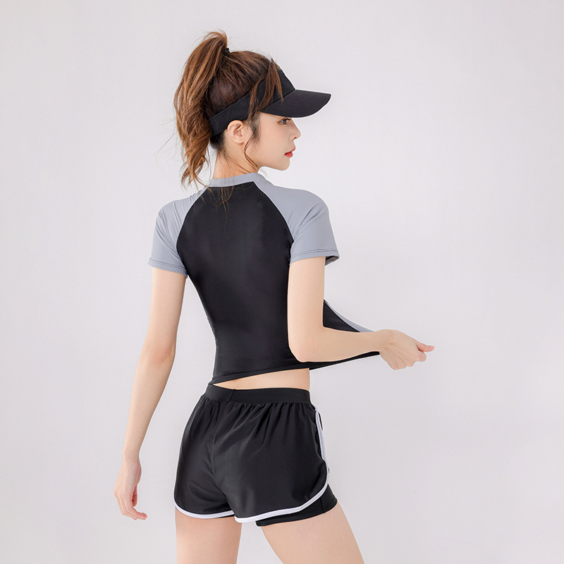 分体游泳衣女运动保守遮肚显瘦短袖平角学生时尚新款批发温泉泳装