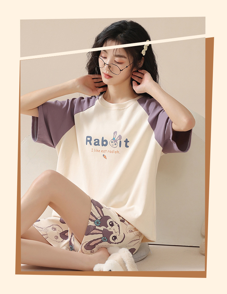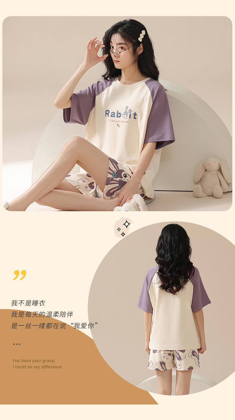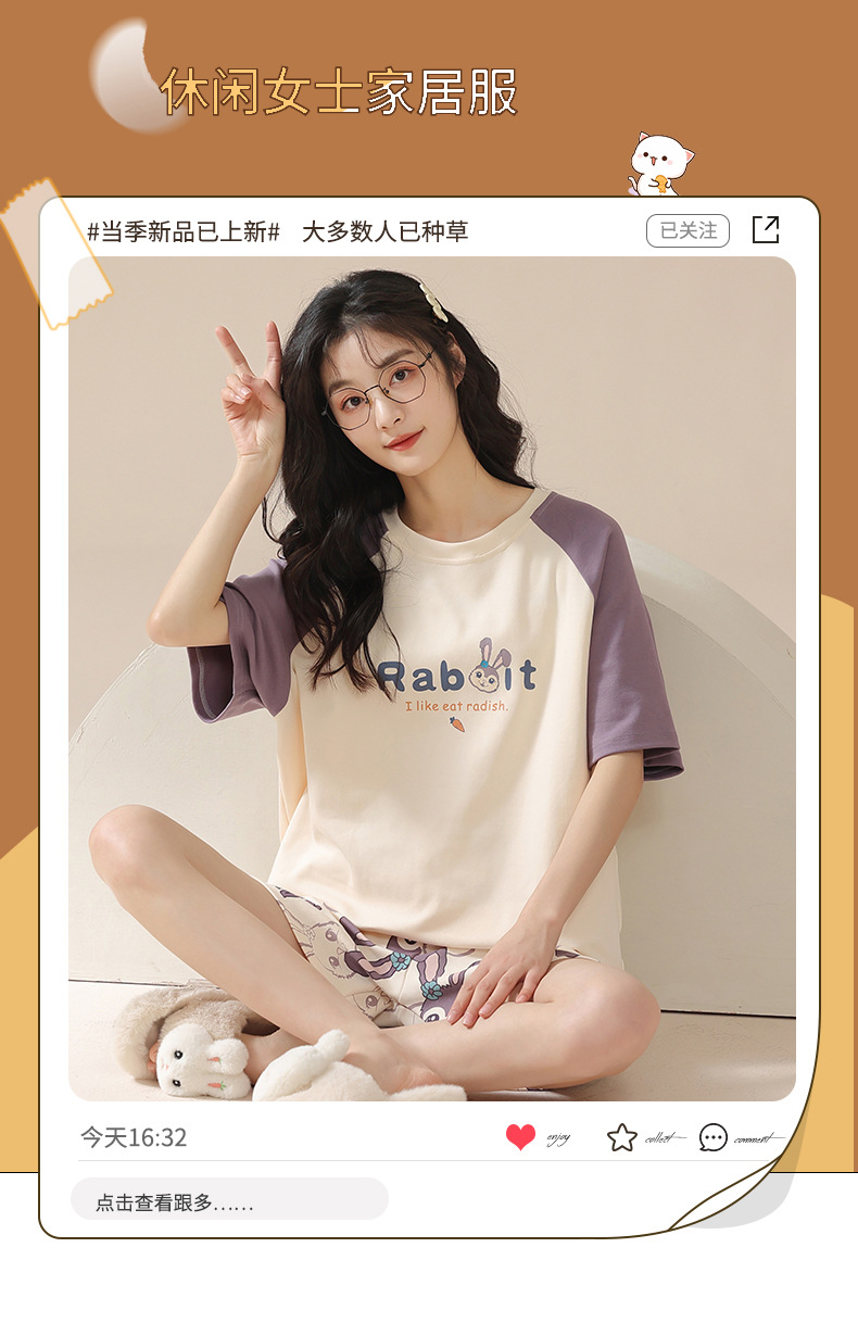【100%棉】夏季纯棉睡衣女士薄款短袖短裤甜美卡通休闲套装家居服