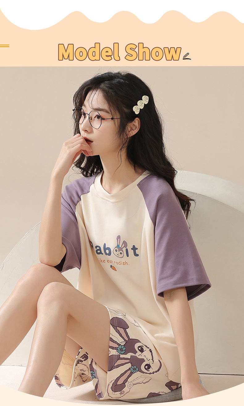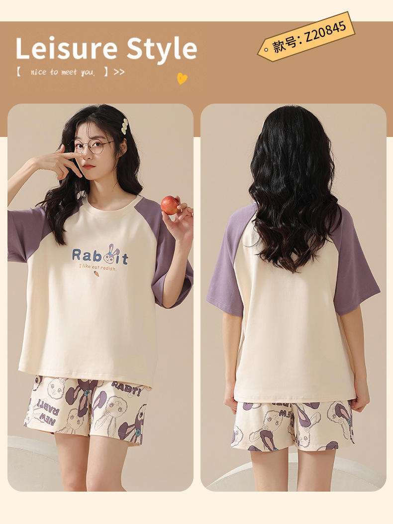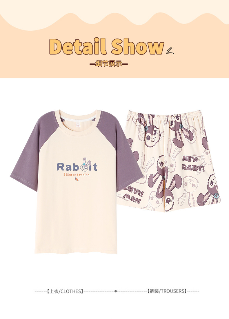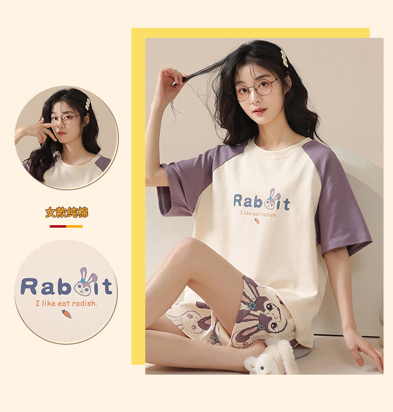 【100%棉】夏季纯棉睡衣女士薄款短袖短裤甜美卡通休闲套装家居服