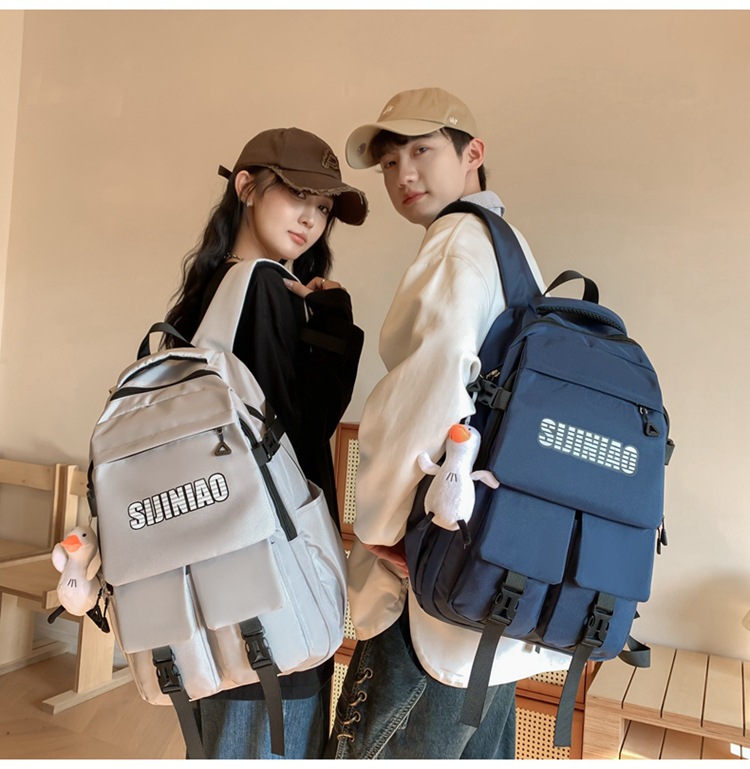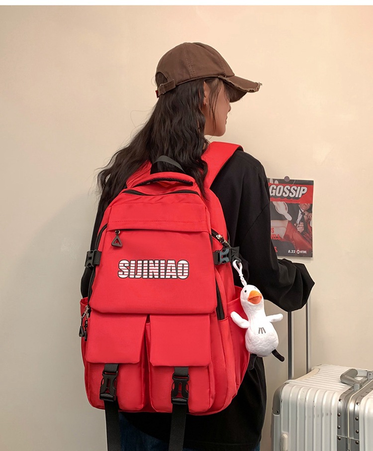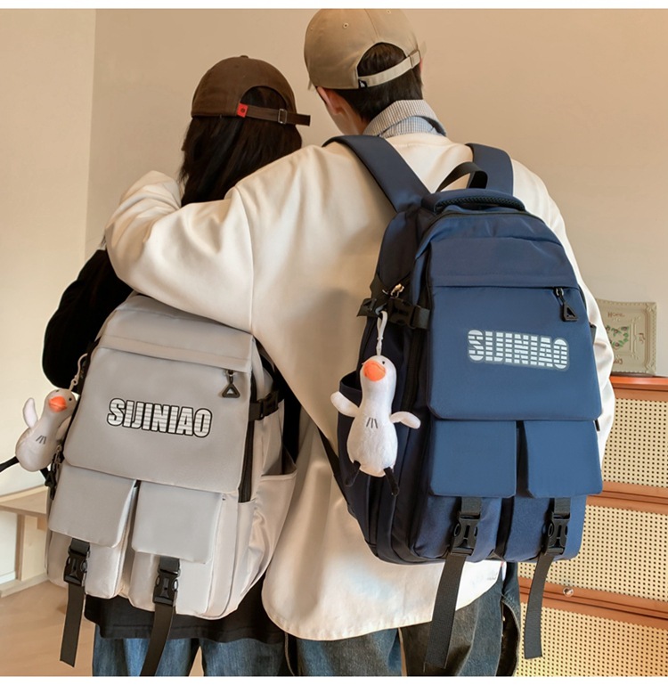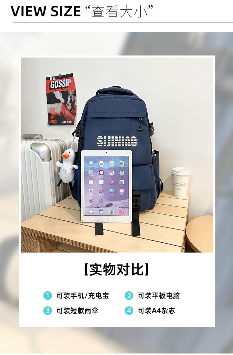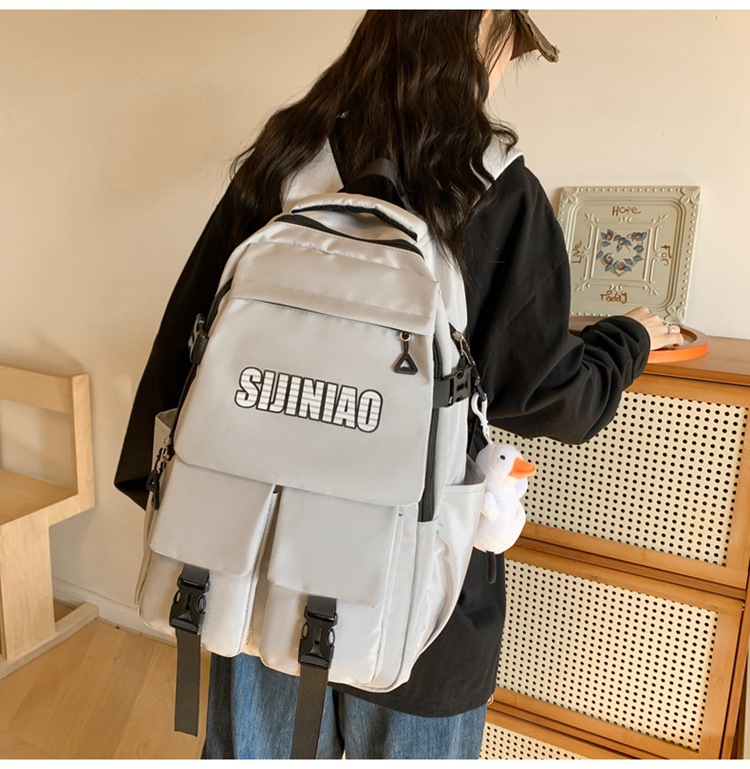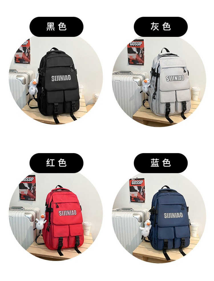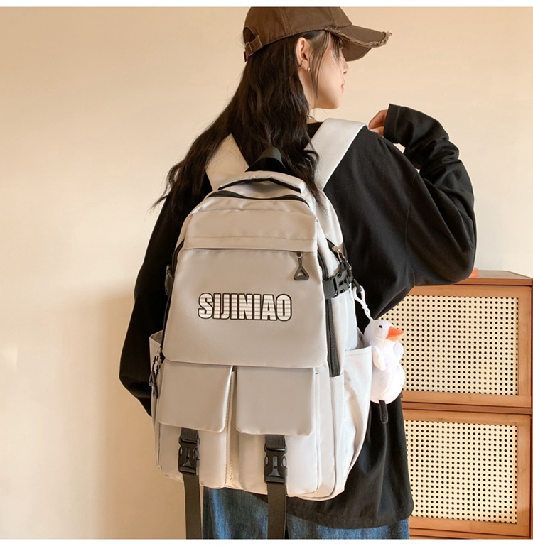 2024新款潮流休闲双肩包时尚女生纯色简约大学生书包