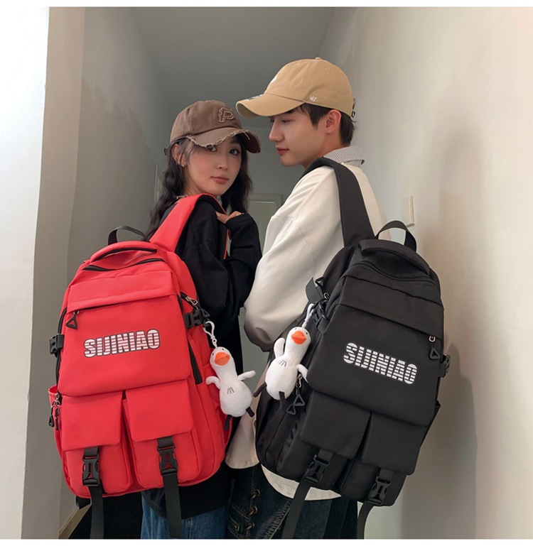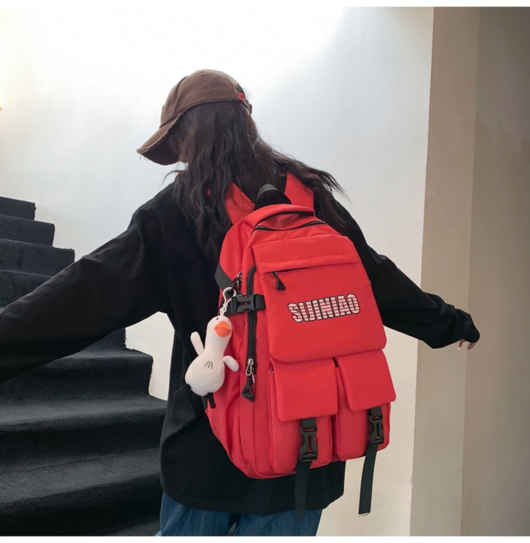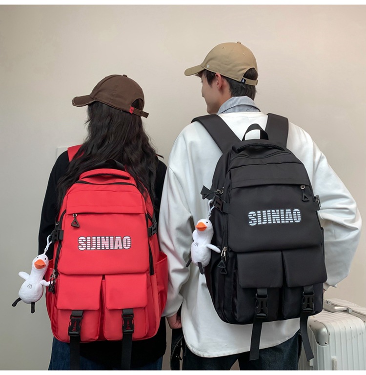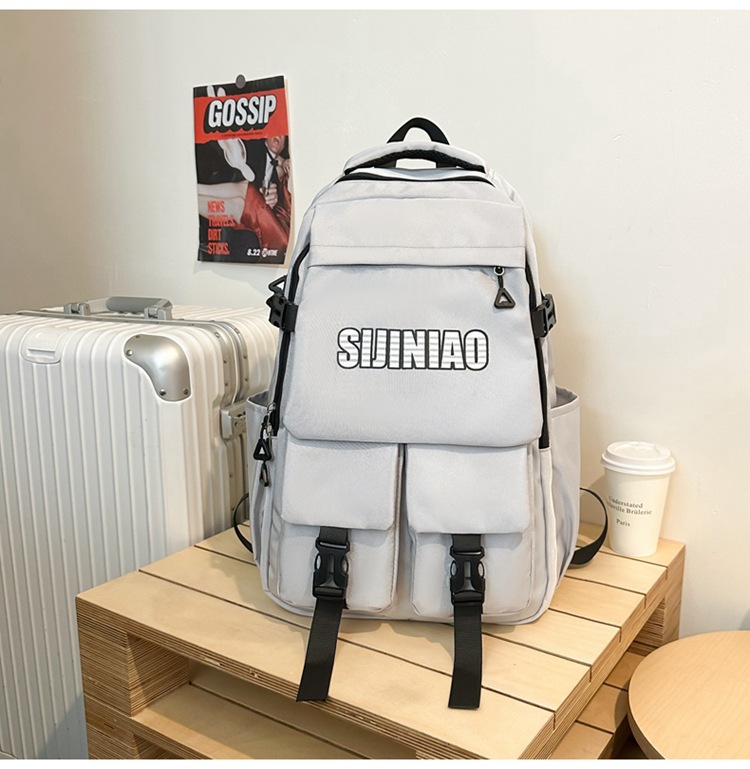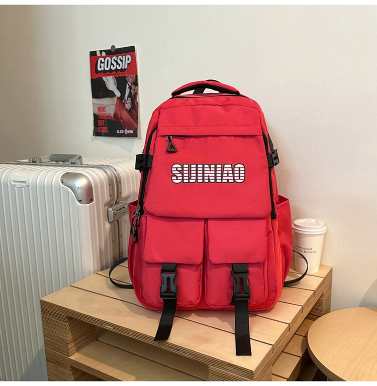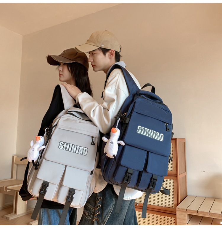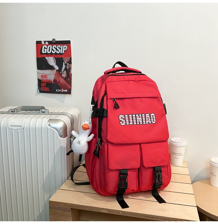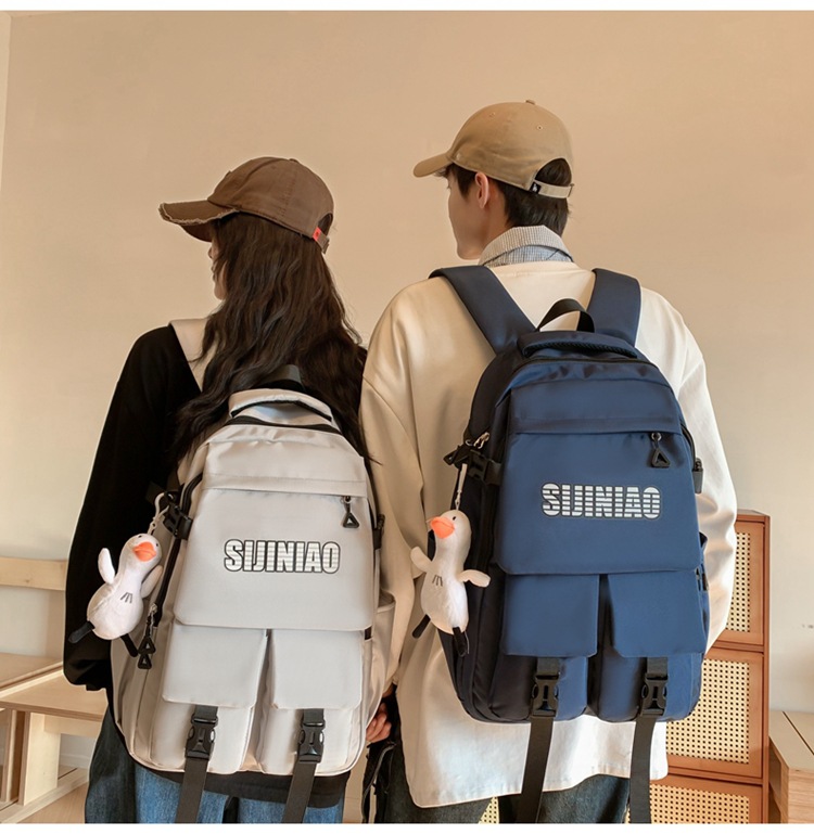 2024新款潮流休闲双肩包时尚女生纯色简约大学生书包