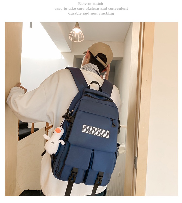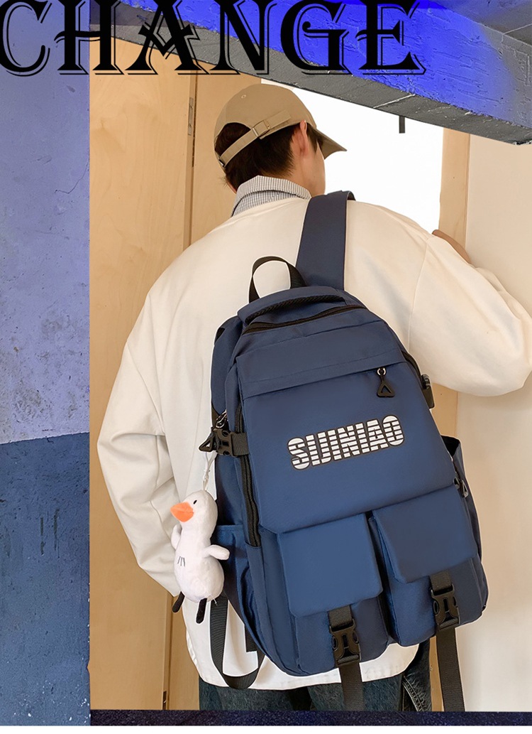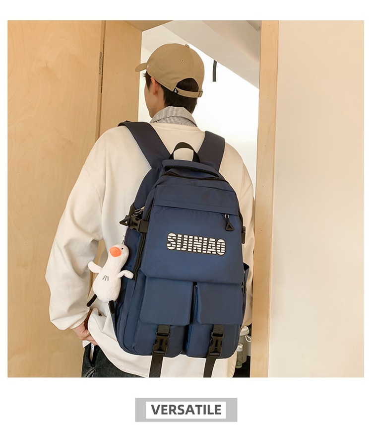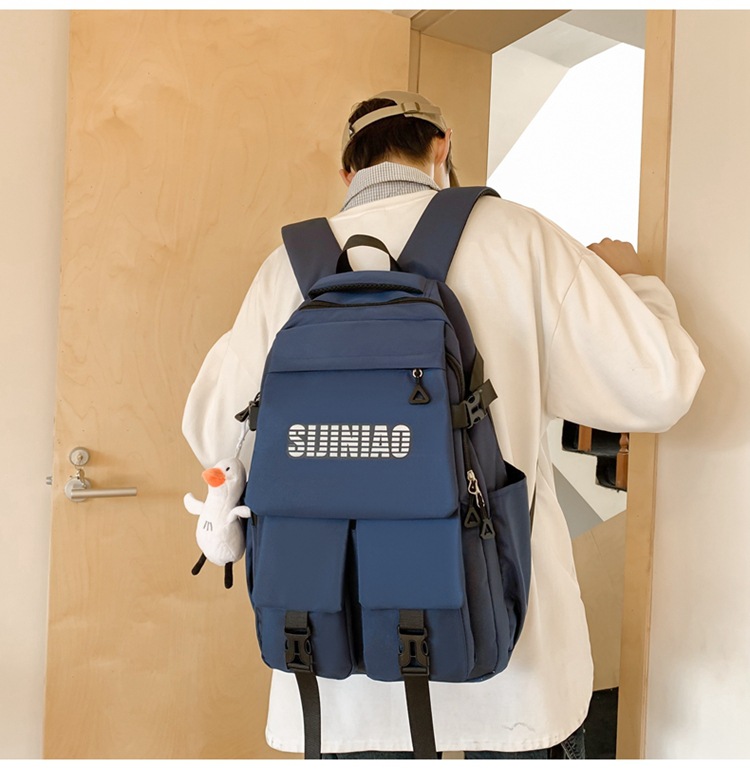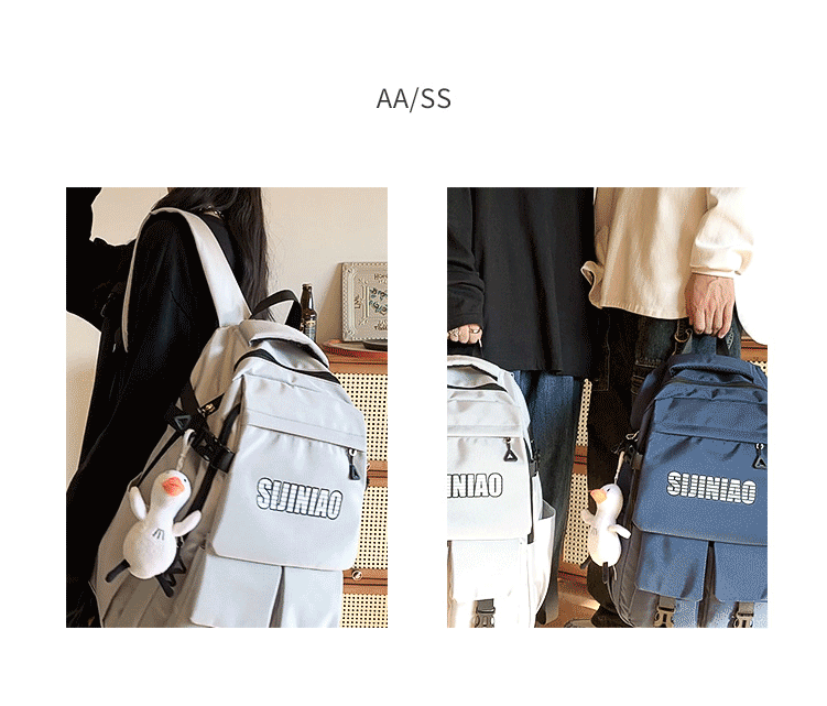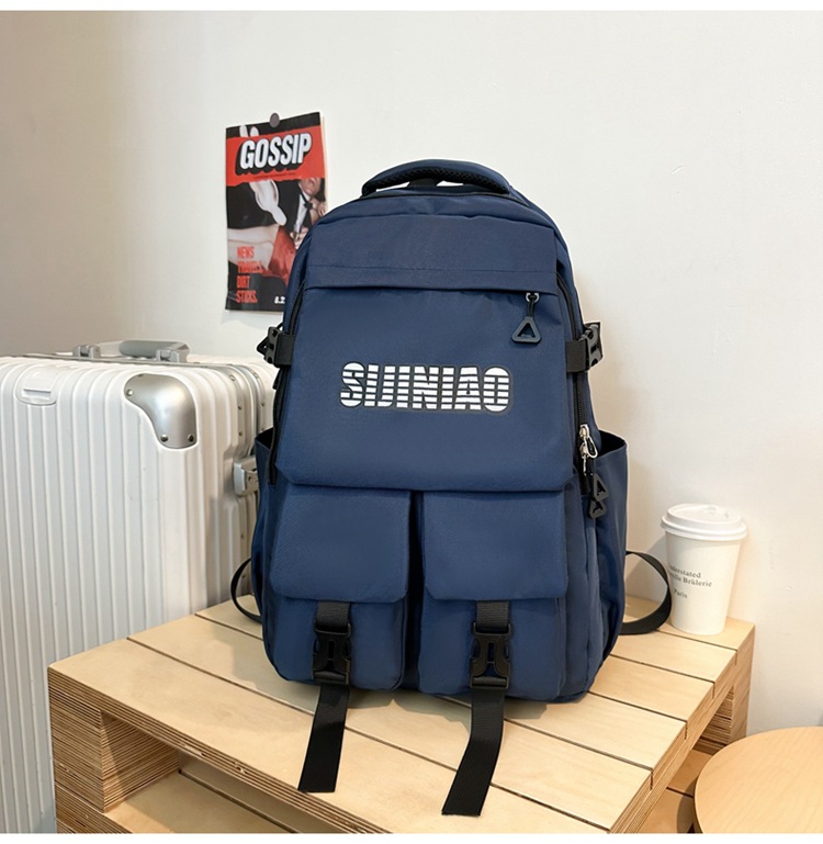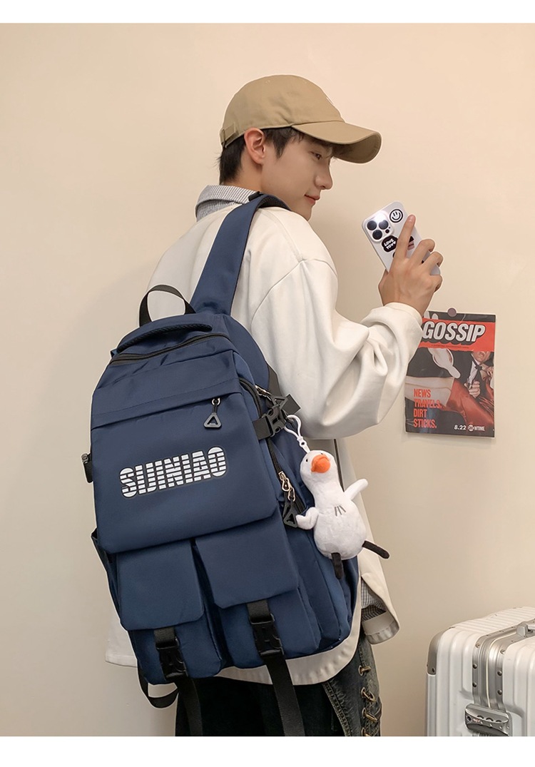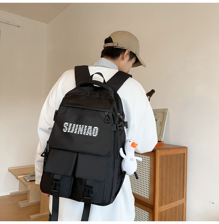 2024新款潮流休闲双肩包时尚女生纯色简约大学生书包