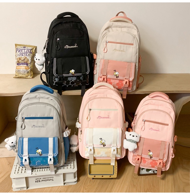 双肩包新款初高中撞色学生背包时尚潮流休闲书包
