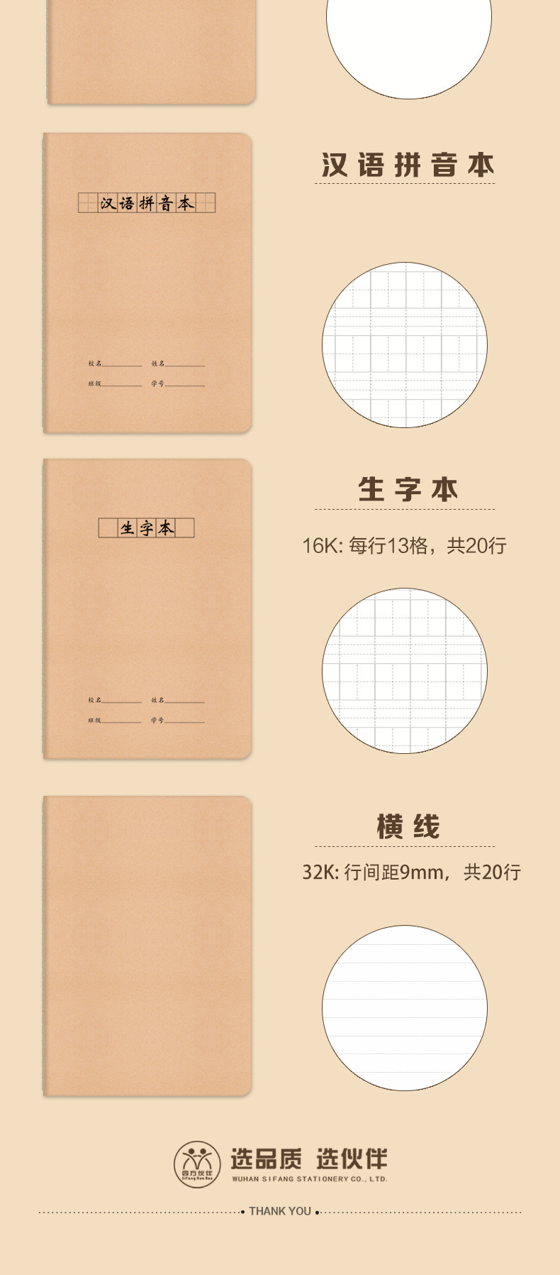 四方伙伴牛皮缝线本作业本笔记本练习语文数学英语本子批发