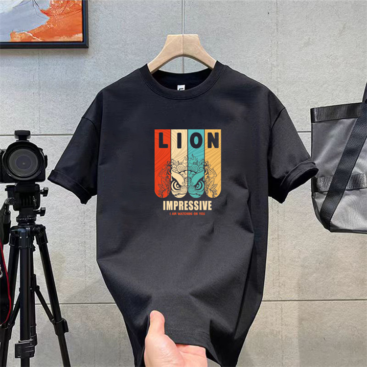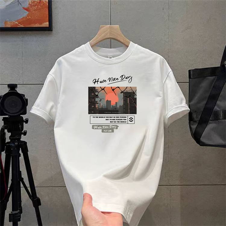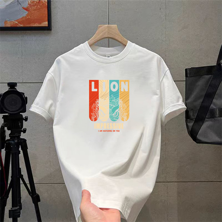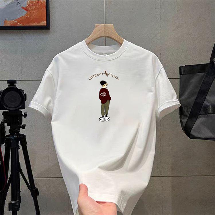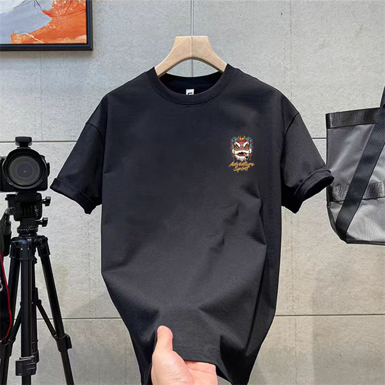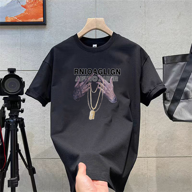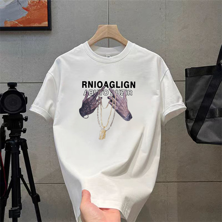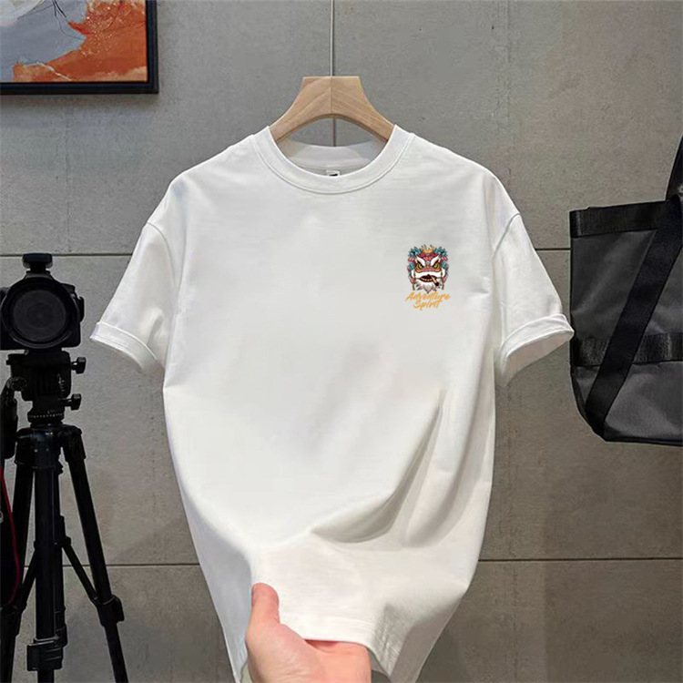 纯棉t恤衫夏潮牌时尚新款男式宽松大码圆领印花打底上衣短袖
