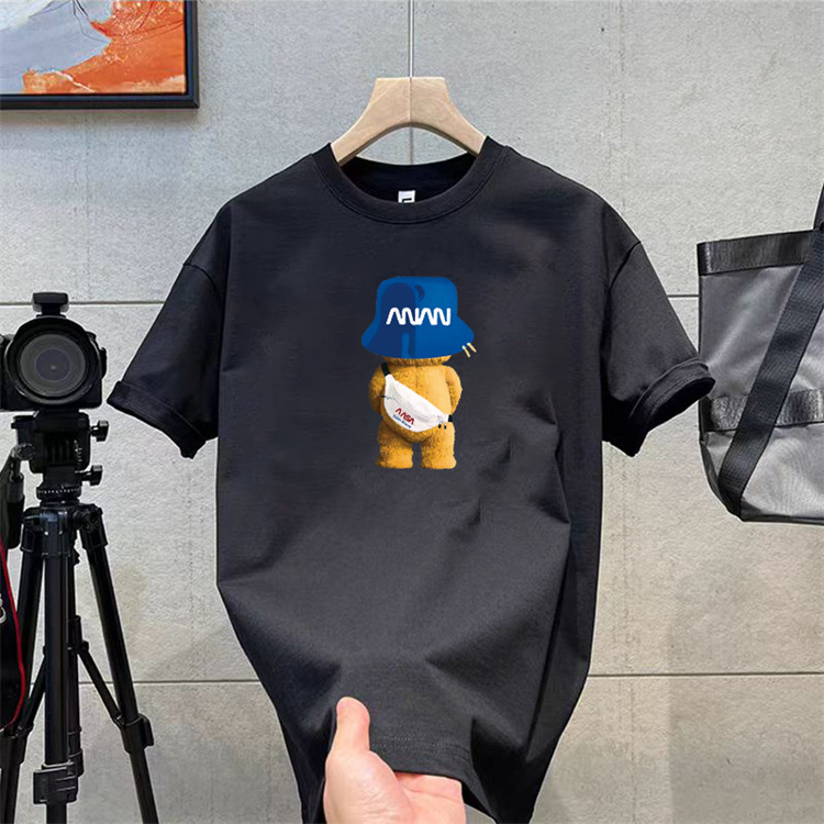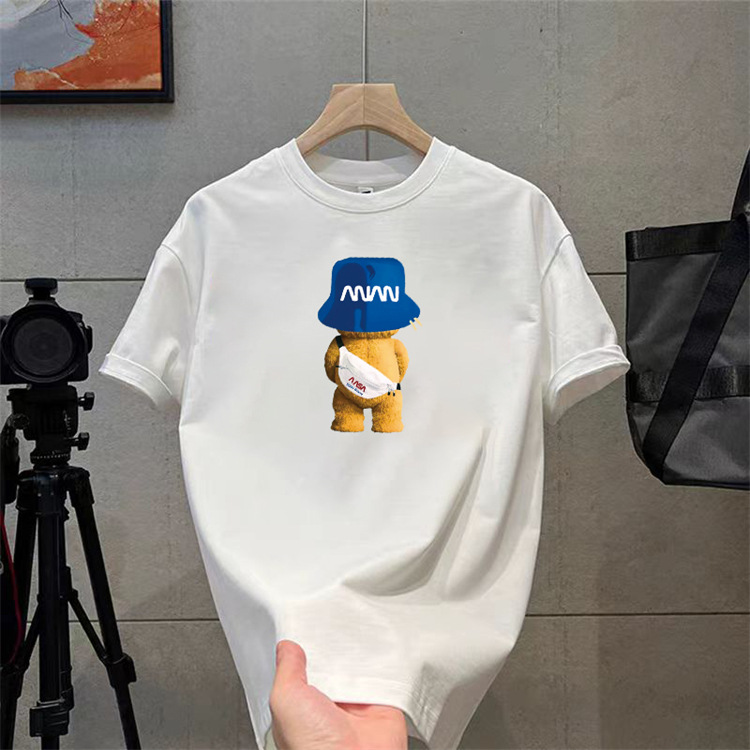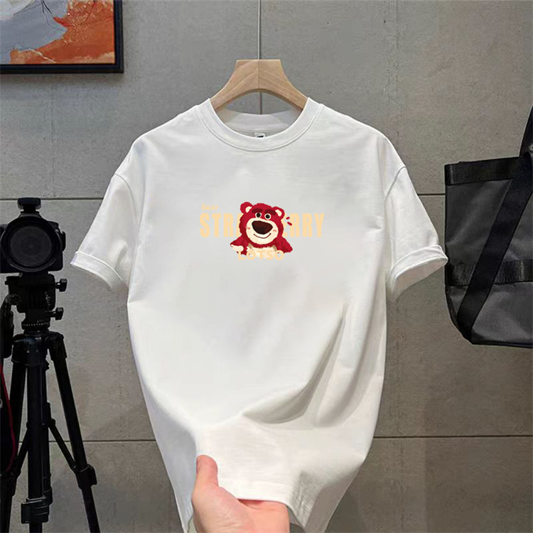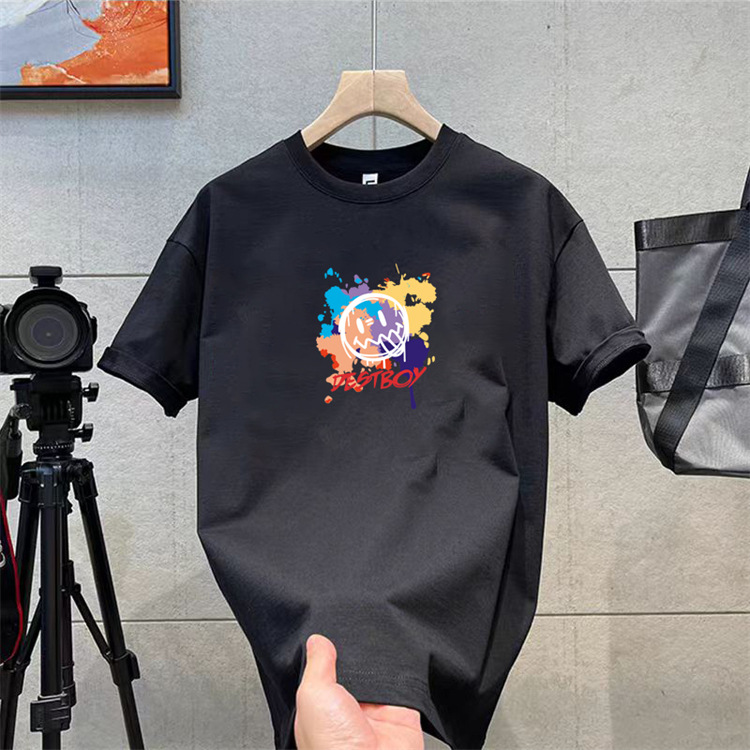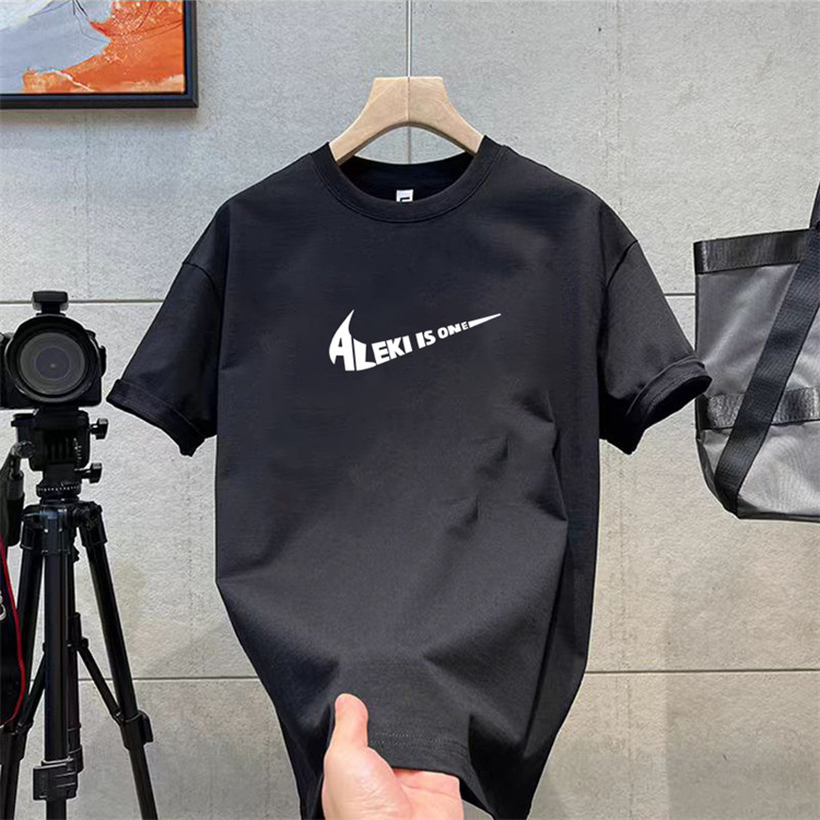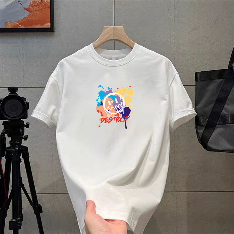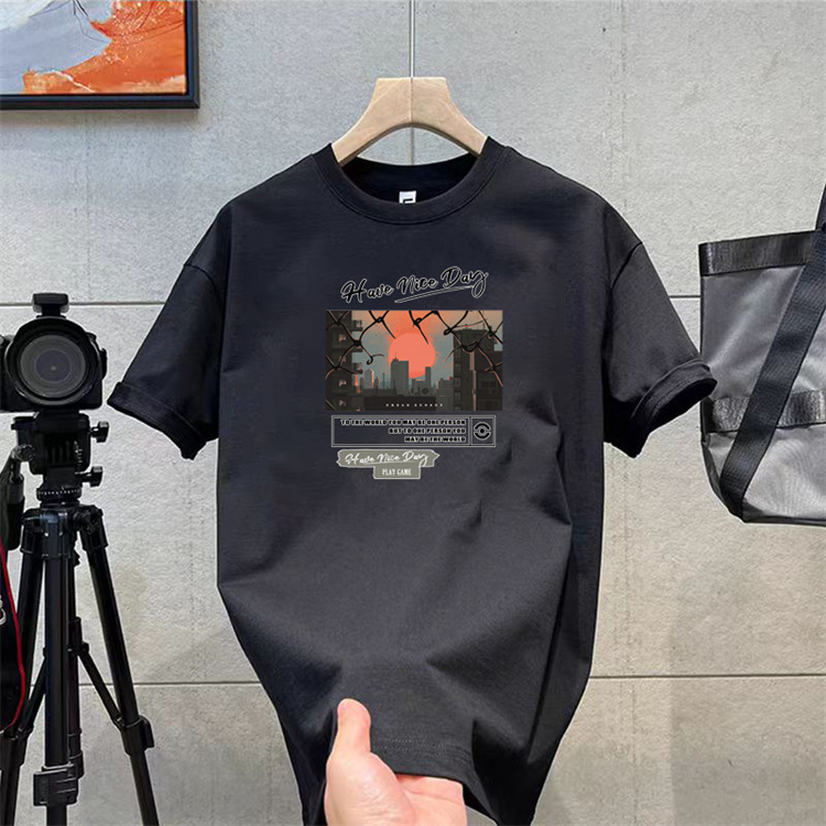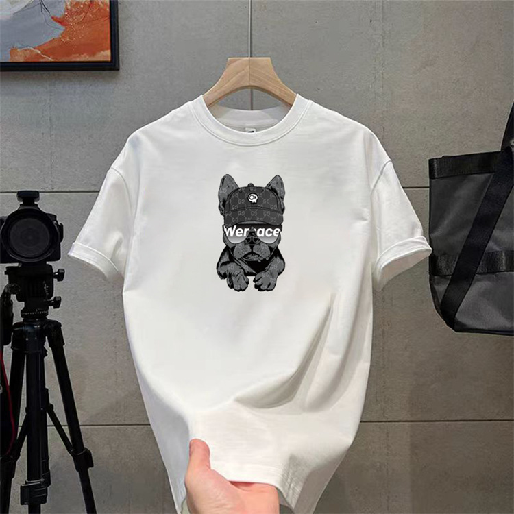 纯棉t恤衫夏潮牌时尚新款男式宽松大码圆领印花打底上衣短袖