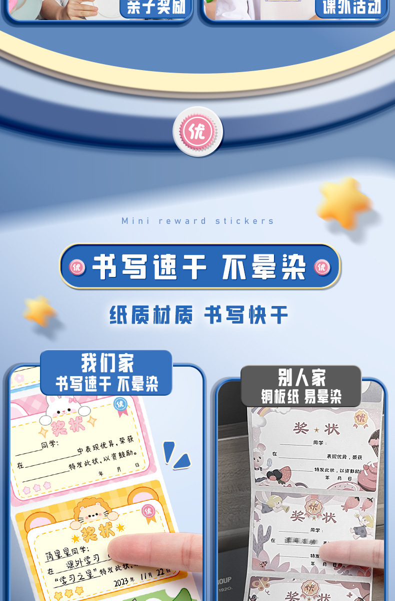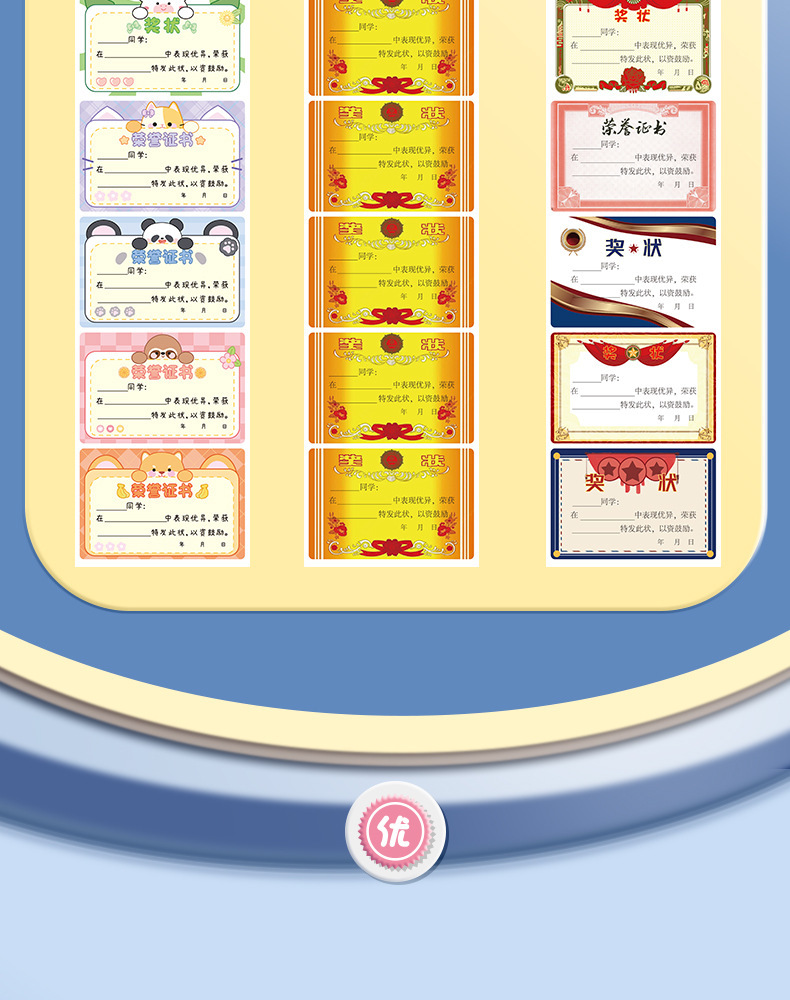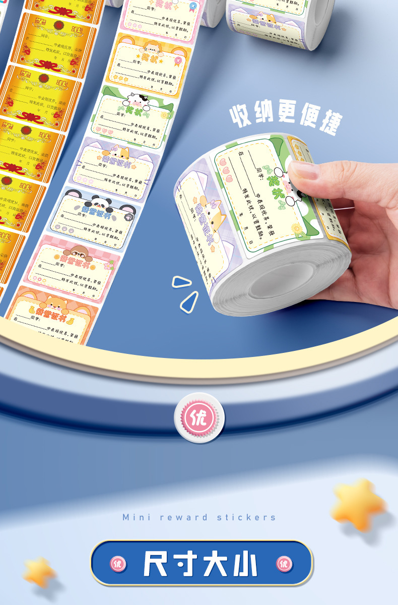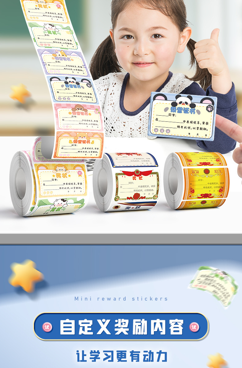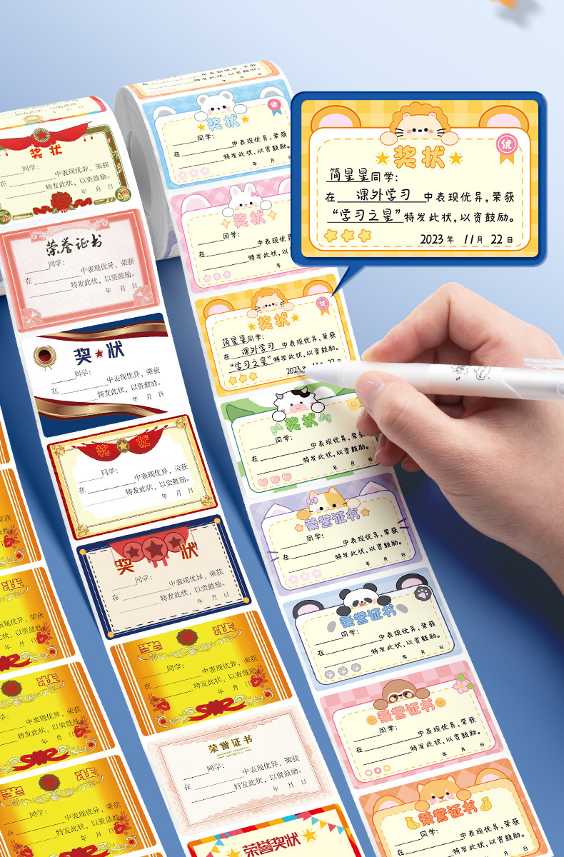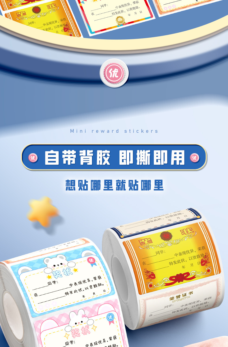 小学生创意迷你奖状贴纸幼儿园班级奖励儿童鼓励表扬信手写速干贴