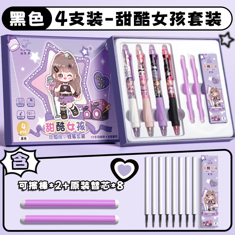 小学生专用按动中性笔魔力卡通可擦笔摩易擦圆珠笔黑色晶蓝色笔芯