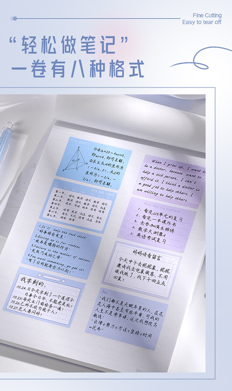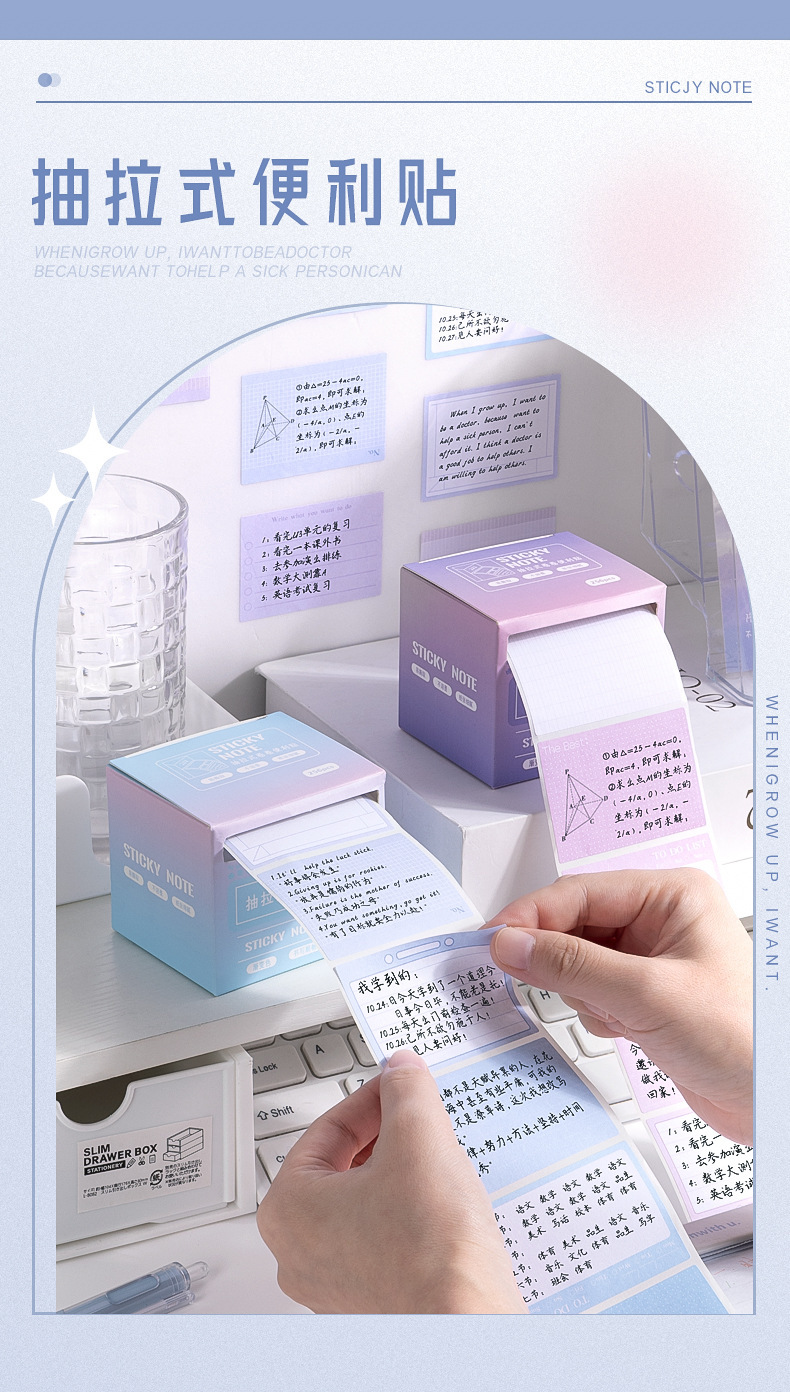 学生卡通便签索引贴卷笔记贴全粘式高颜值抽拉式卷卷便利贴强粘性