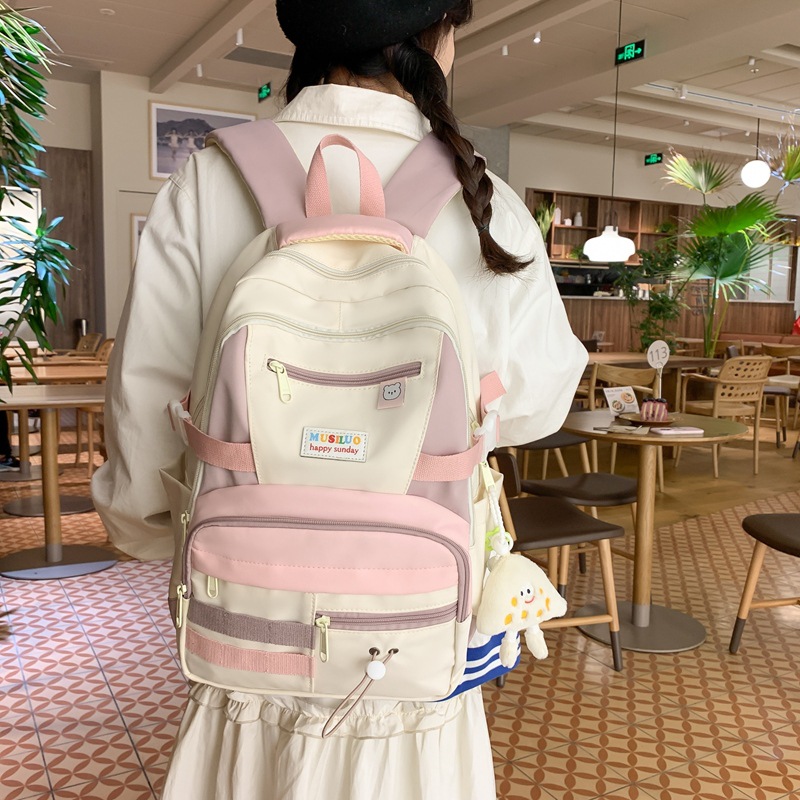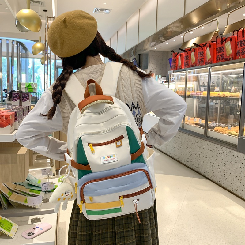全新书包女生拼色初中生韩版双肩包ins大容量校园睿营 小学生背包