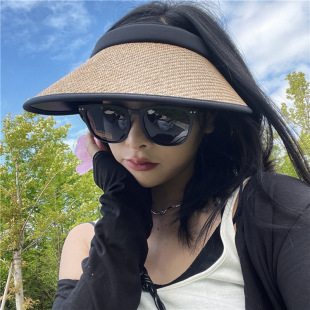 帽子晚晚同款uv夏季防晒帽太阳帽女户外空顶帽遮阳帽韩版防紫外线